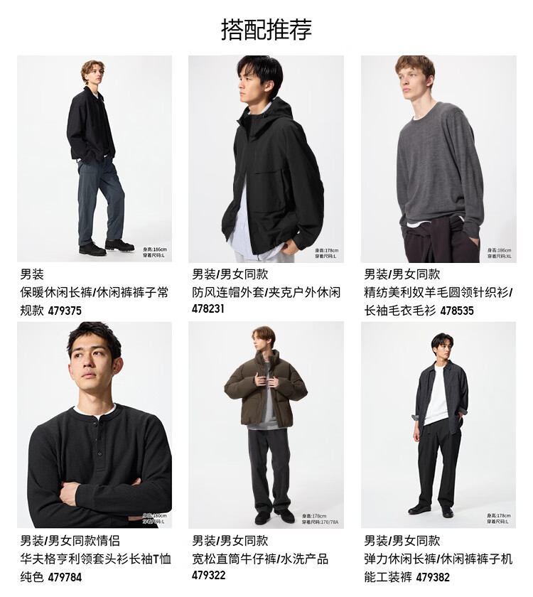 Uniqlo Men's Warm Casual Pants/Leisure Pants Extended Style 25 Autumn and Winter New Style 479376 09 Black L /175/88A