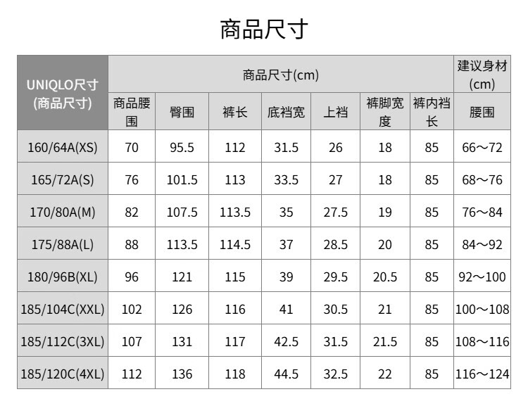 China (cm) 160-165/84-86 165-170 / 88-90 167-172 / 92-96 168-173 / 98-102 170-176 / 106-110