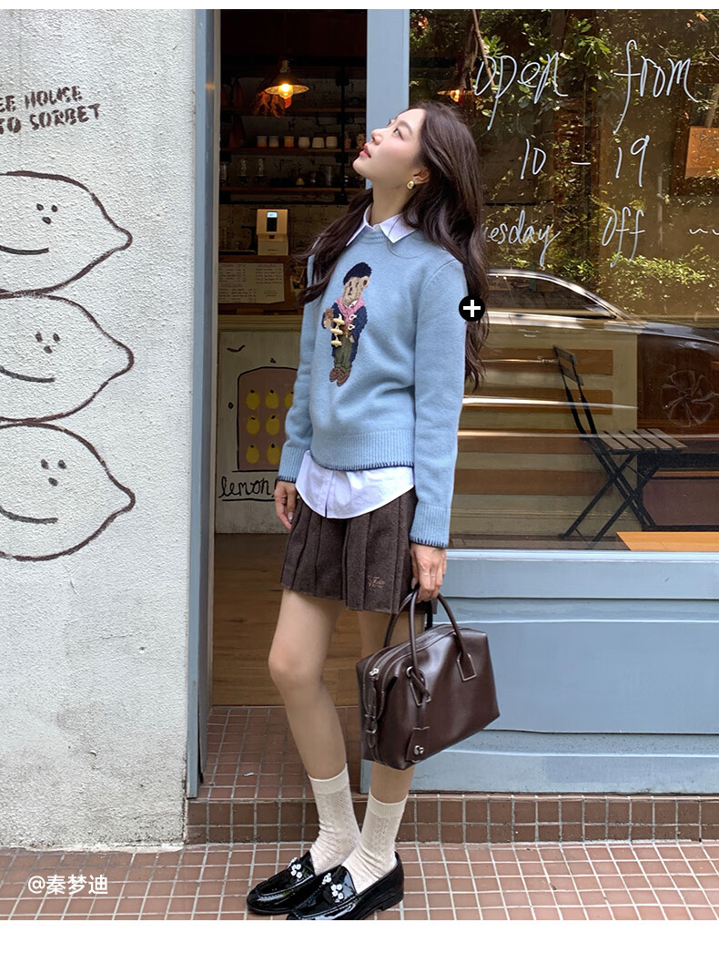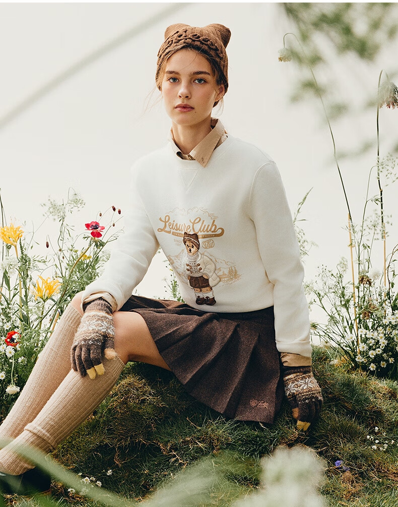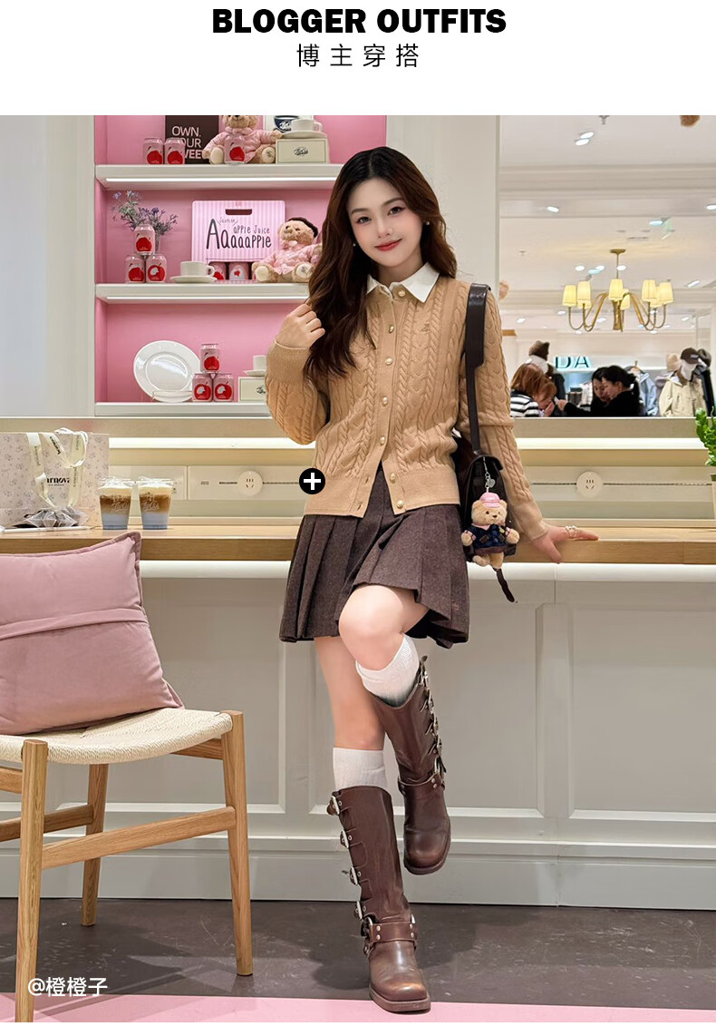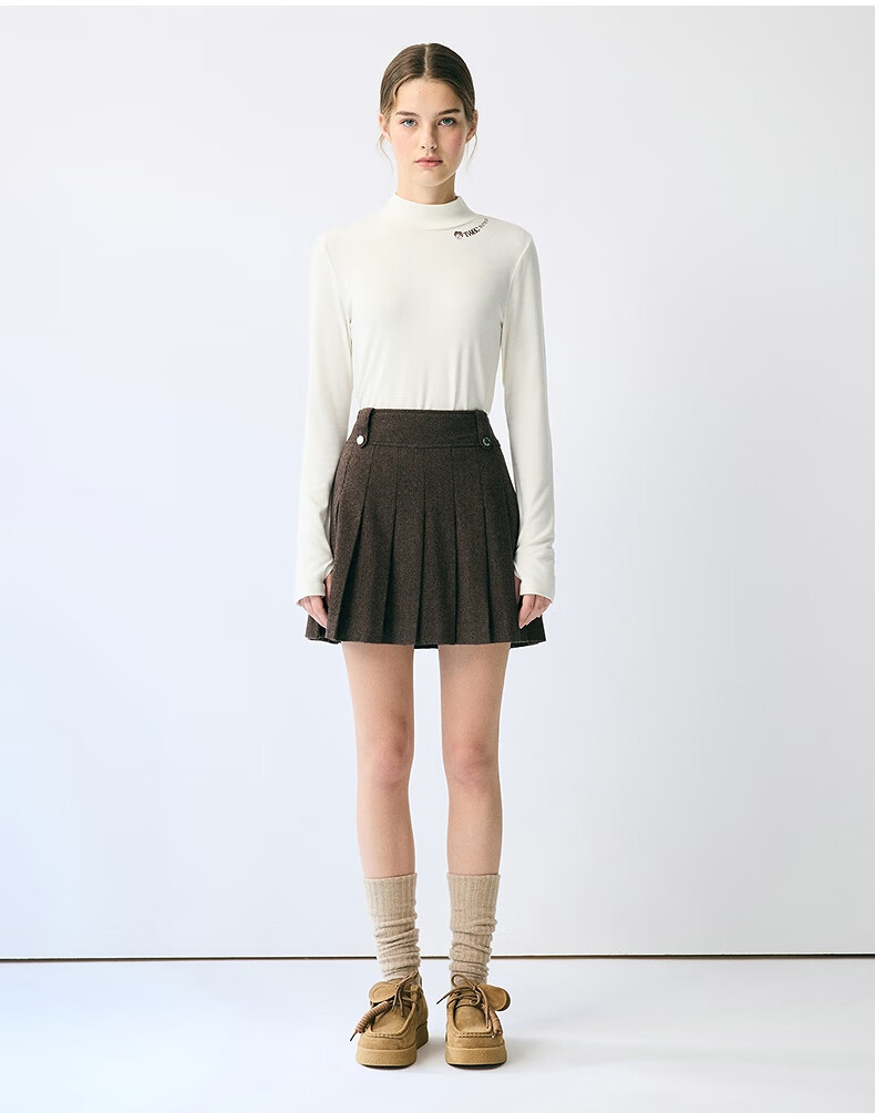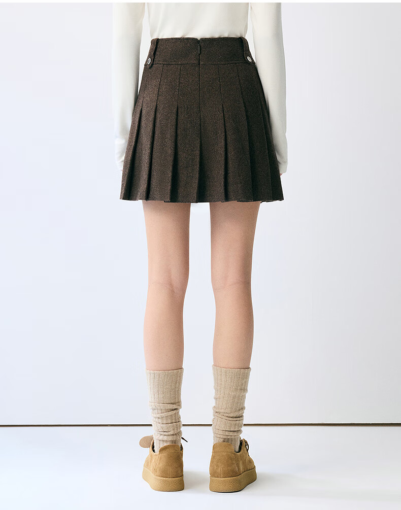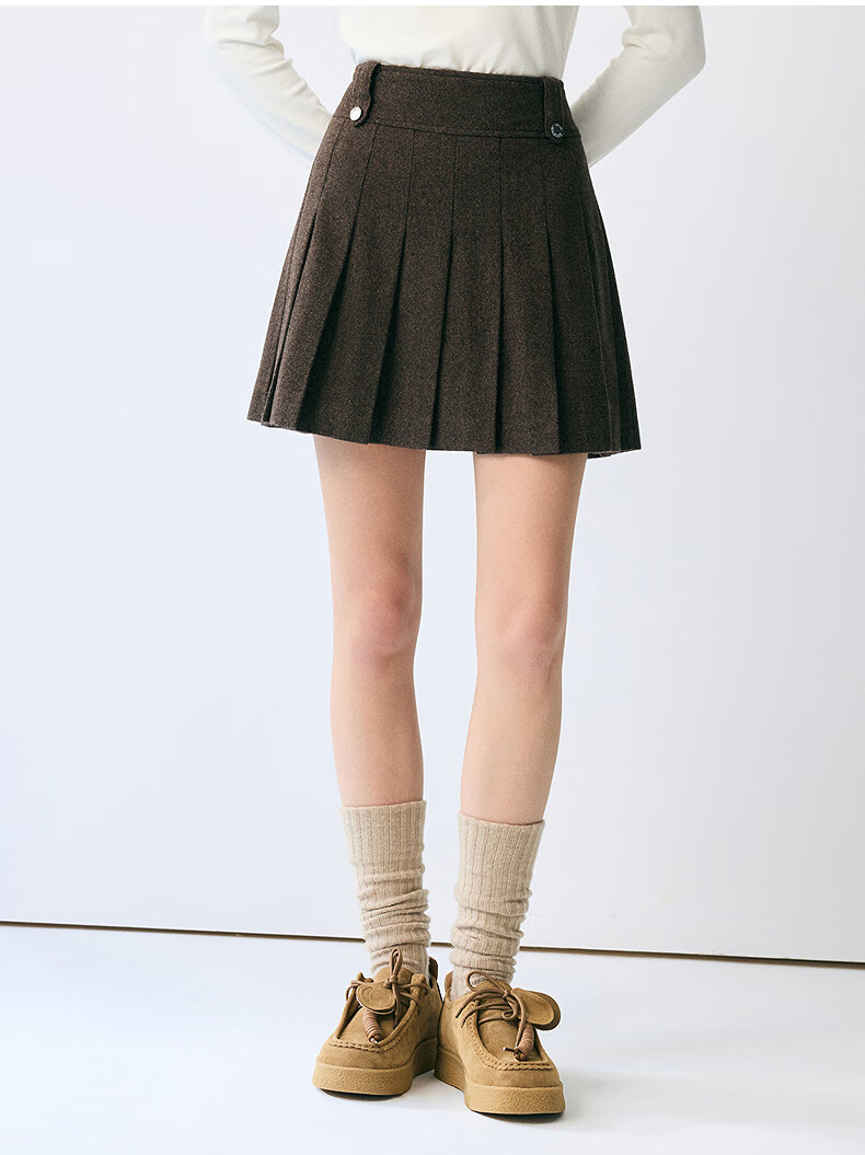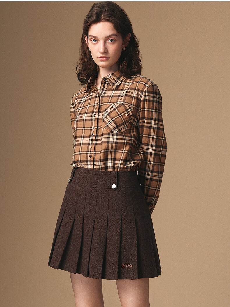 Teenie Weenie Bear Women's Skirt 2025 Autumn New Temperament College Style Simple Embroidered Pleated Skirt Brown Pre-sale M