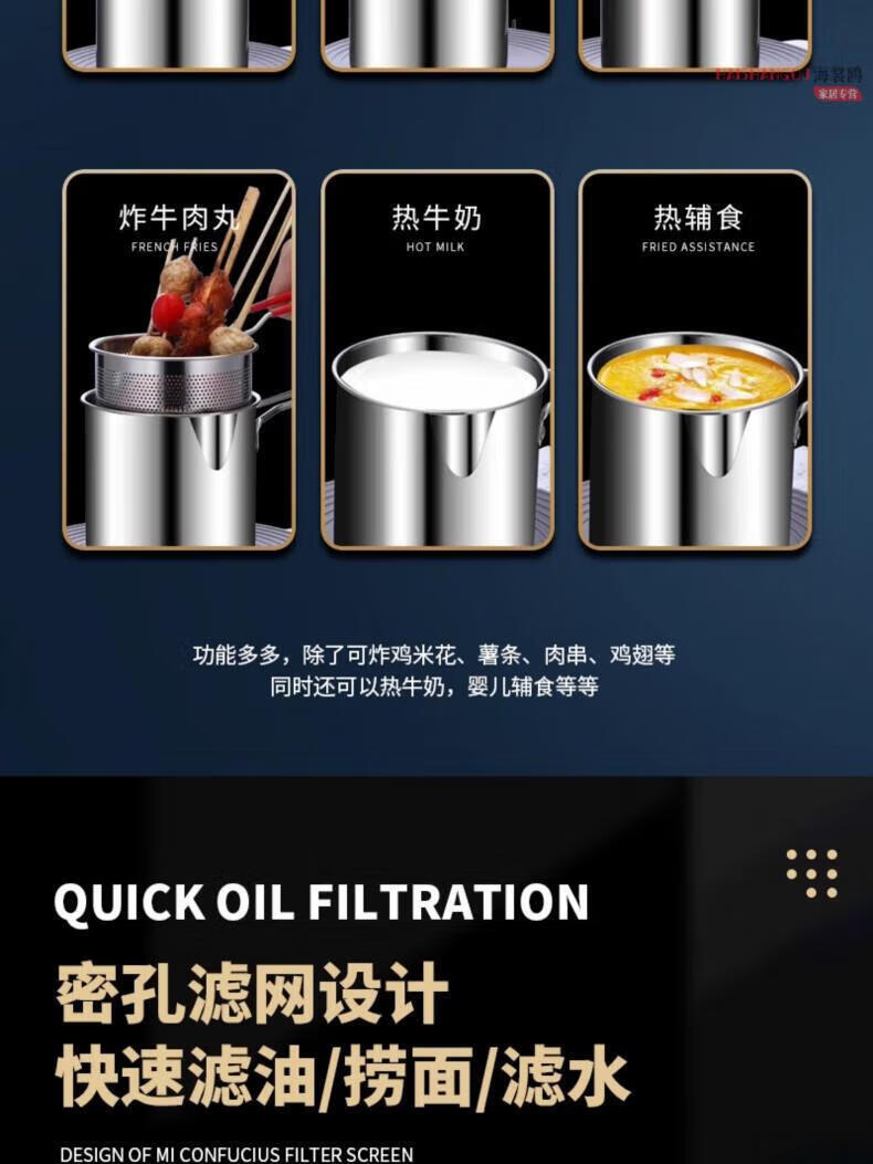 Fat Donglai purchases Japanese stainless steel frying pan for household small frying pan with filter induction cooker mini province food grade stainless steel small frying pan + frying 2 1cm
