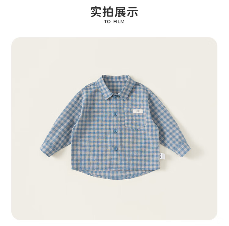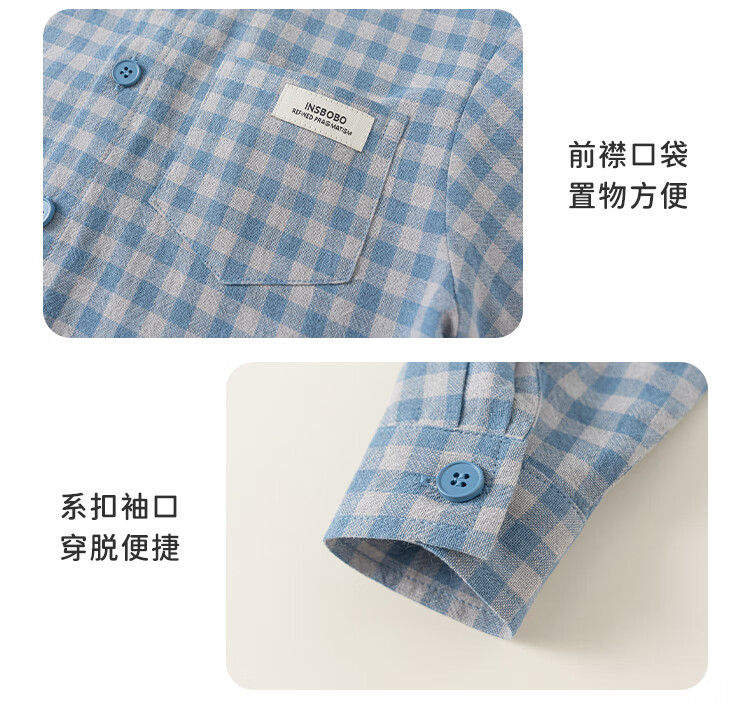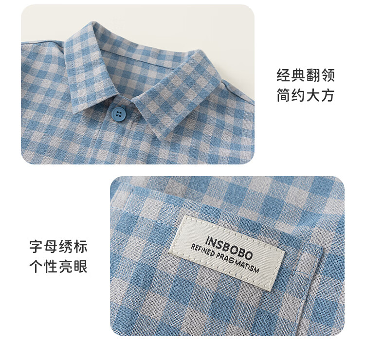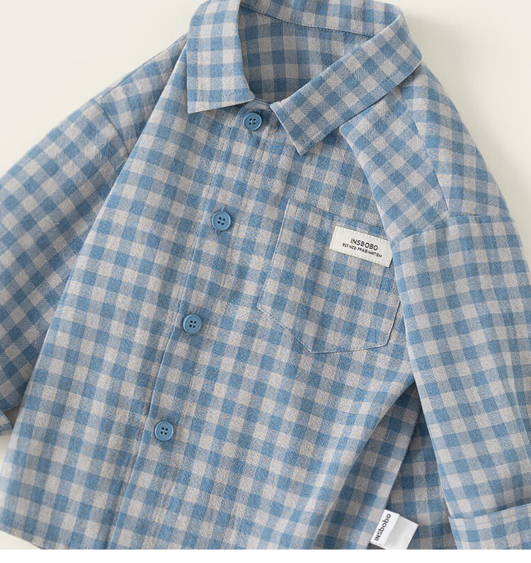INSBOBO boys' shirts 2025 autumn new children's plaid shirts spring and autumn baby style shirts children's clothing trend blue plaid 110