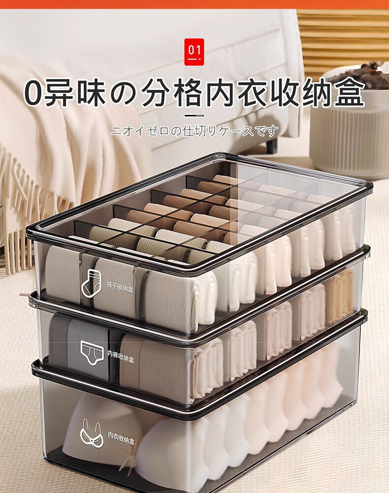 Zhifan Japanese underwear storage box to store socks artifact wardrobe home intimate clothing three-in-one compartment organizing box 3-piece set underwear + underwear + socks with cover