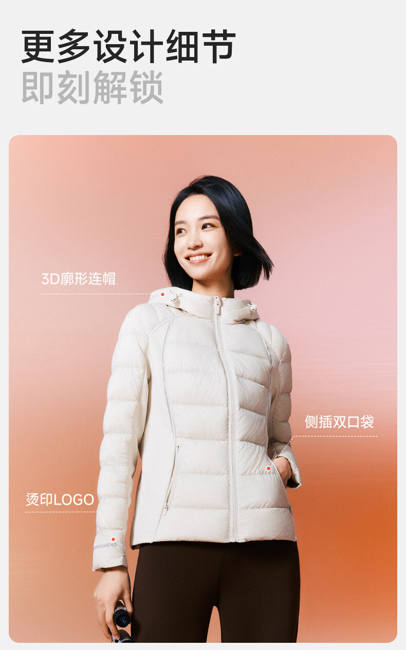 Meili City Down Jacket Women's Light Thin Rib Goose Down Down Jacket Liner Fitting Women's Short Jacket Women's 106 Gray XL