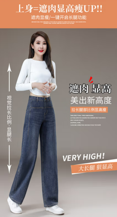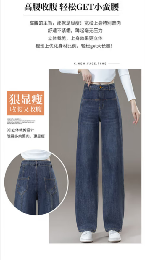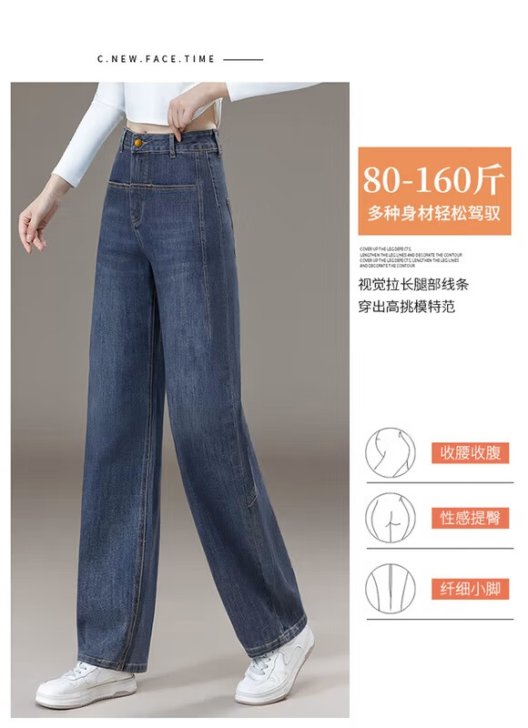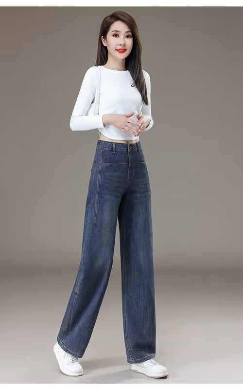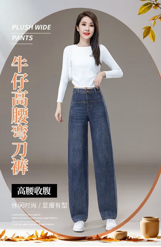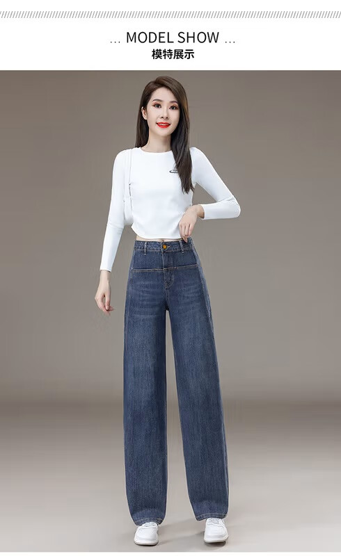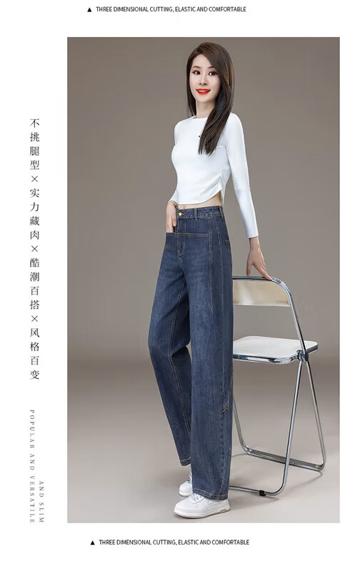 2025 New Retro Jeans Women's Spring Autumn and Summer High Waist Scimitar Pants Banana Pants Wide Leg Loose Pants Retro Blue 28 Recommended 105-115 Jin Jin equals 0.5 kg