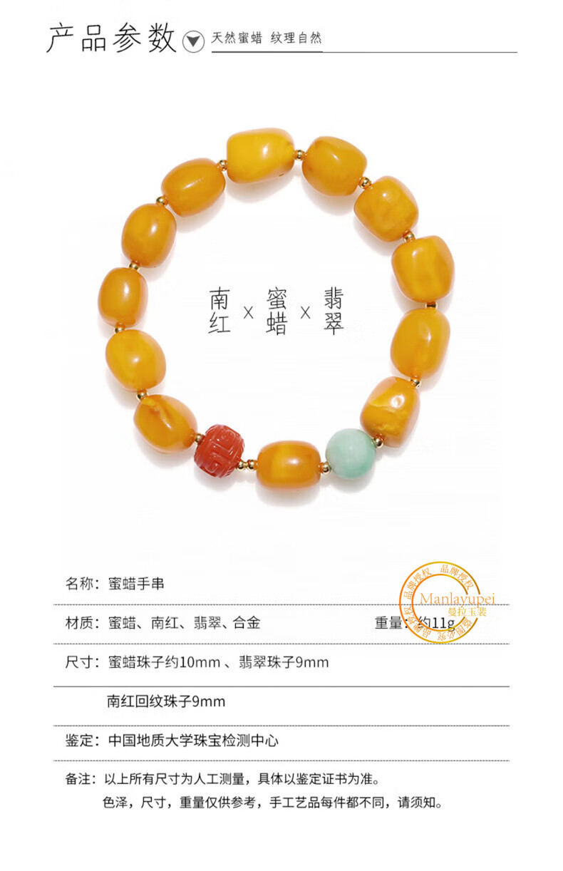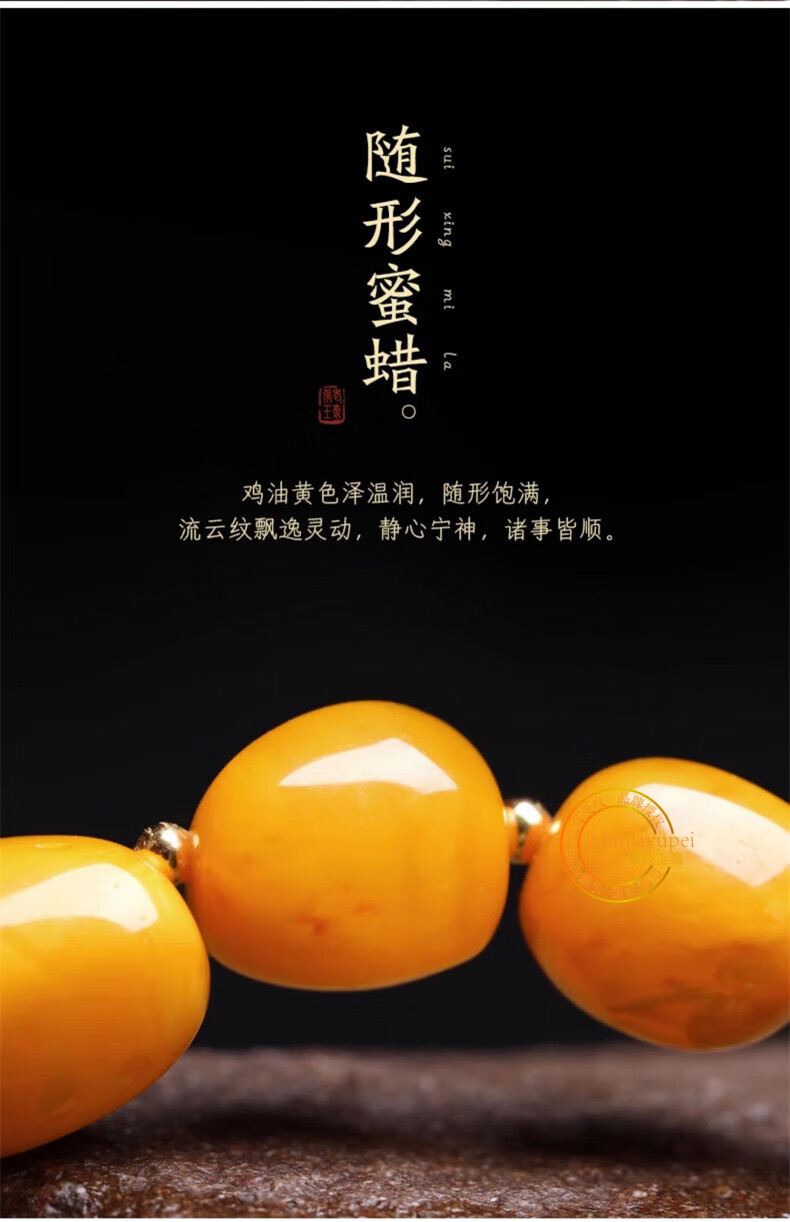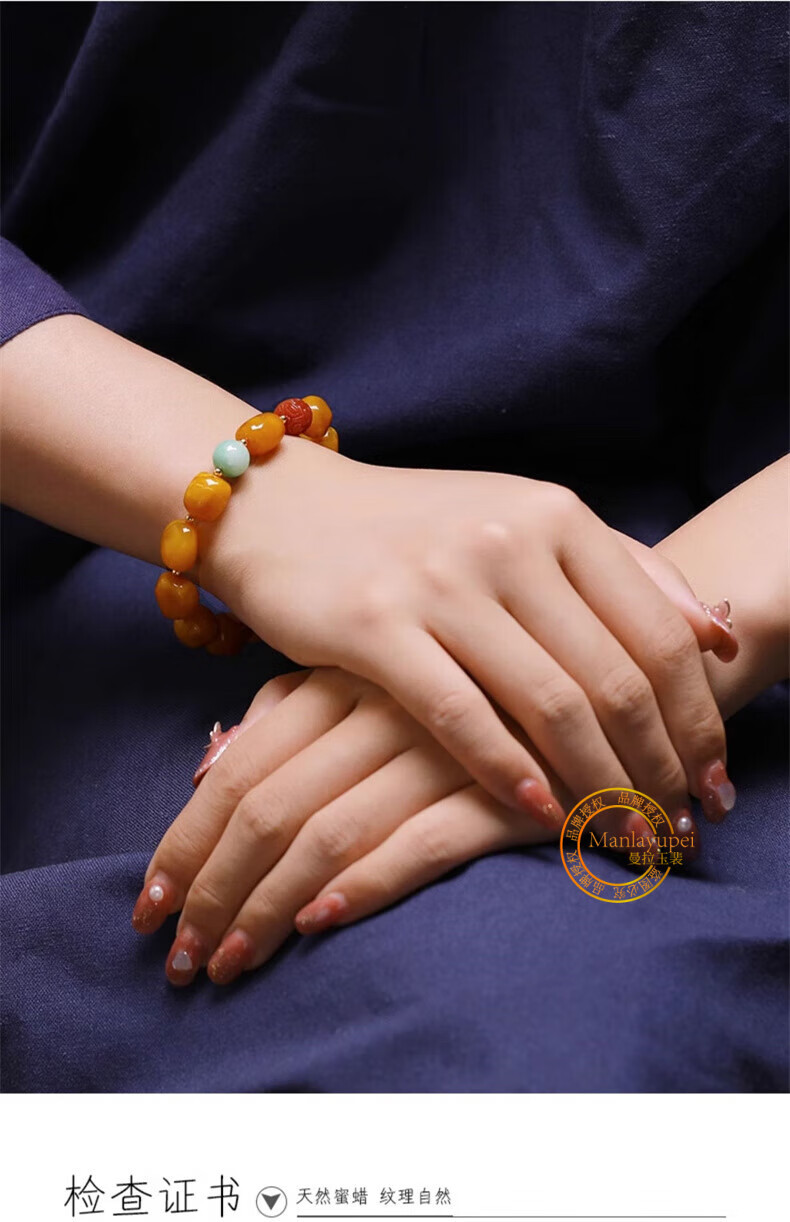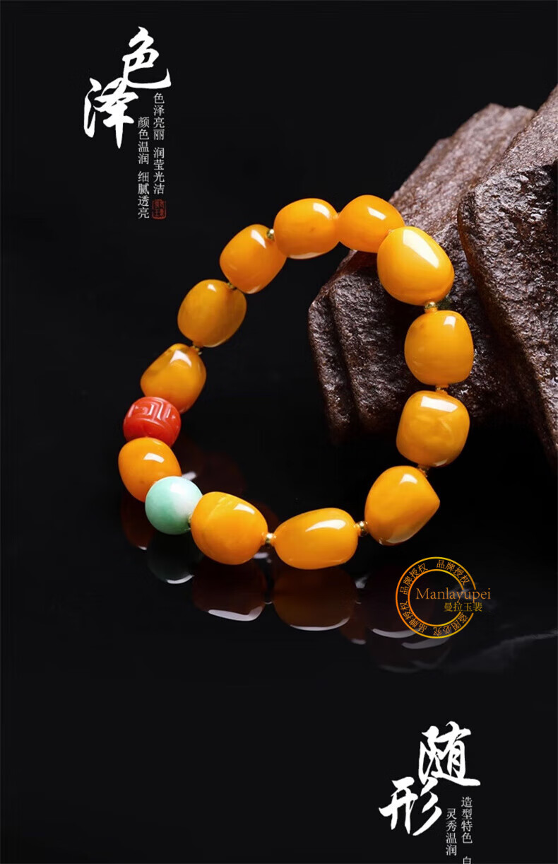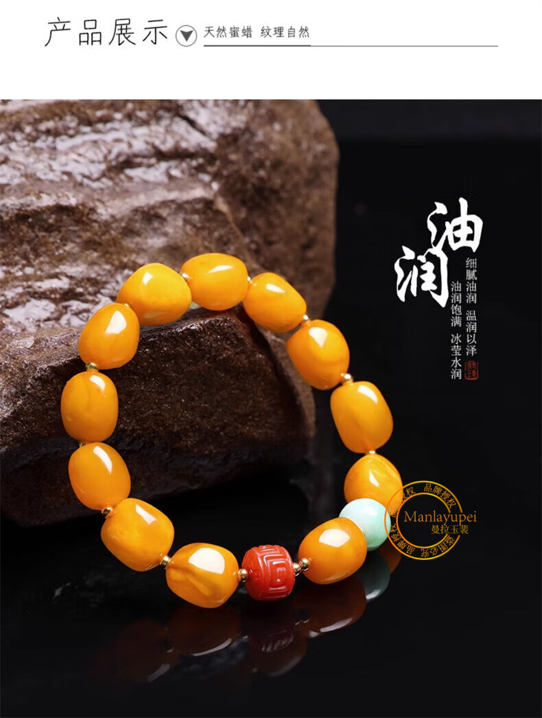 Manla Jade Pei natural conformable beeswax bracelets for women DIY pattern beads jade jade amber honey-filled chicken fat yellow bracelets beeswax bracelets