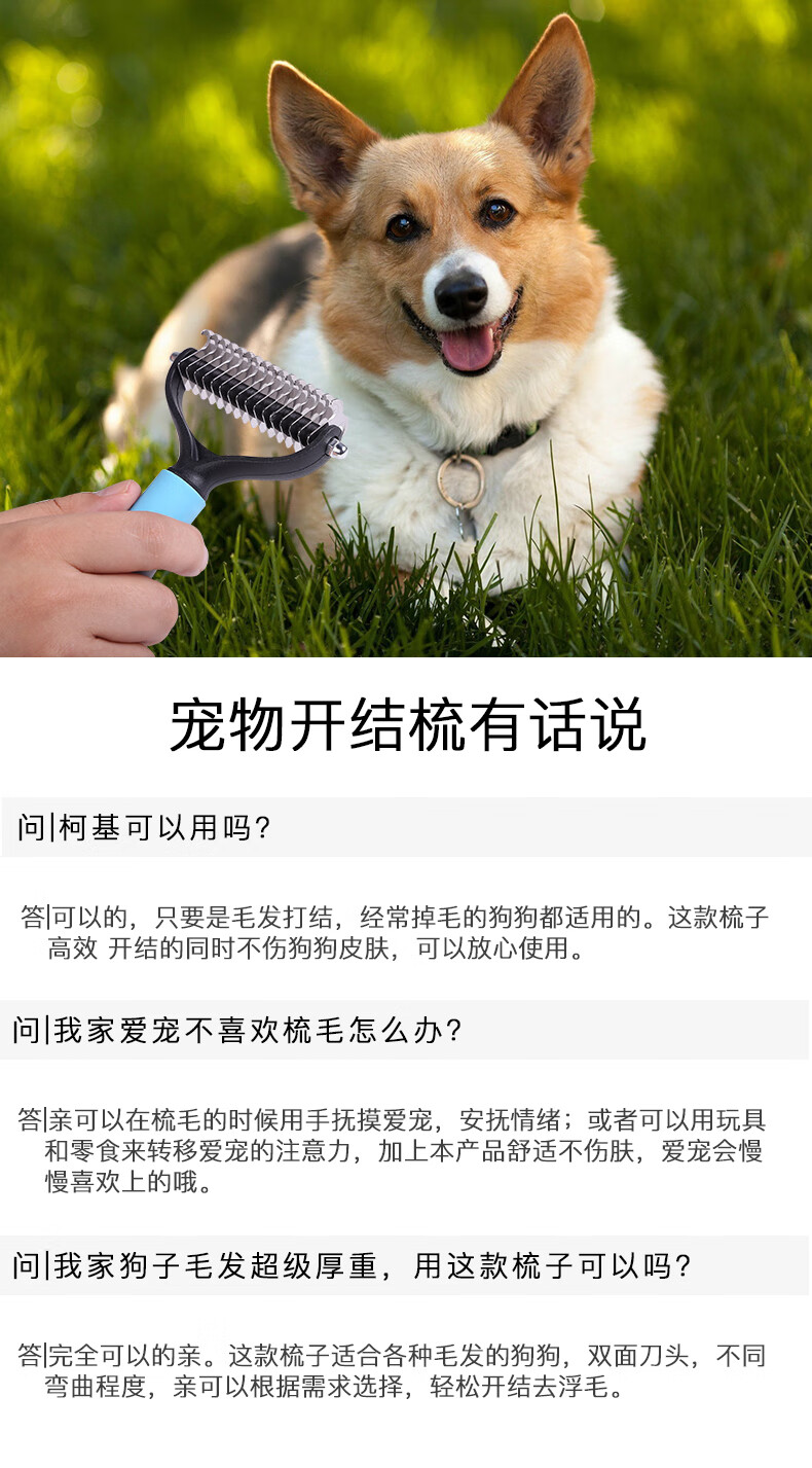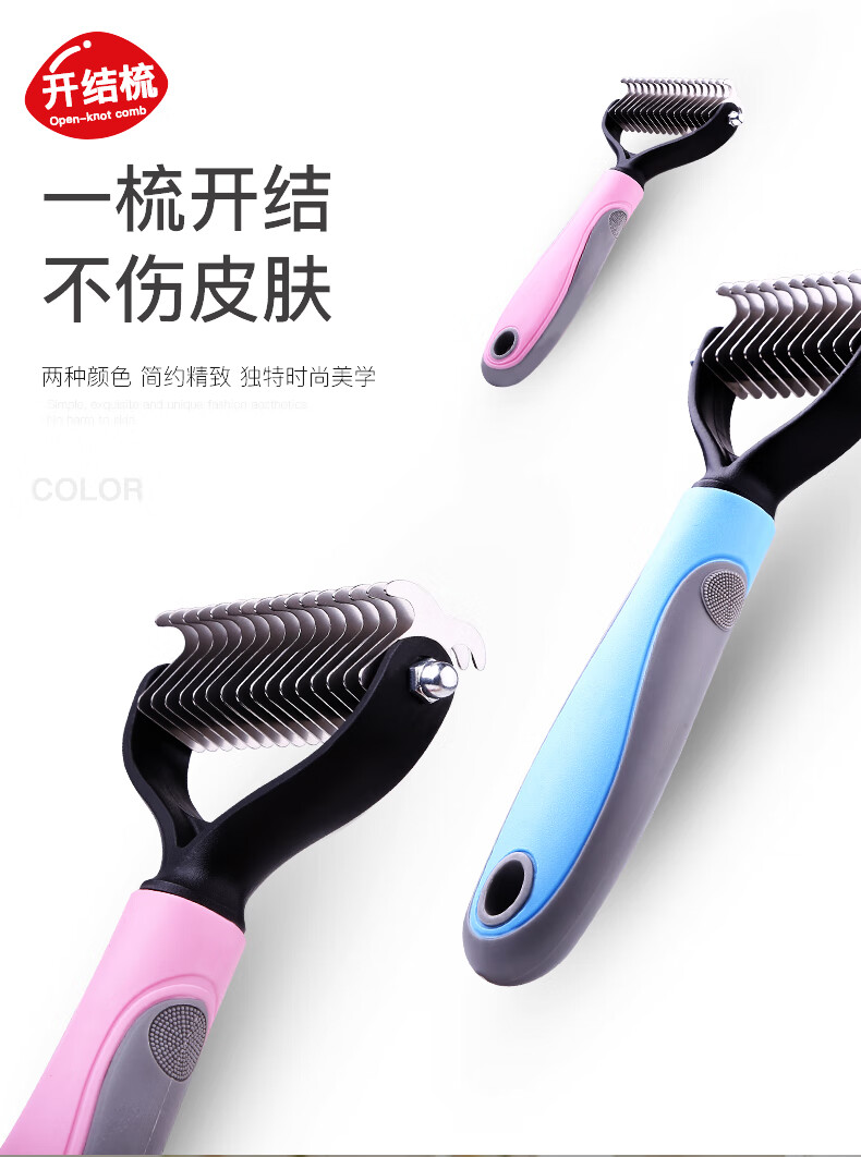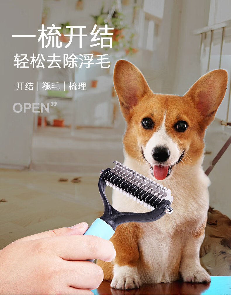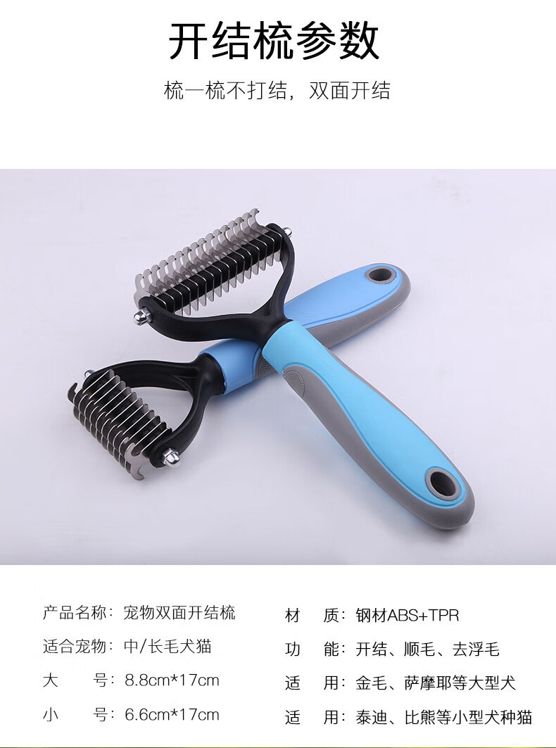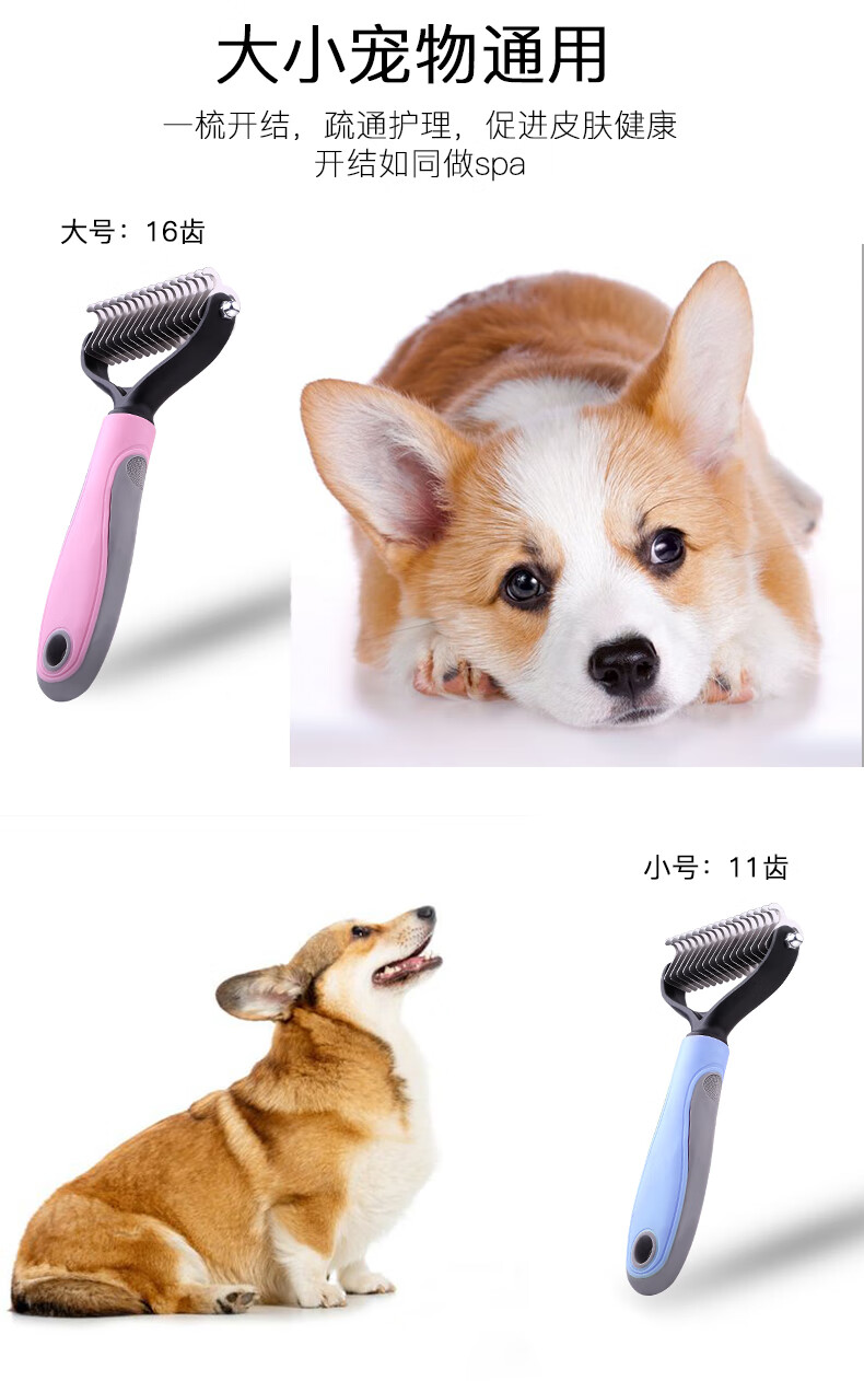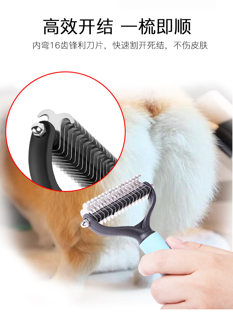 Guazhou Mu special dog combing brush long hair removal brush fluffy hair comb beauty knotting small dog supplies pet double-sided knotting comb blue large size