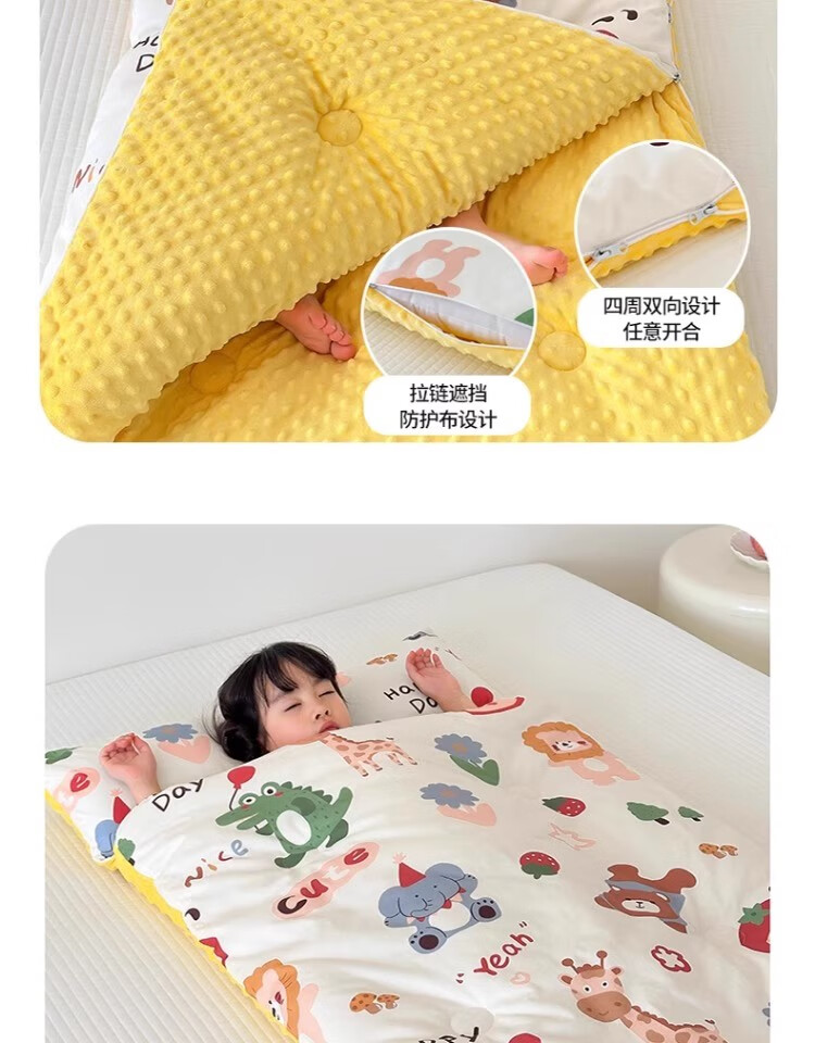 MUJI Class A all-cotton bean quilt autumn and winter quilt winter children's anti-kick quilt sleeping bag all-in-one kindergarten thickened and warm Bula Paradise Class A maternal and infant grade specially designed for babies 75*120cm Spring and Autumn Style Approximately 3 Jin Jin equals 0.5 kg Suitable for 0-3 years old