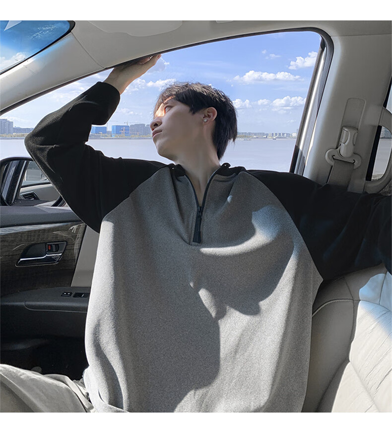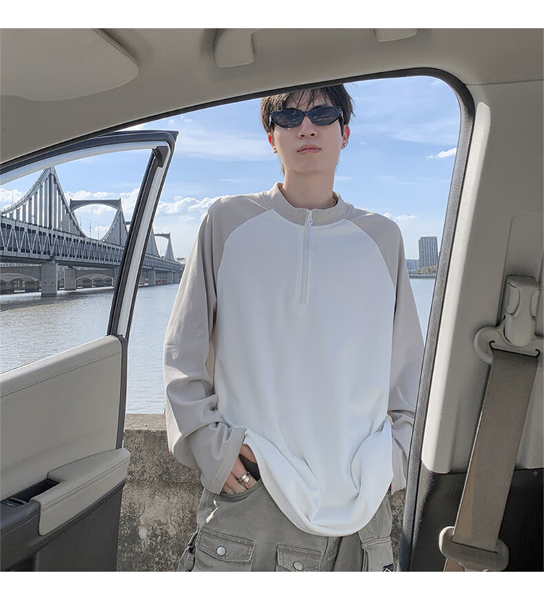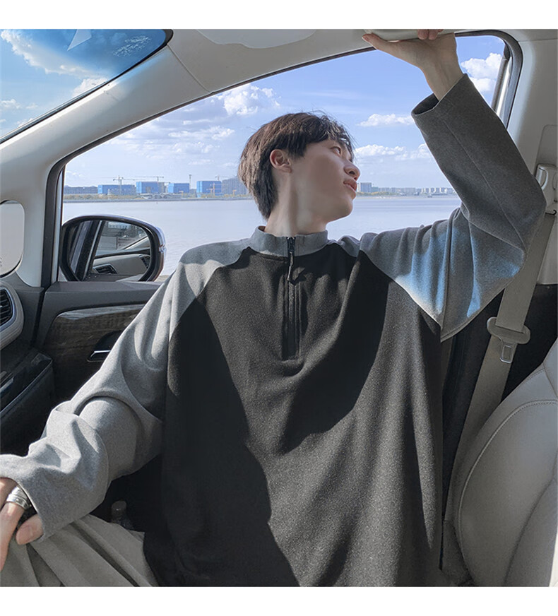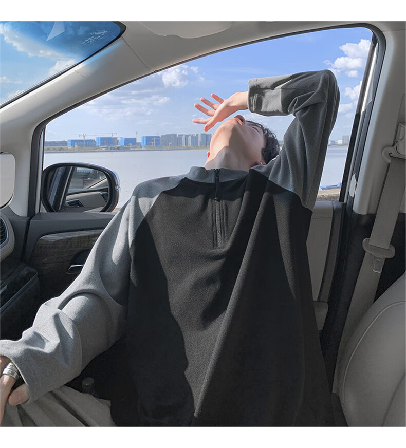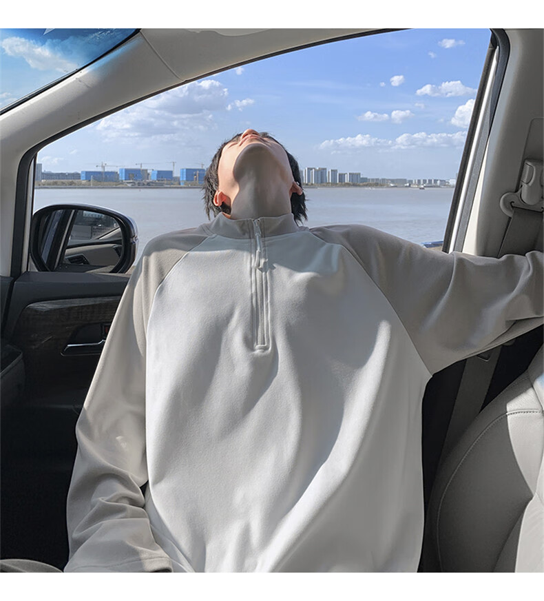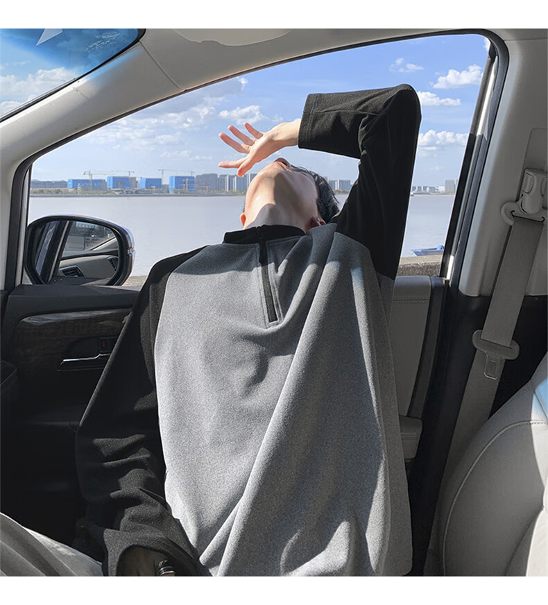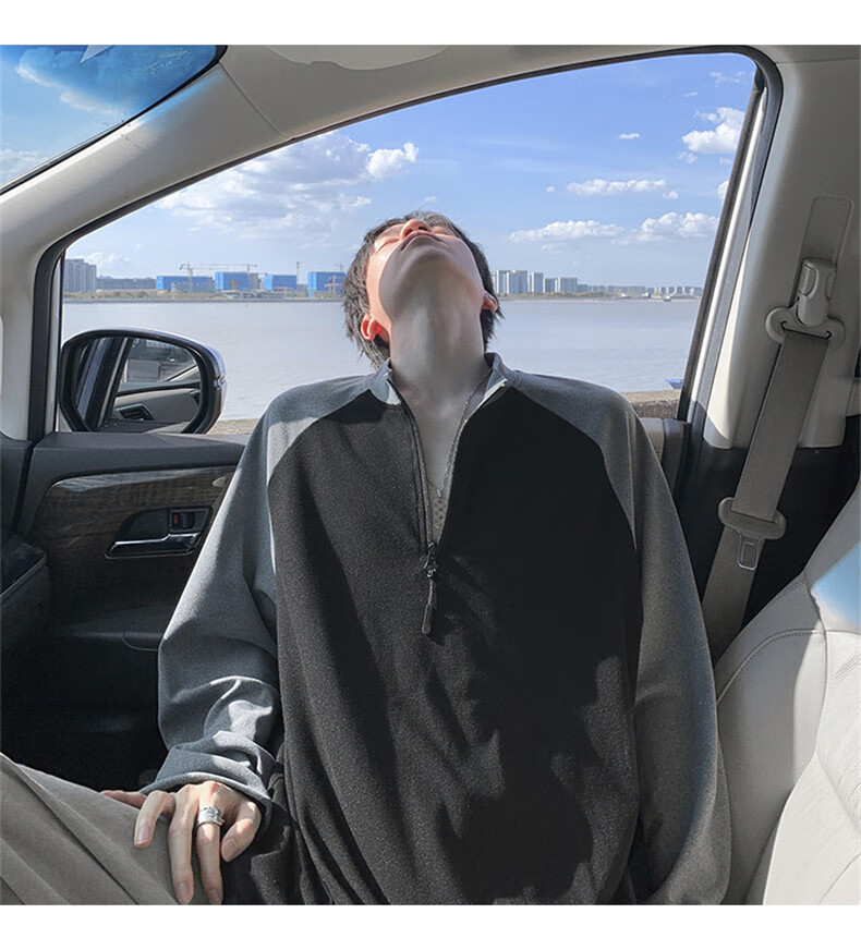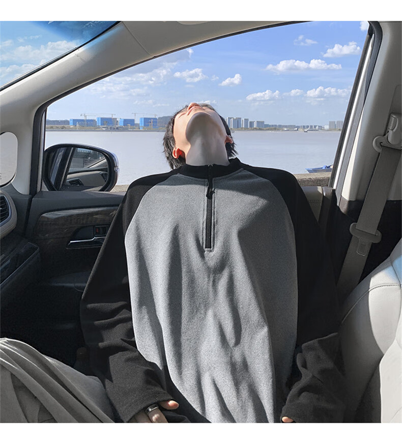 Cebrodz French half-zip long-sleeved T-shirt for men in spring and autumn, versatile youth outdoor sports cycling trendy brand heavy top, black XL