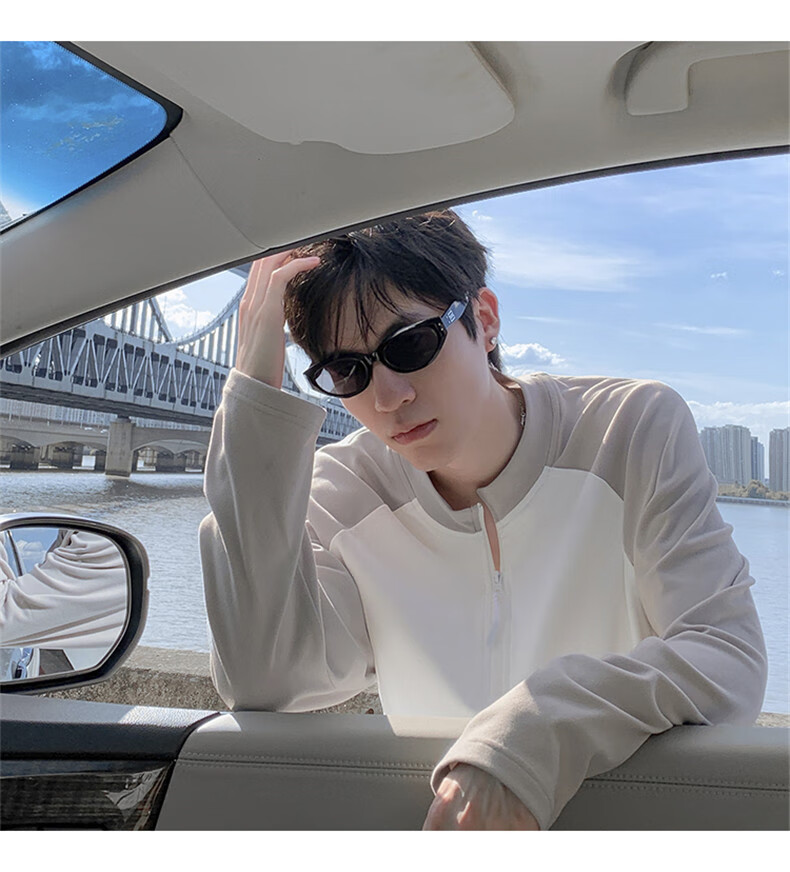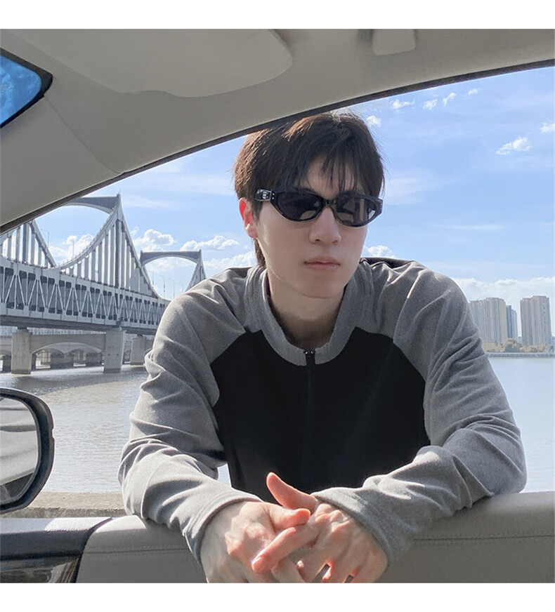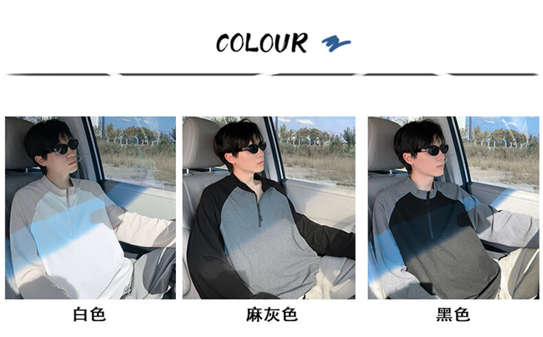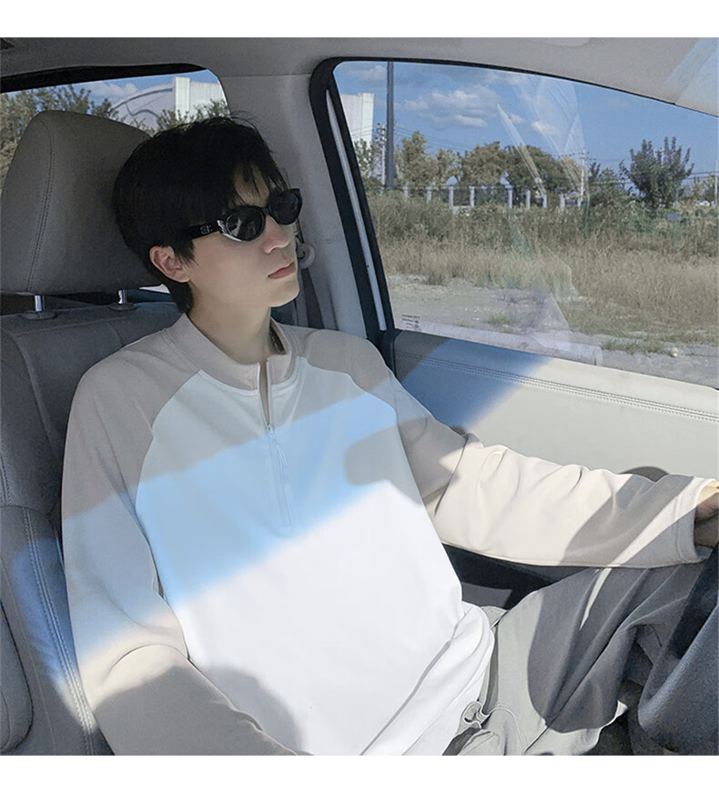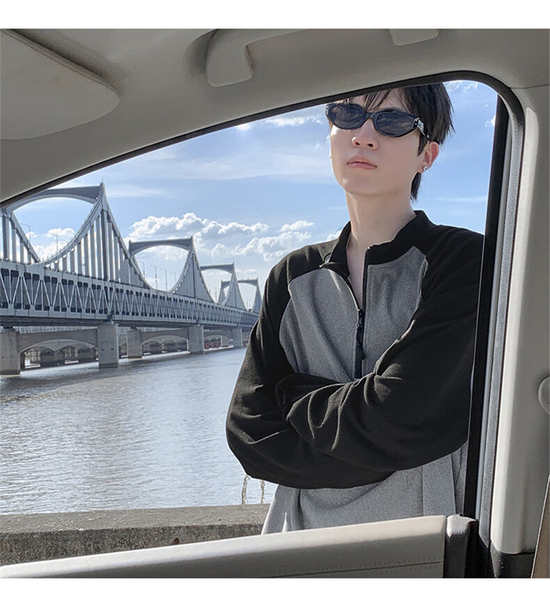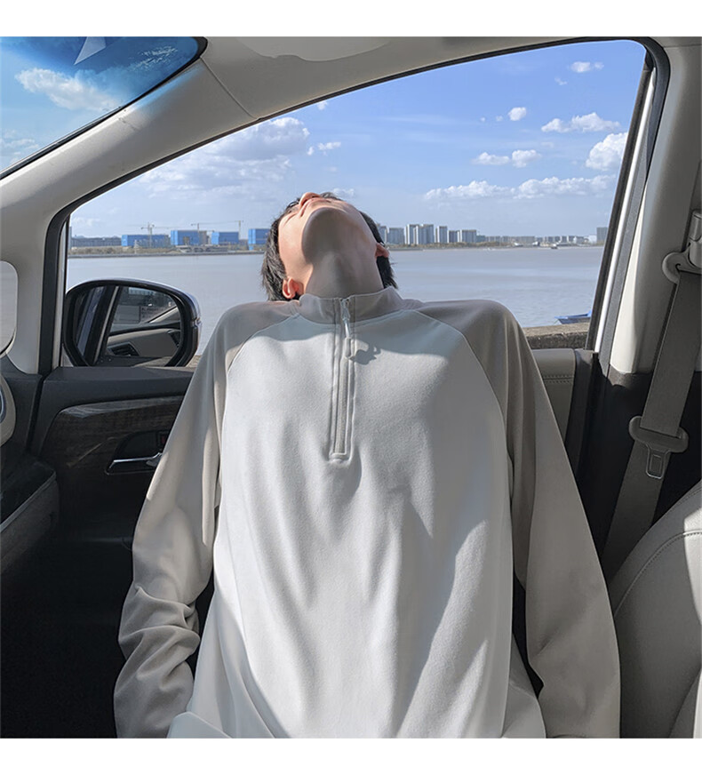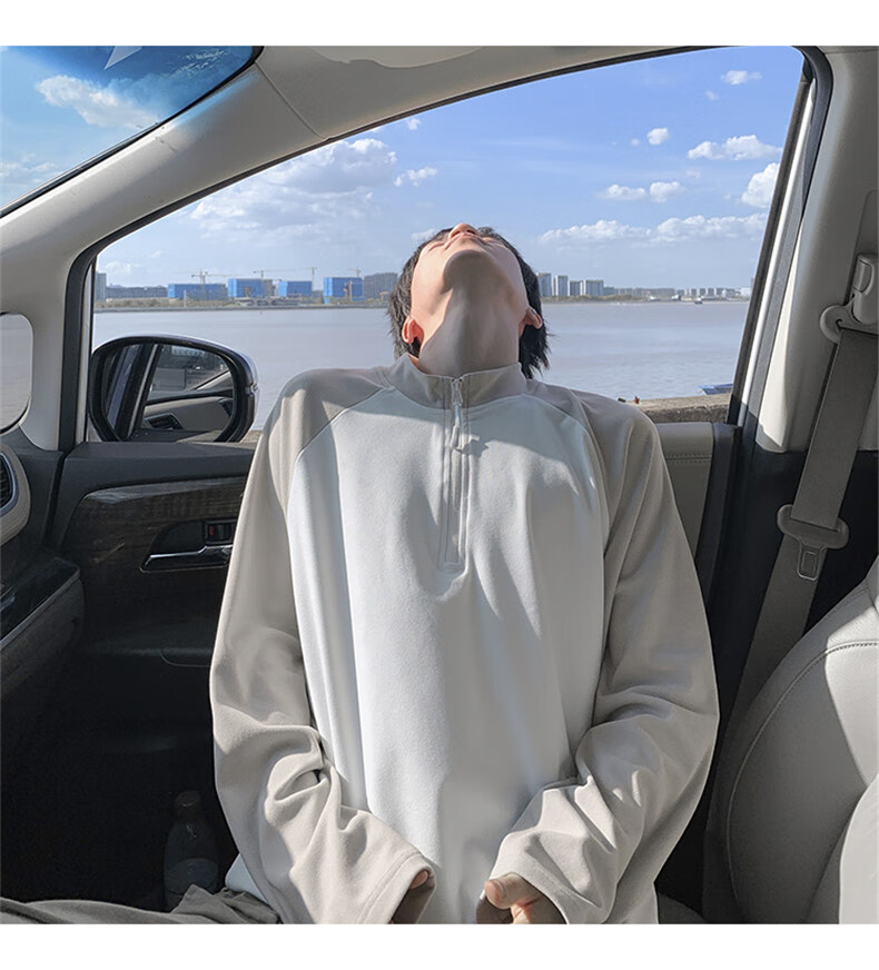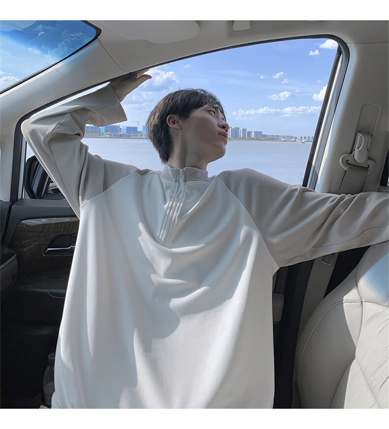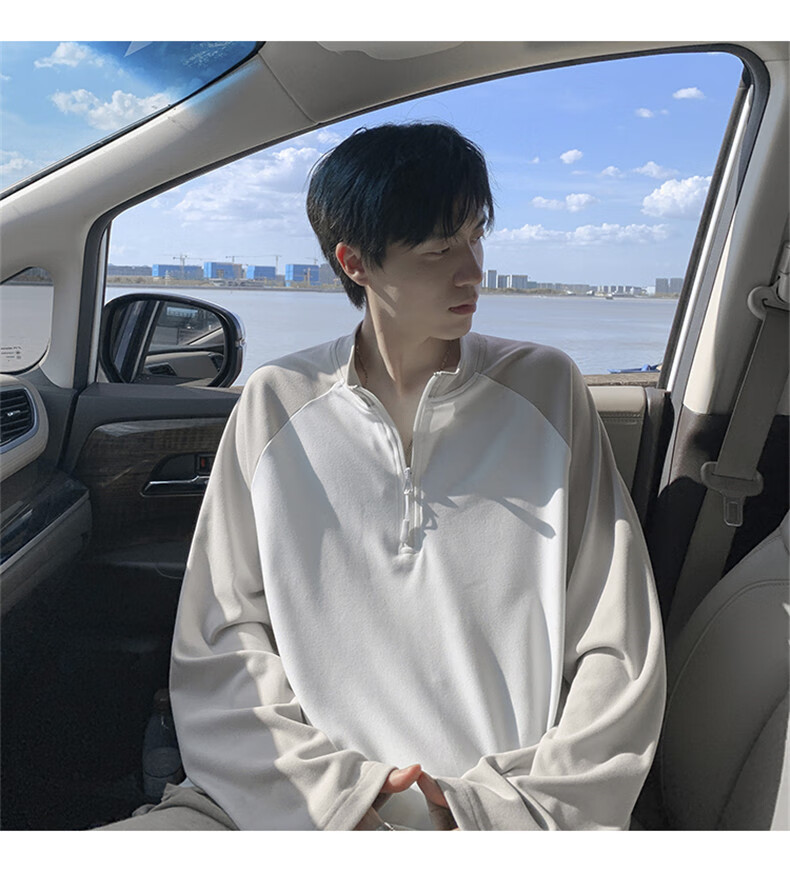 Cebrodz French half-zip long-sleeved T-shirt for men in spring and autumn, versatile youth outdoor sports cycling trendy brand heavy top, black XL
