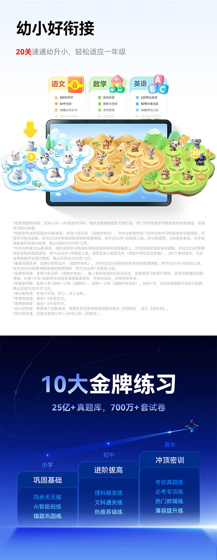 Homework Learning Machine T30/T50 Professional Learning and Training All-in-one Machine Tablet Homework Tutoring for Elementary to High School Students Eye Protection Screen 8+4+256G T50 Blue-Gold Medal Exam Preparation Edition