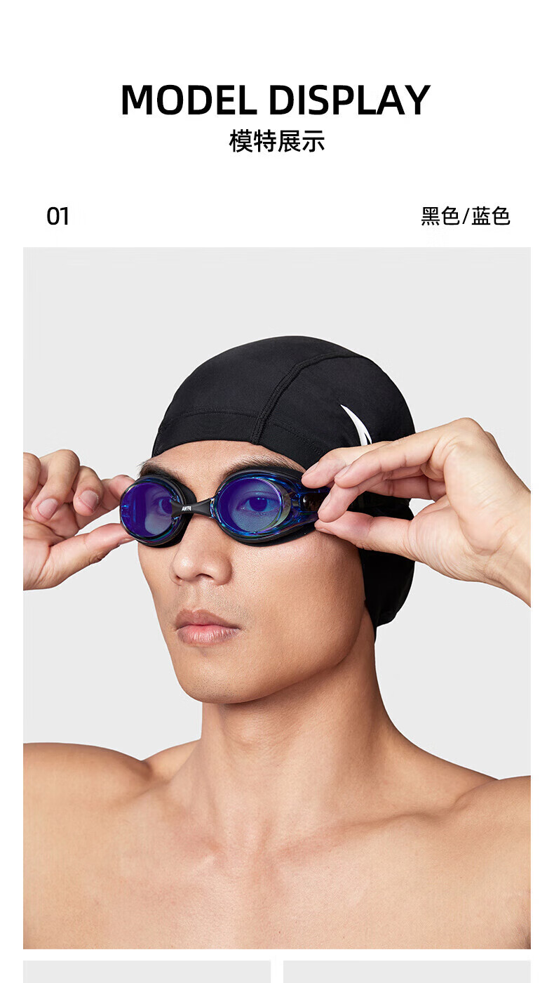 ANTA (ANTA) swimming goggles for men and women, new high-definition anti-fog competition swimming goggles 1824532707 black/blue-2 one size fits all