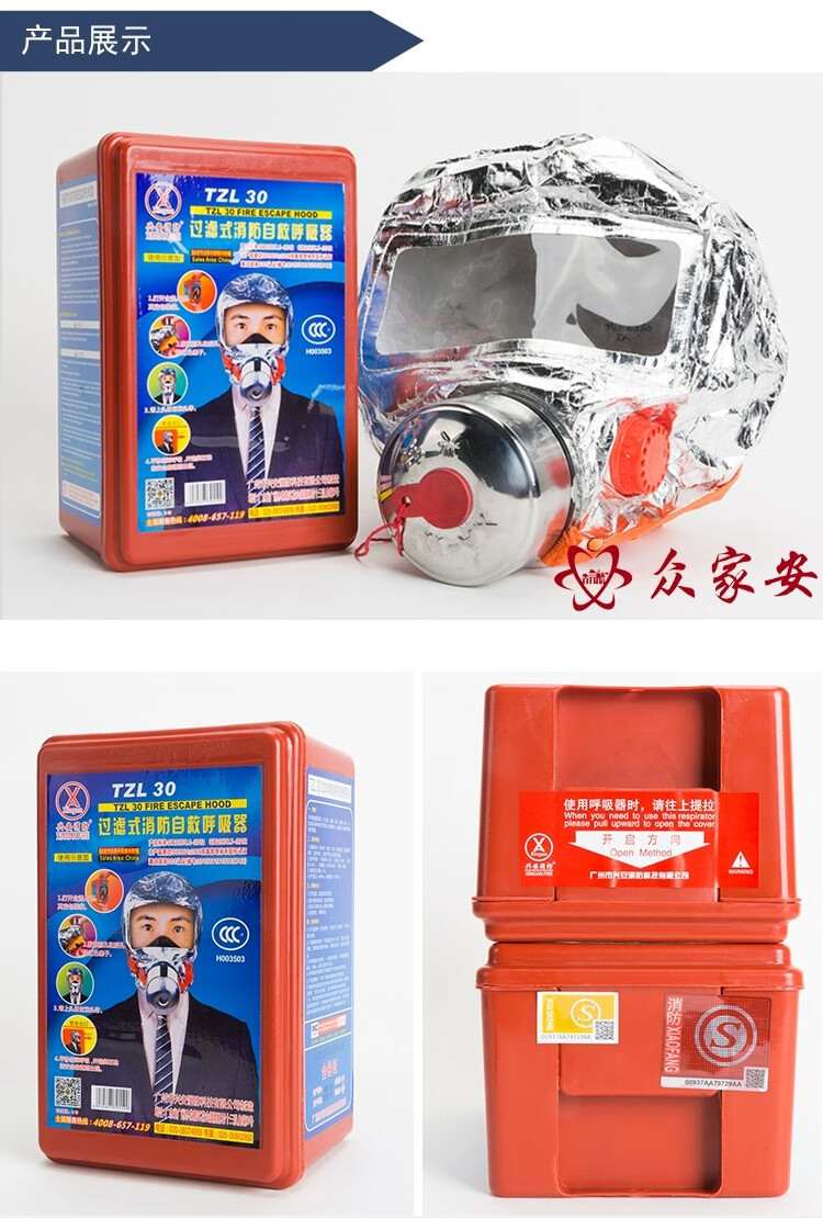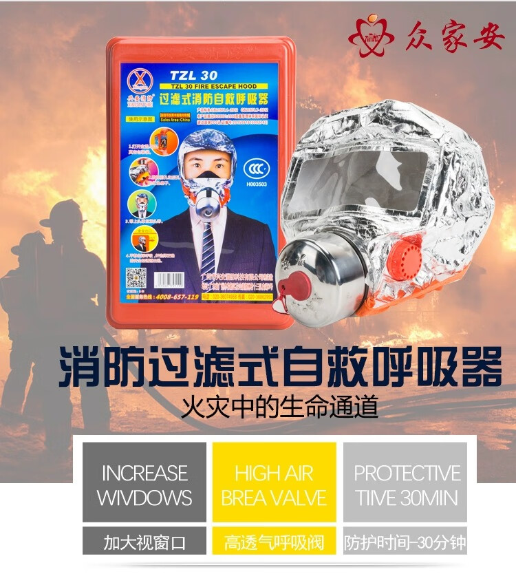 Xing'an fire protection mask, fire protection, anti-virus, anti-smoke mask, hotel 3C certified household fire escape self-rescue respirator, 20 Zhengbang emergency fire masks (one box)