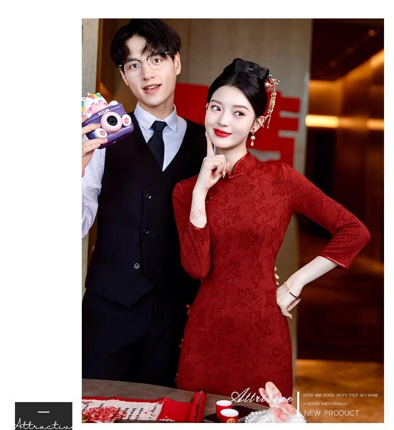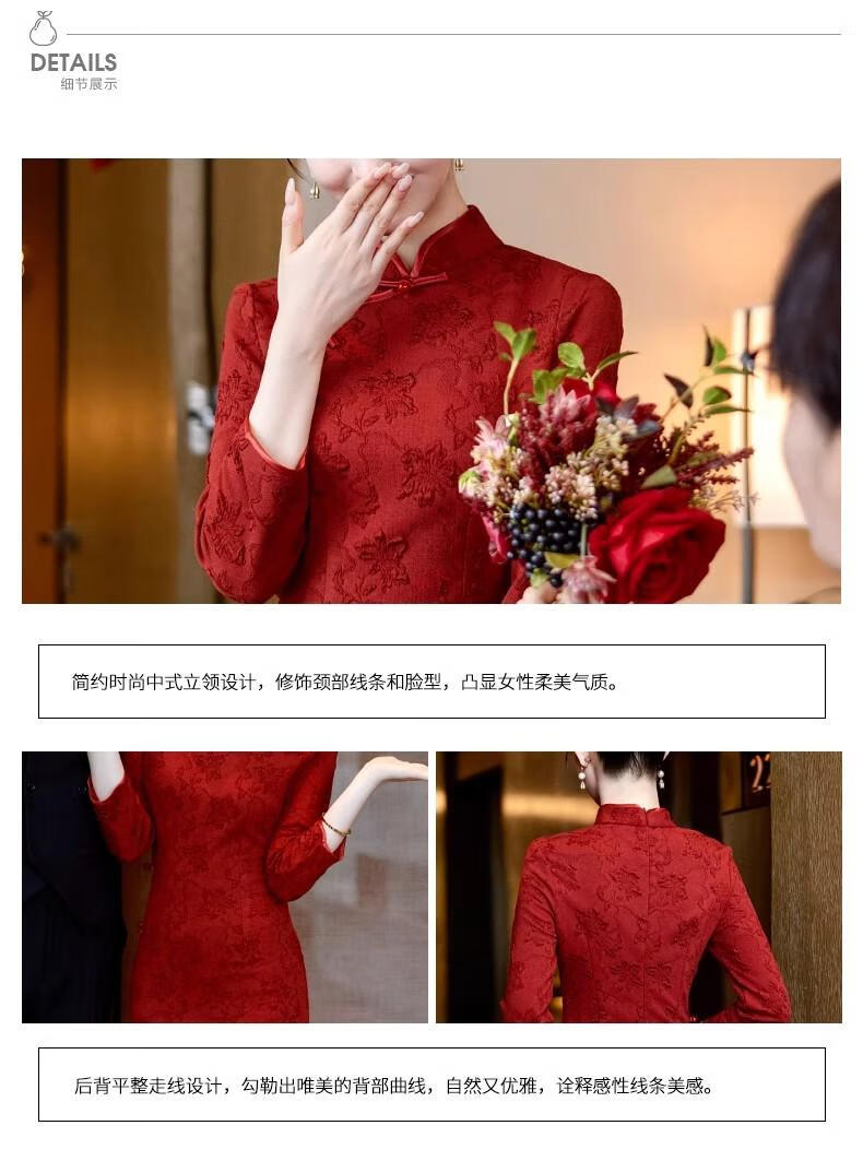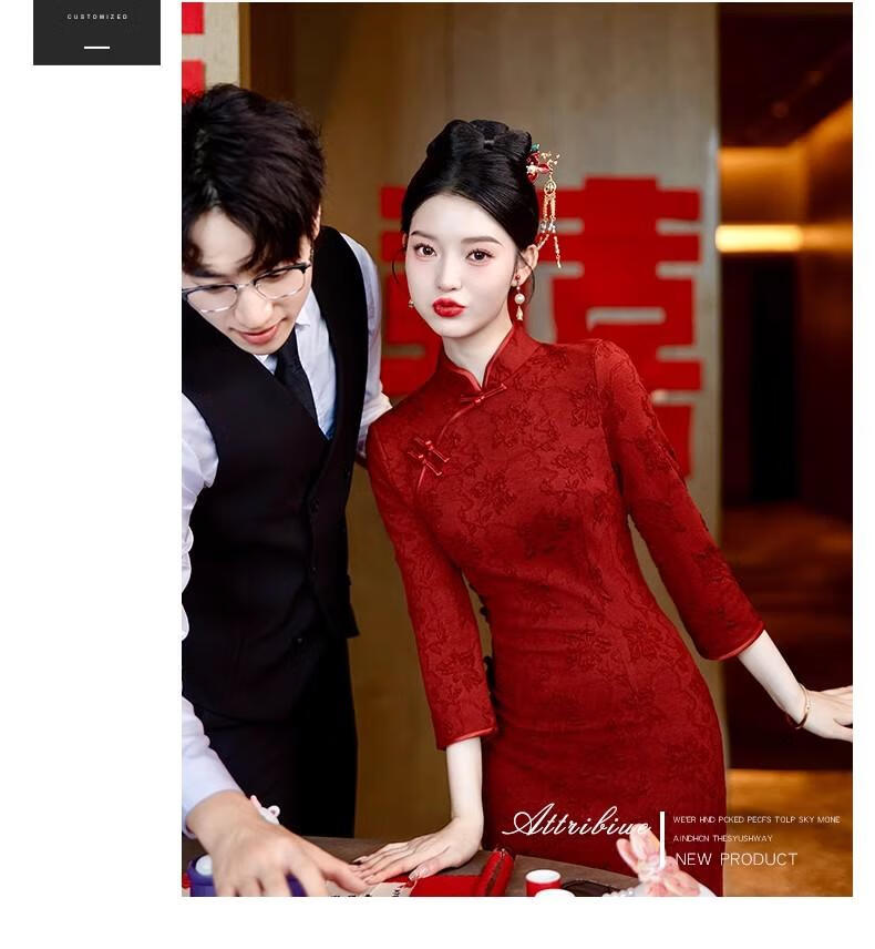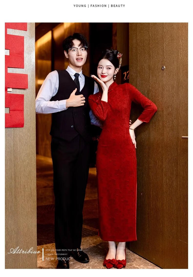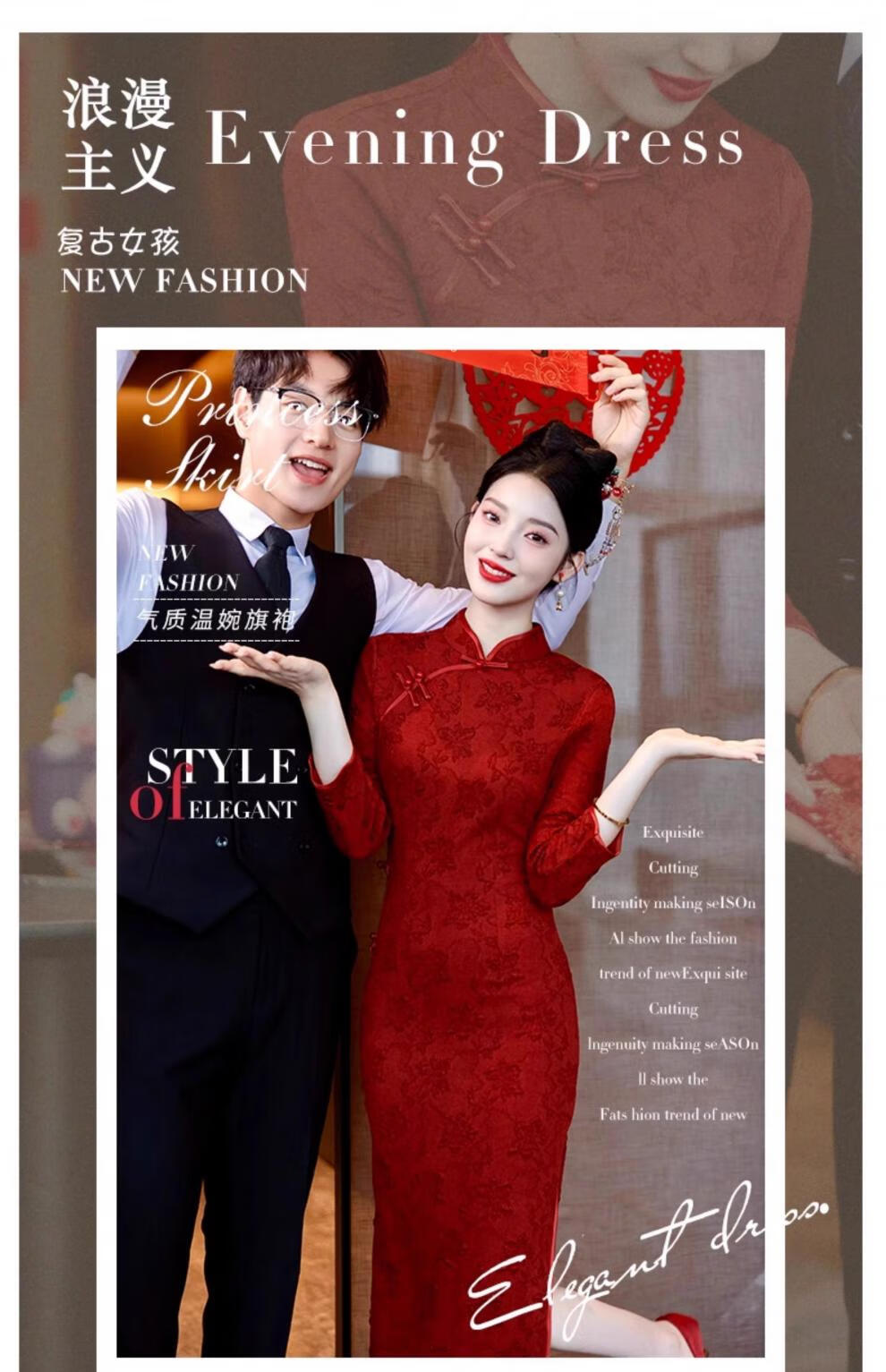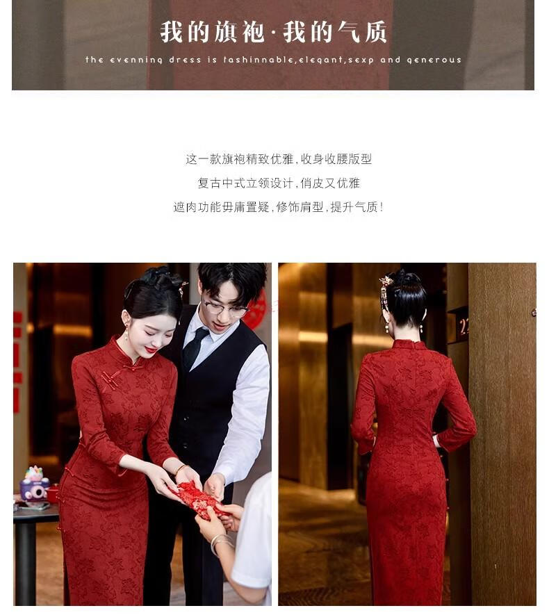 Pierre Cardin New Chinese Style Red Wedding Cheongsam Toast Wear 2025 New Bride Long Engagement Party Slim Dress Burgundy S