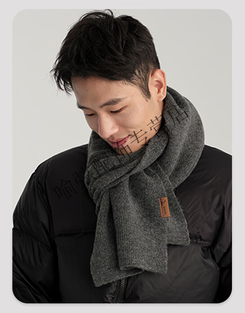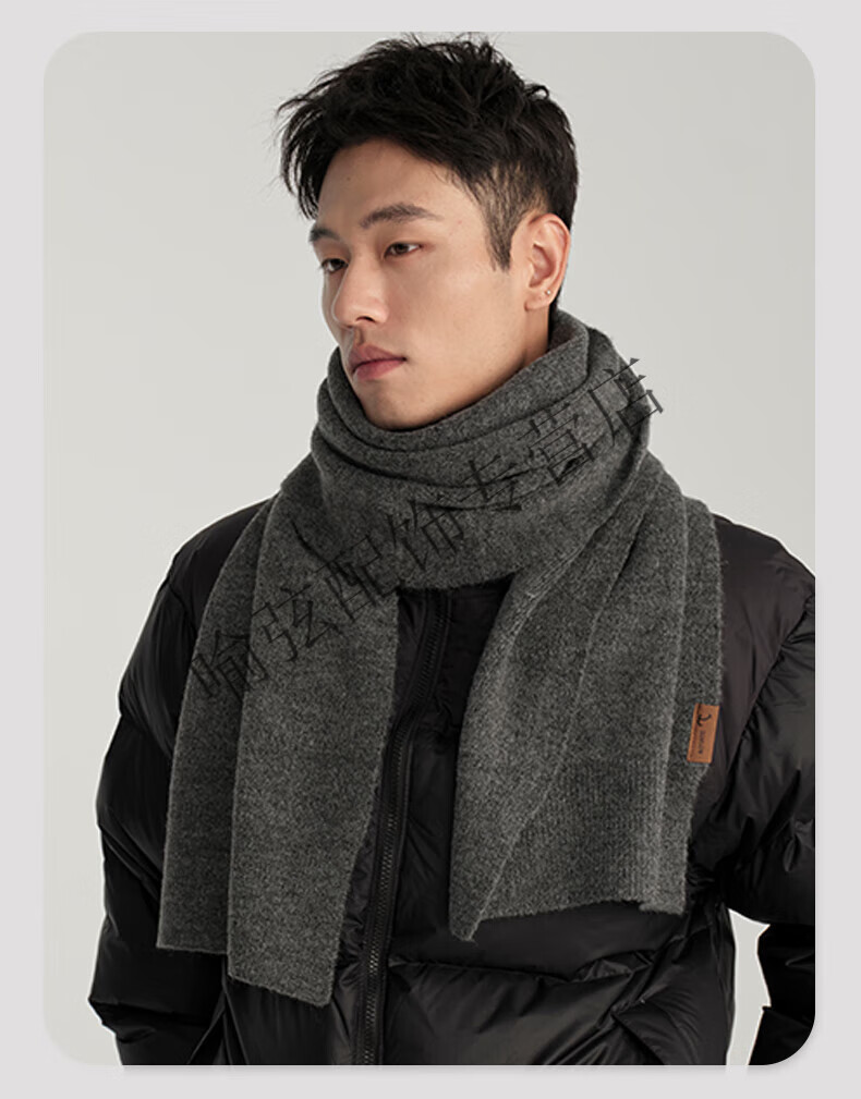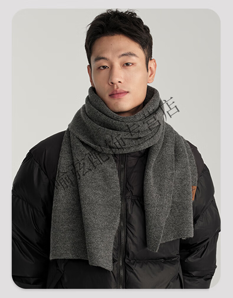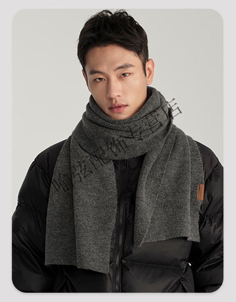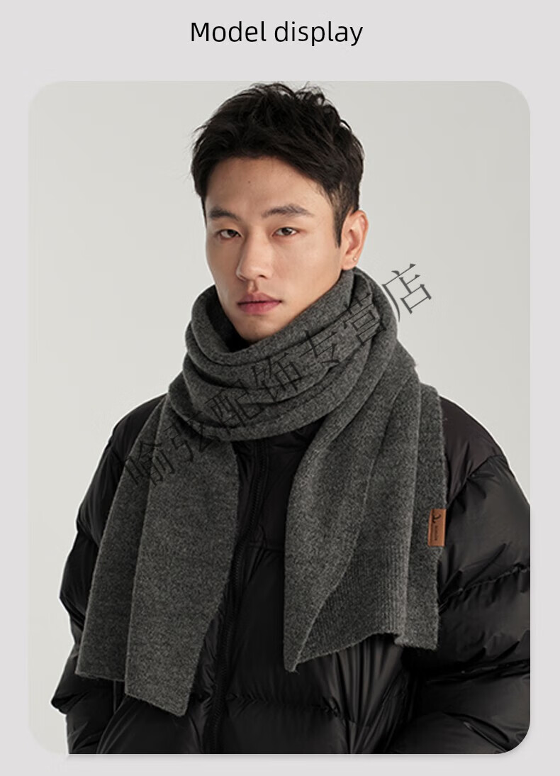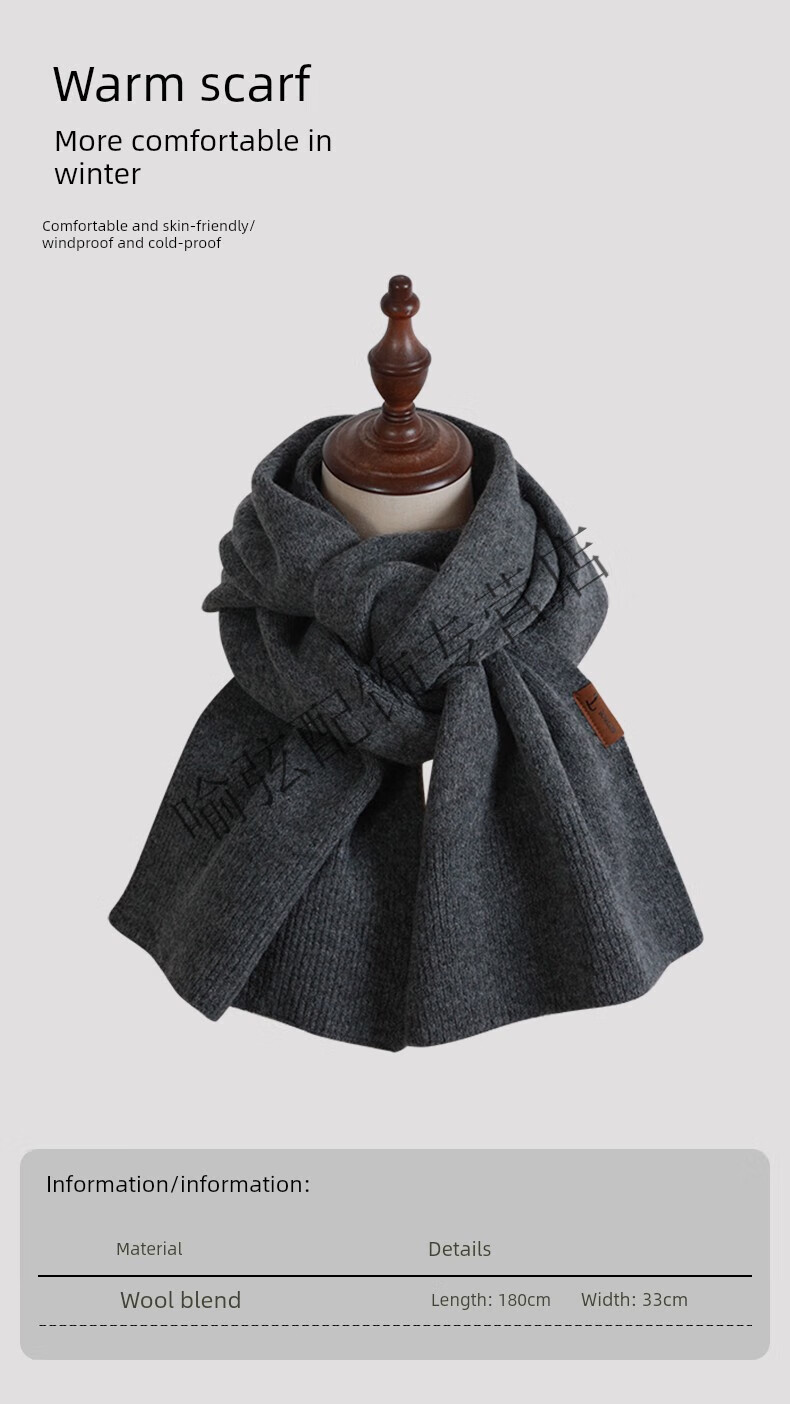 Hengyuanxiang Wool Gray Scarf Men's Winter Warm Fashionable Atmosphere Knitted Scarf Couple Birthday Gift for Boyfriend Dark Gray