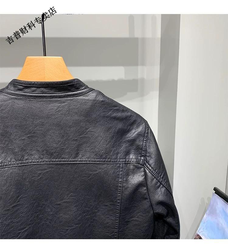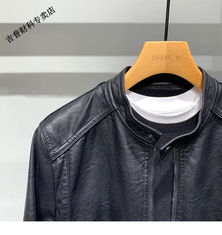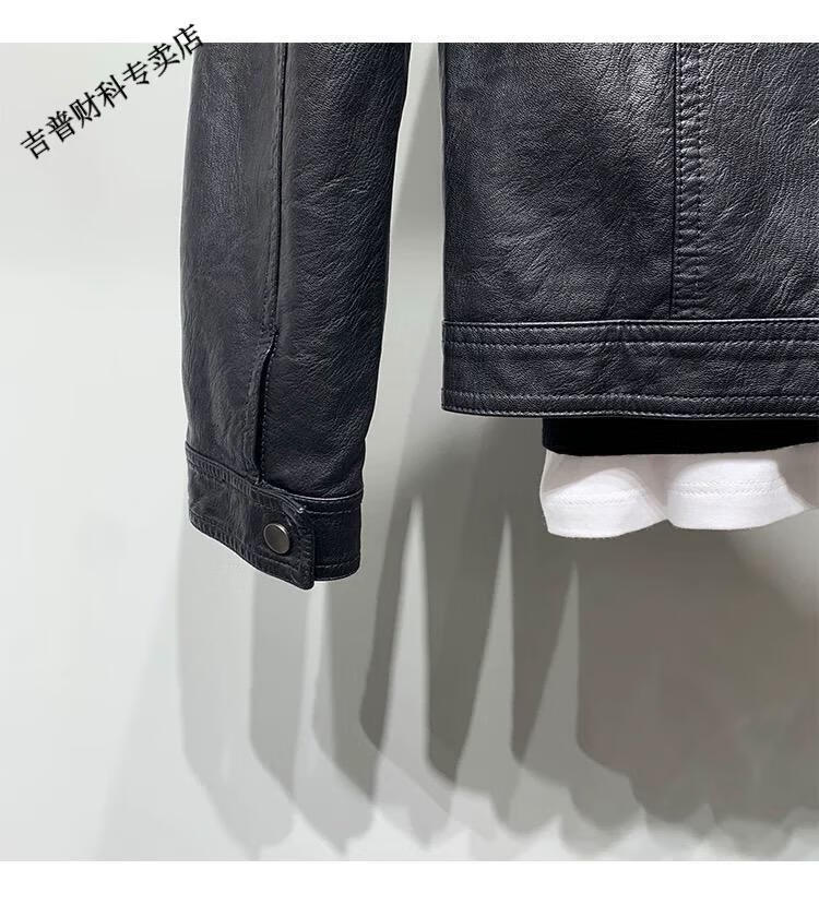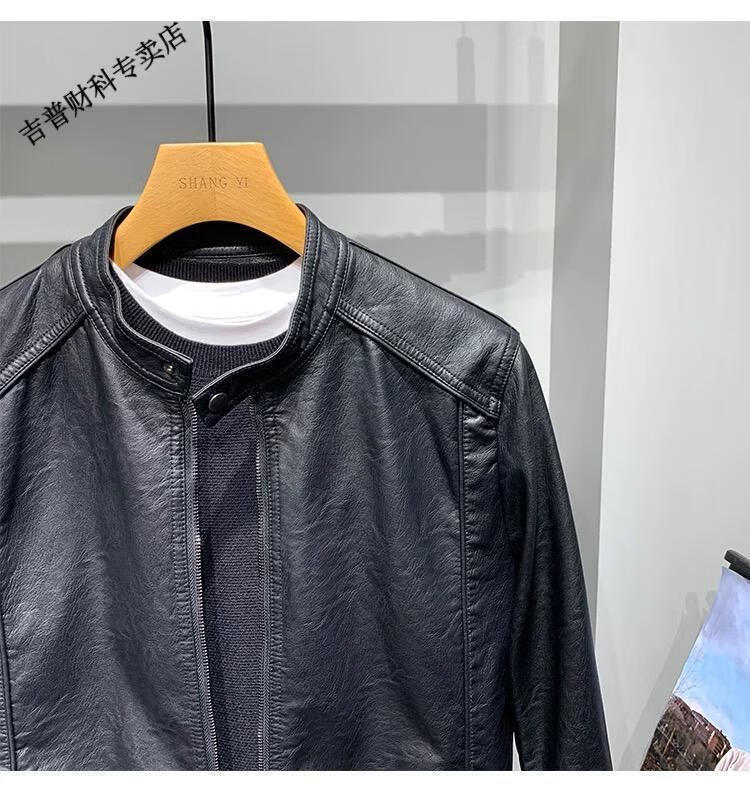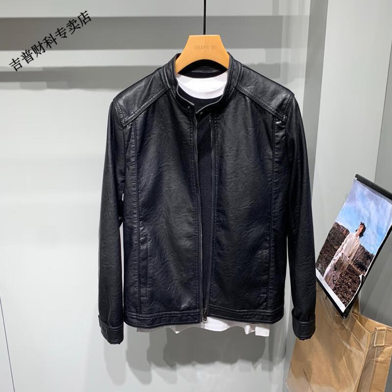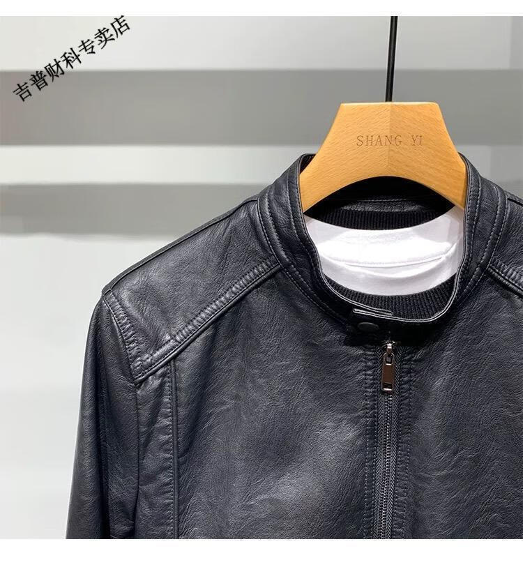 JEEP SPIRIT motorcycle leather jacket for young men spring new Korean version trendy slim handsome versatile stand collar riding leather jacket black L recommended weight 100-115Jin Jin equals 0.5 kg
