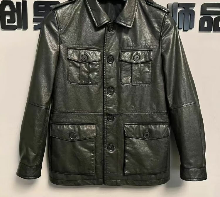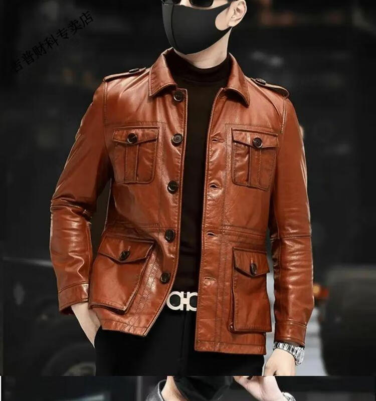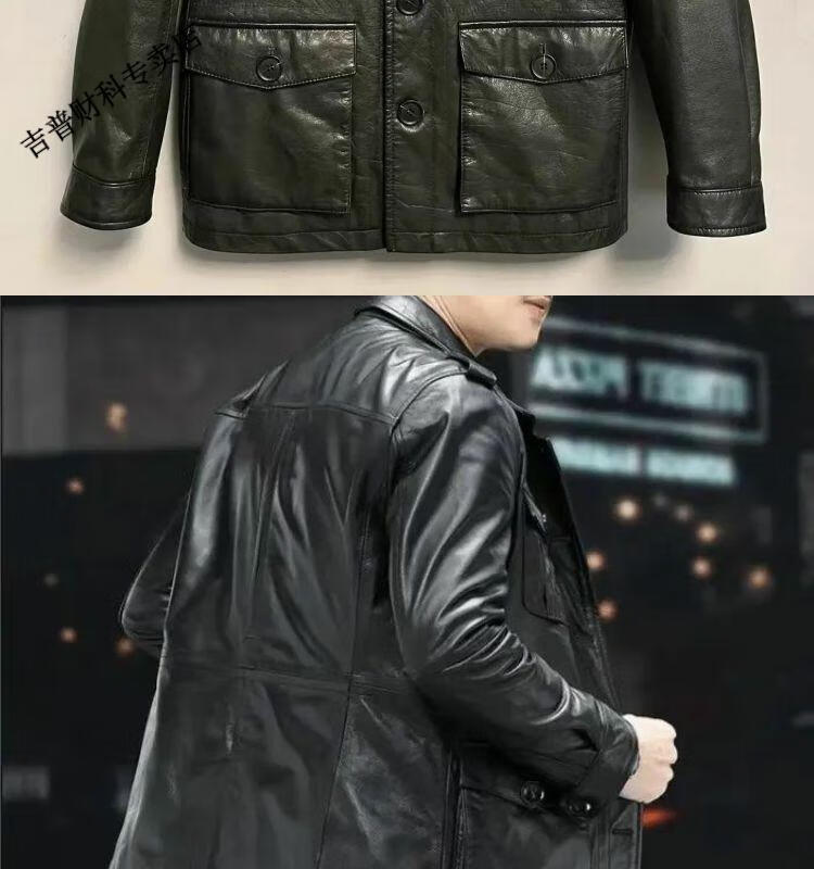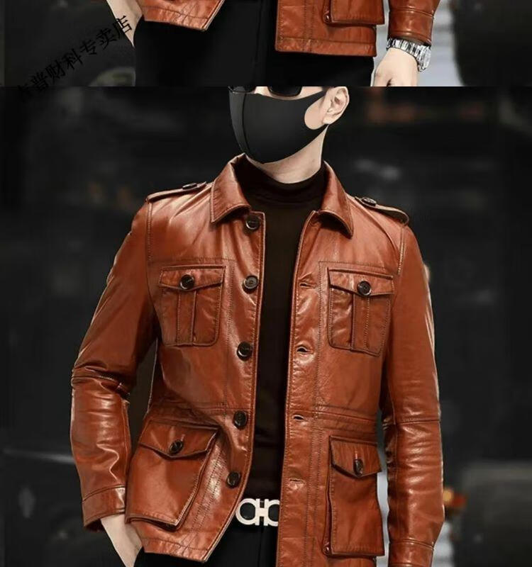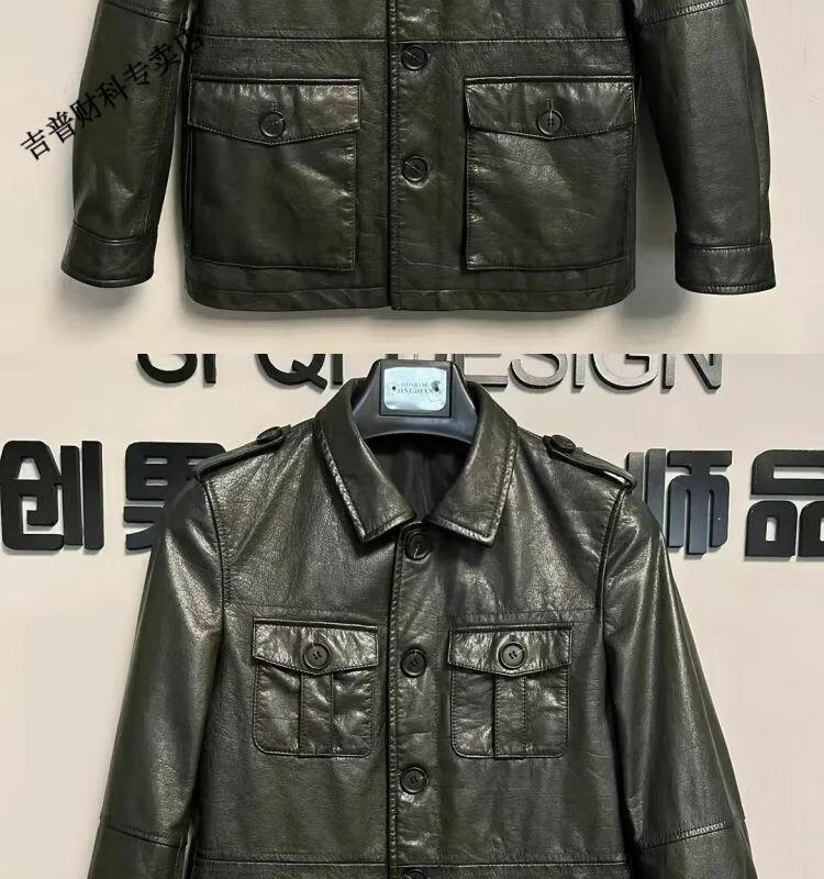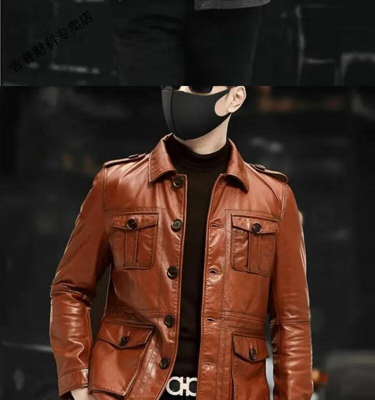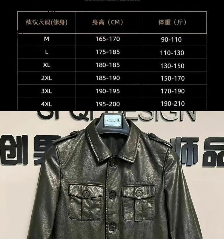 JEEP SPIRIT Heavy Industry Quality Motorcycle Leather Jacket Leather Jacket Slim Hunting Short Lapel Multi-Pocket Autumn and Winter New Men's Clothing Black M 90-110Jin Jin is equal to 0.5 kg