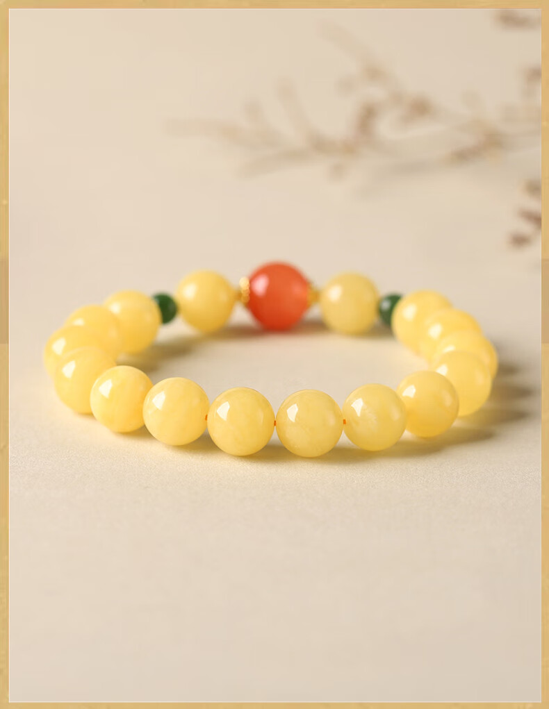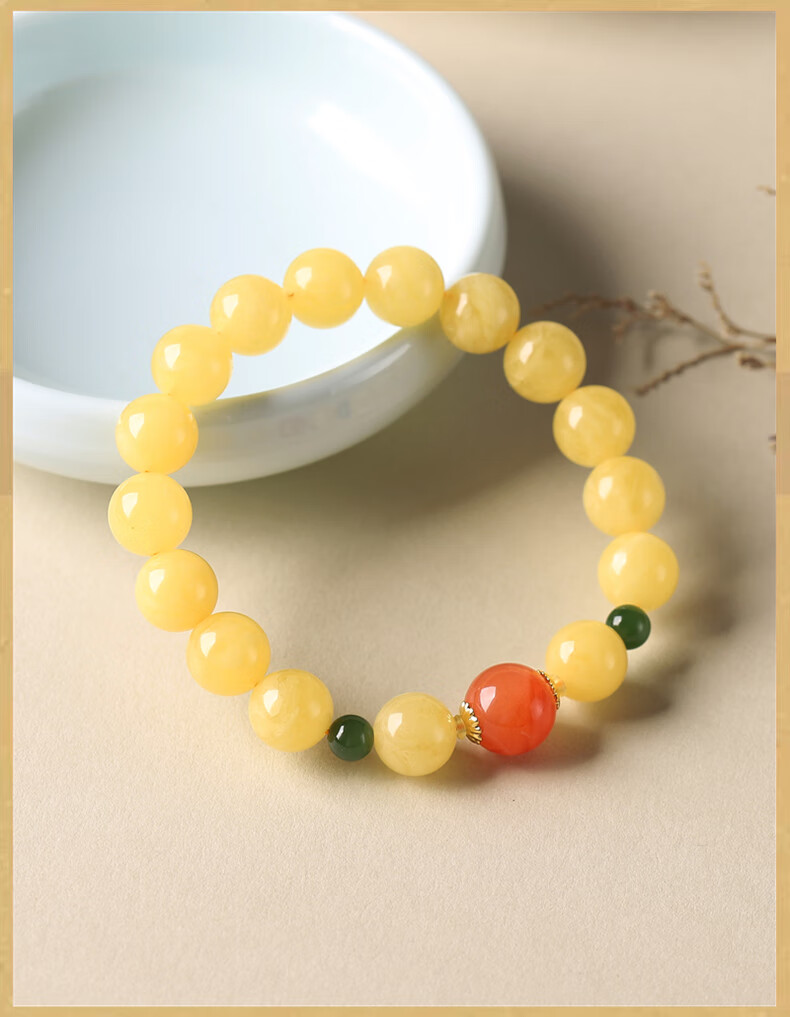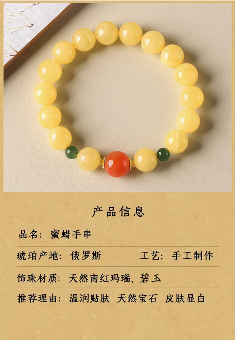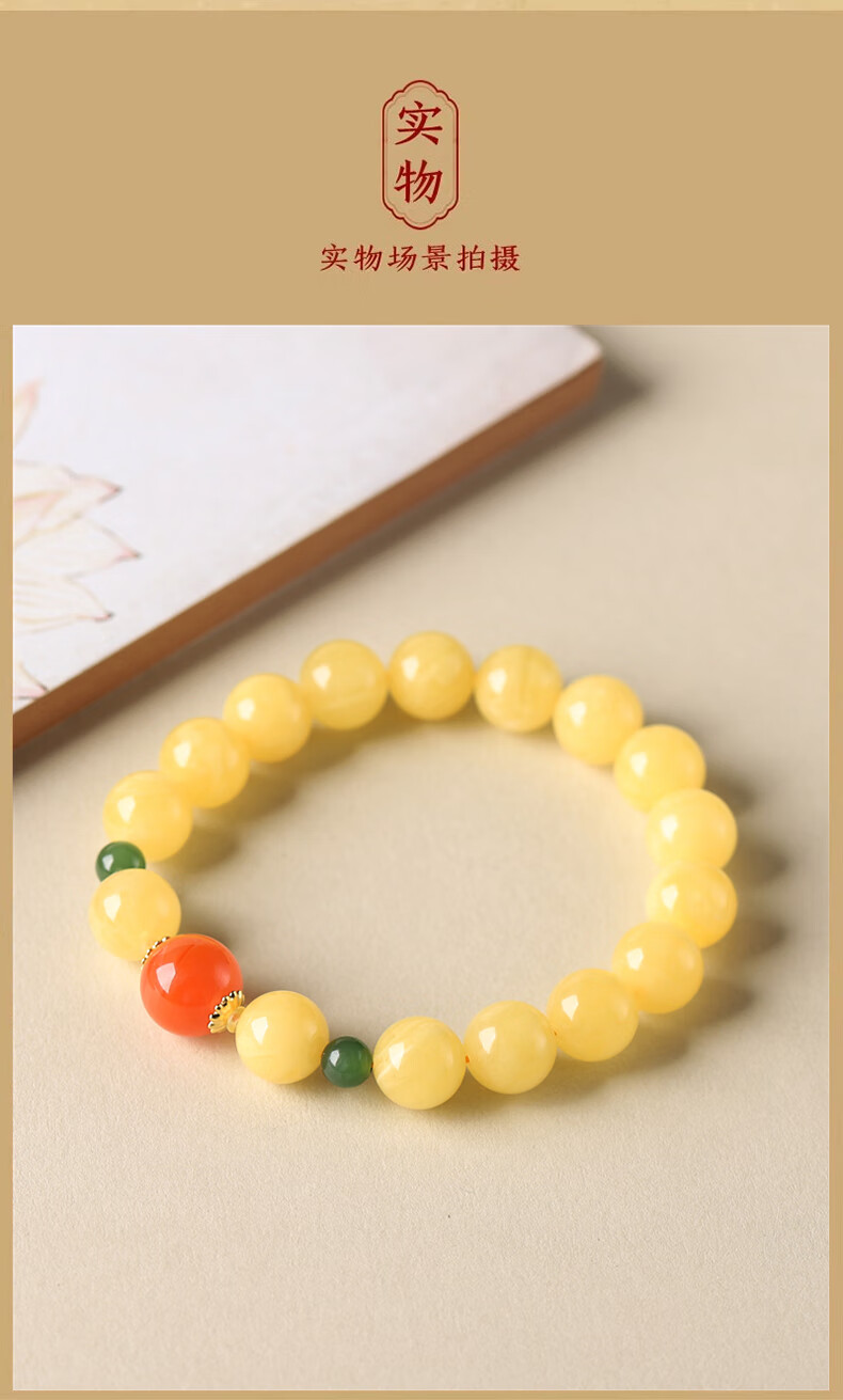 Layun Feiyin natural authentic beeswax bracelet amber raw ore Russian material chicken oil yellow honey single circle bracelet gift for female couple raw ore Russian material 8mm