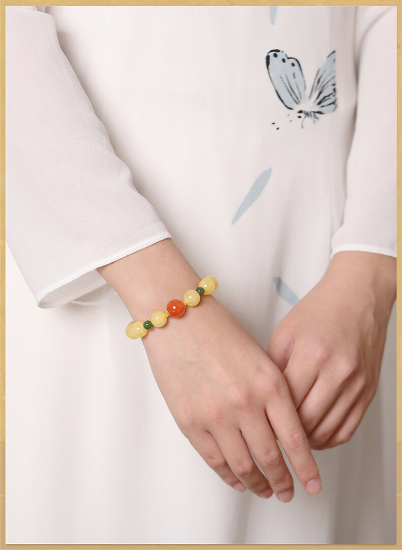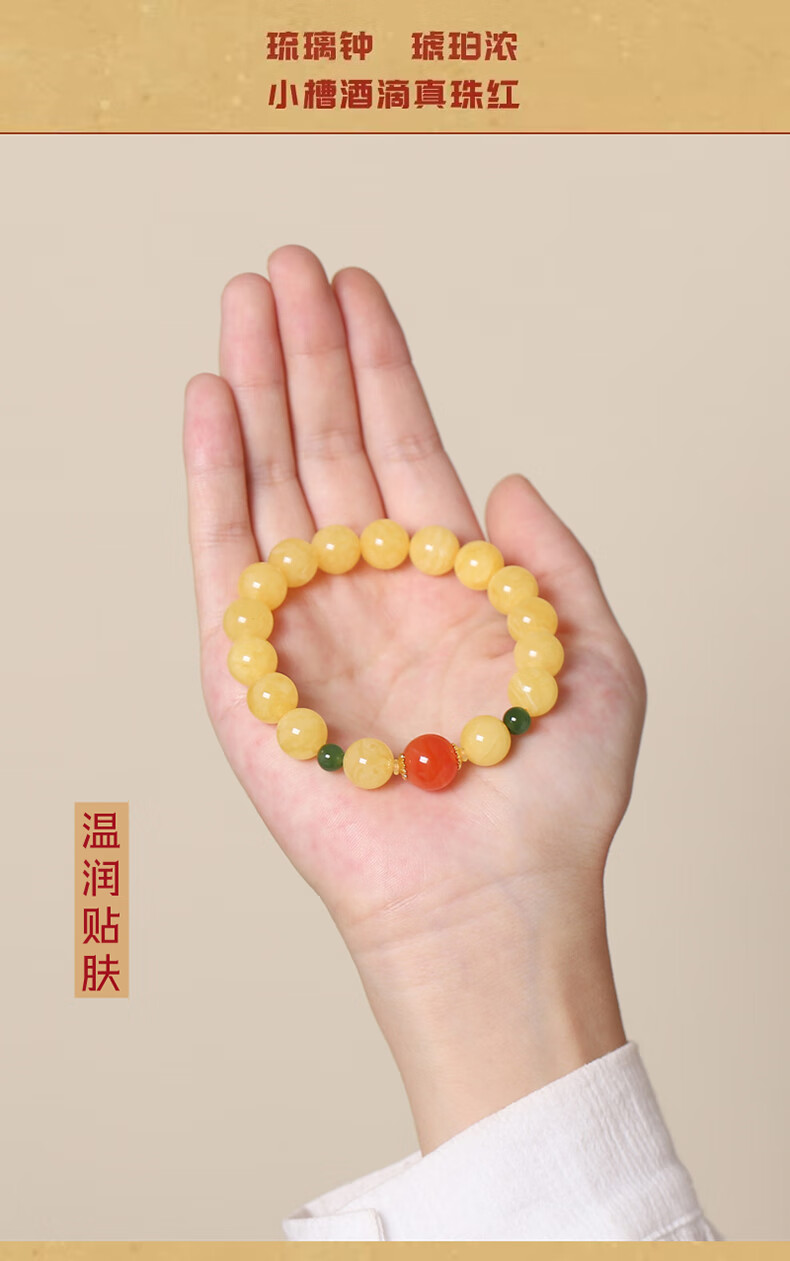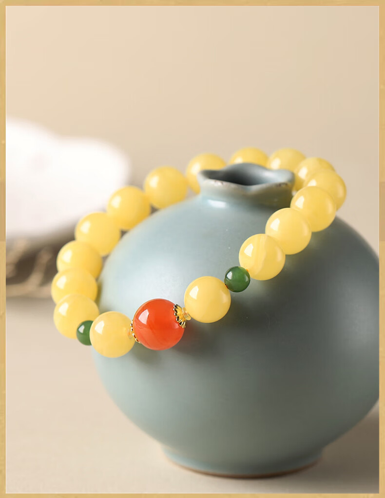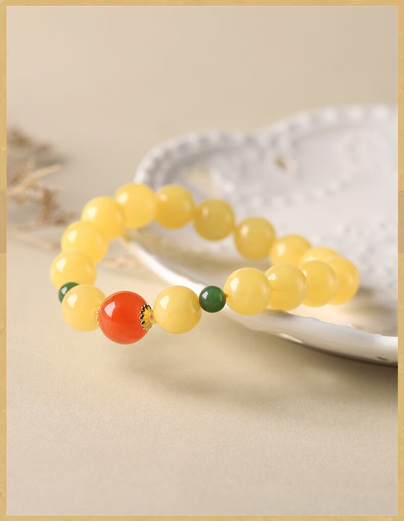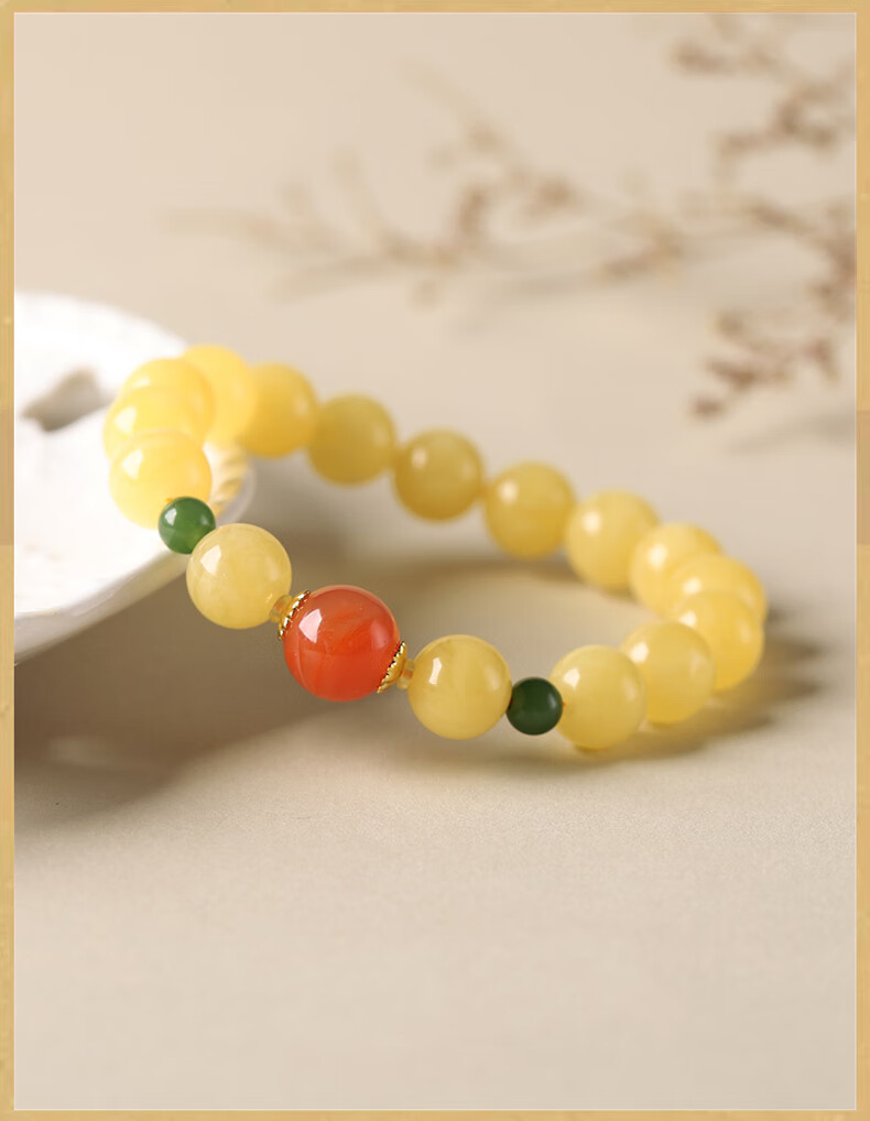 Layun Feiyin natural authentic beeswax bracelet amber raw ore Russian material chicken oil yellow honey single circle bracelet gift for female couple raw ore Russian material 8mm