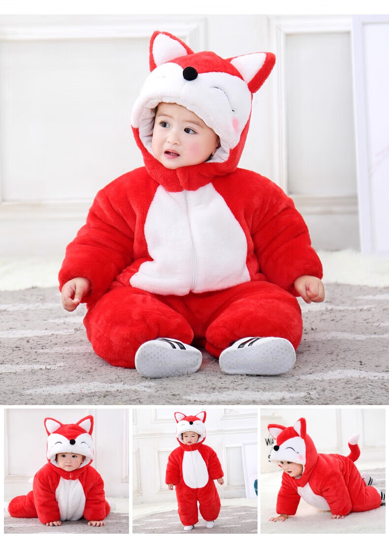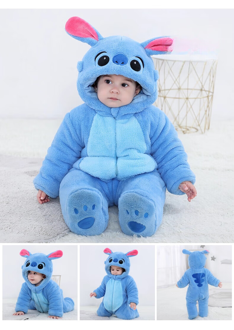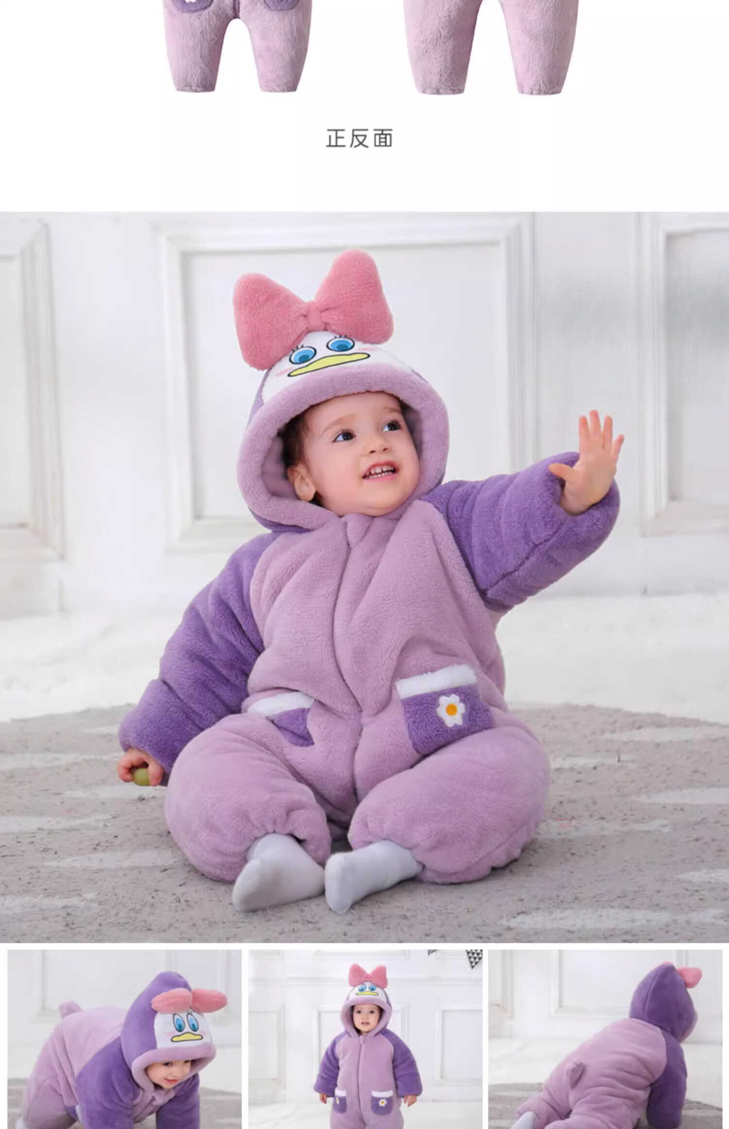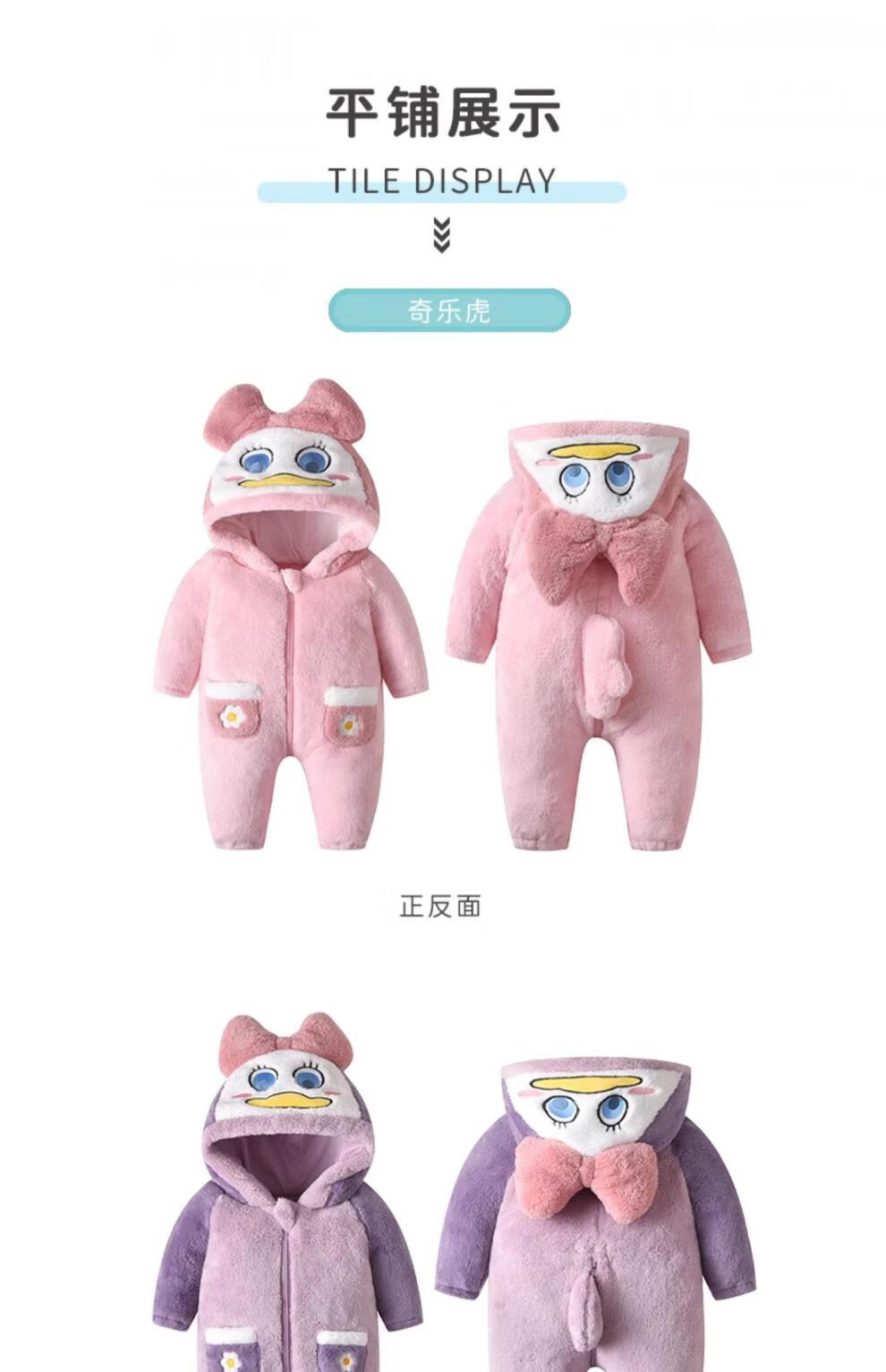 G.duck autumn and winter baby jumpsuit thickened cotton clothes cute baby crawling clothes cute animal home clothes pajamas outing clothes double layer late autumn purple duck 59cm height 52-59cm