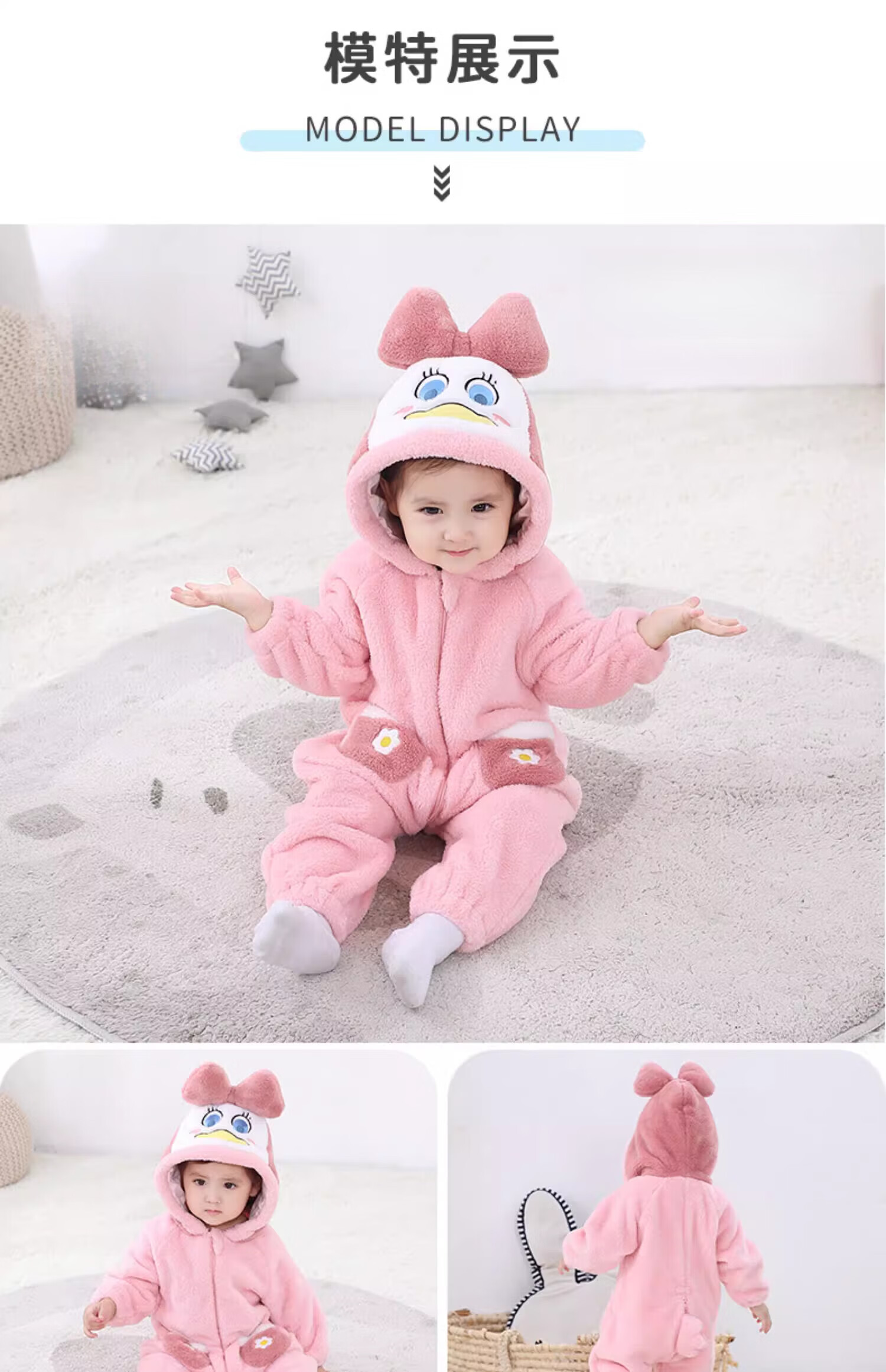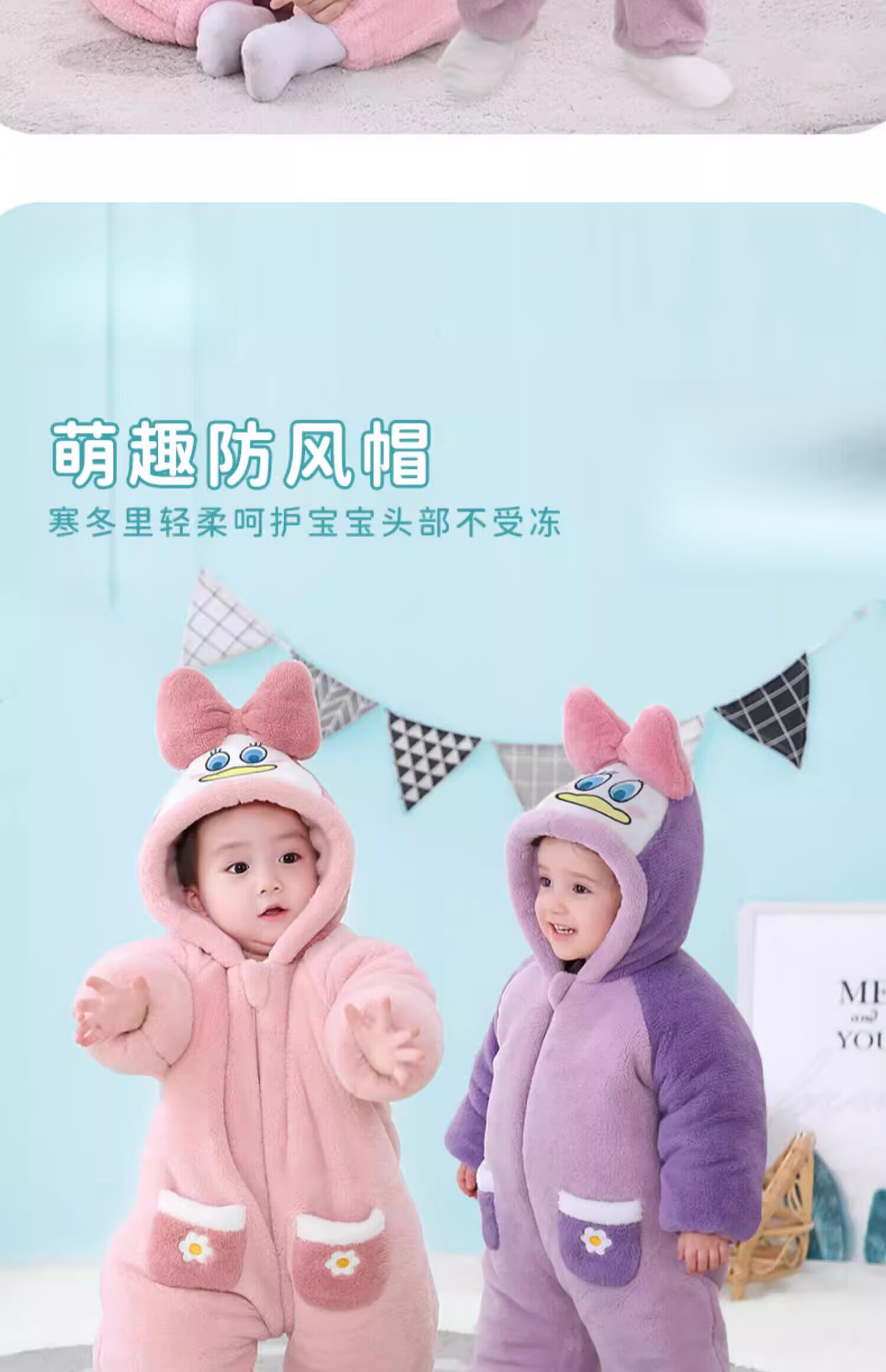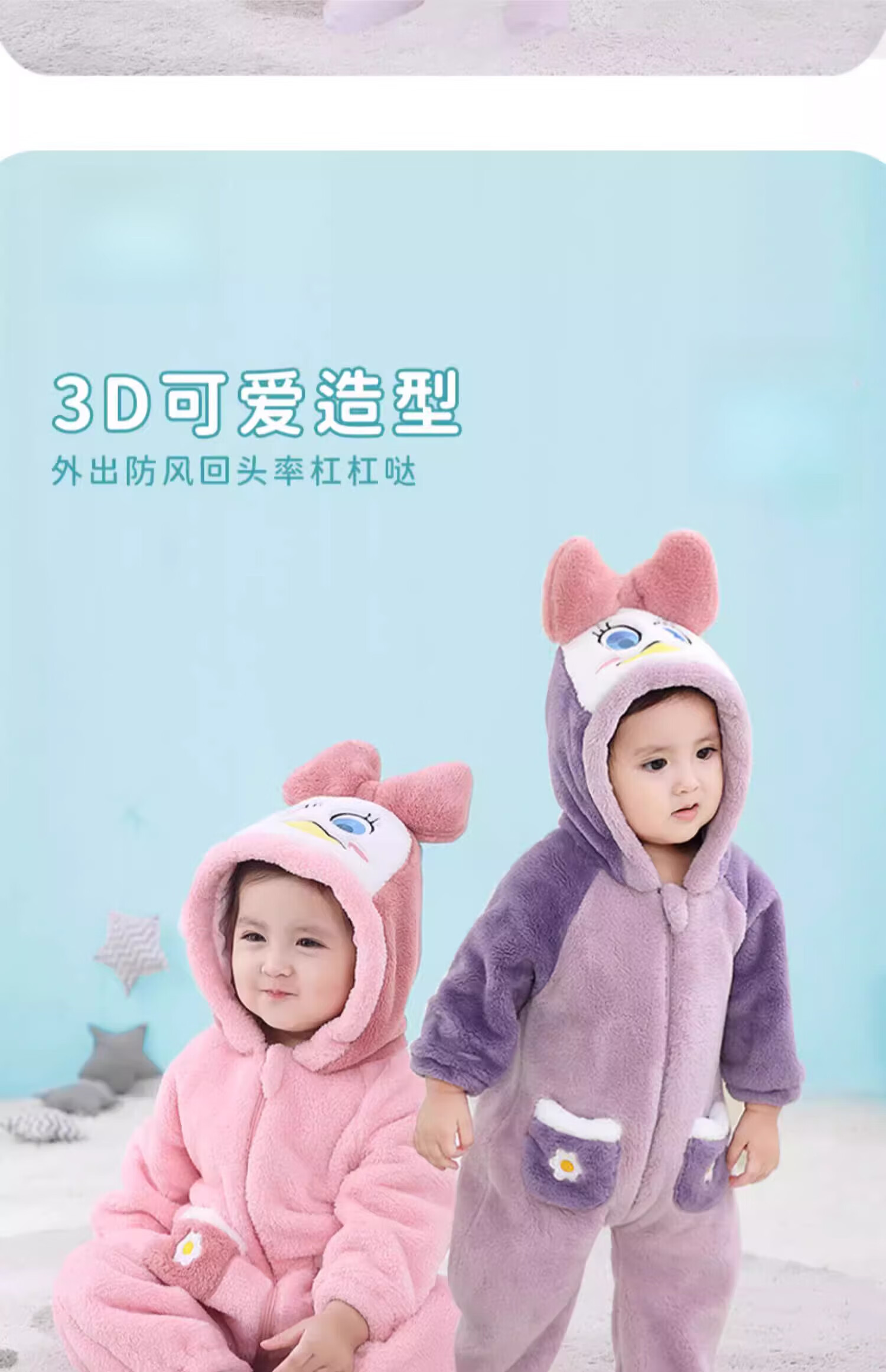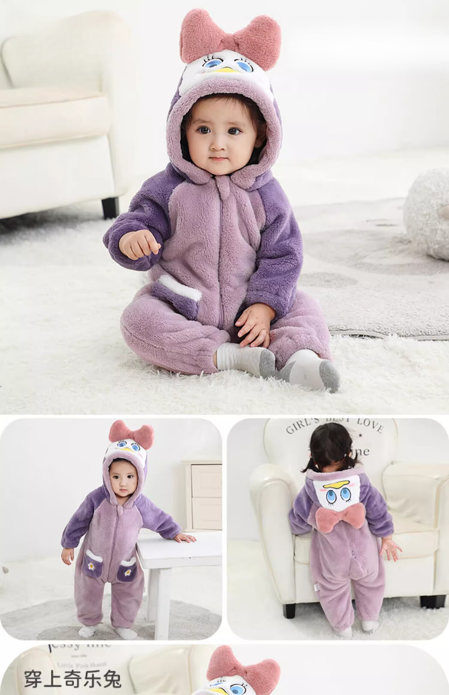 G.duck autumn and winter baby jumpsuit thickened cotton clothes cute baby crawling clothes cute animal home clothes pajamas outing clothes double layer late autumn purple duck 59cm height 52-59cm