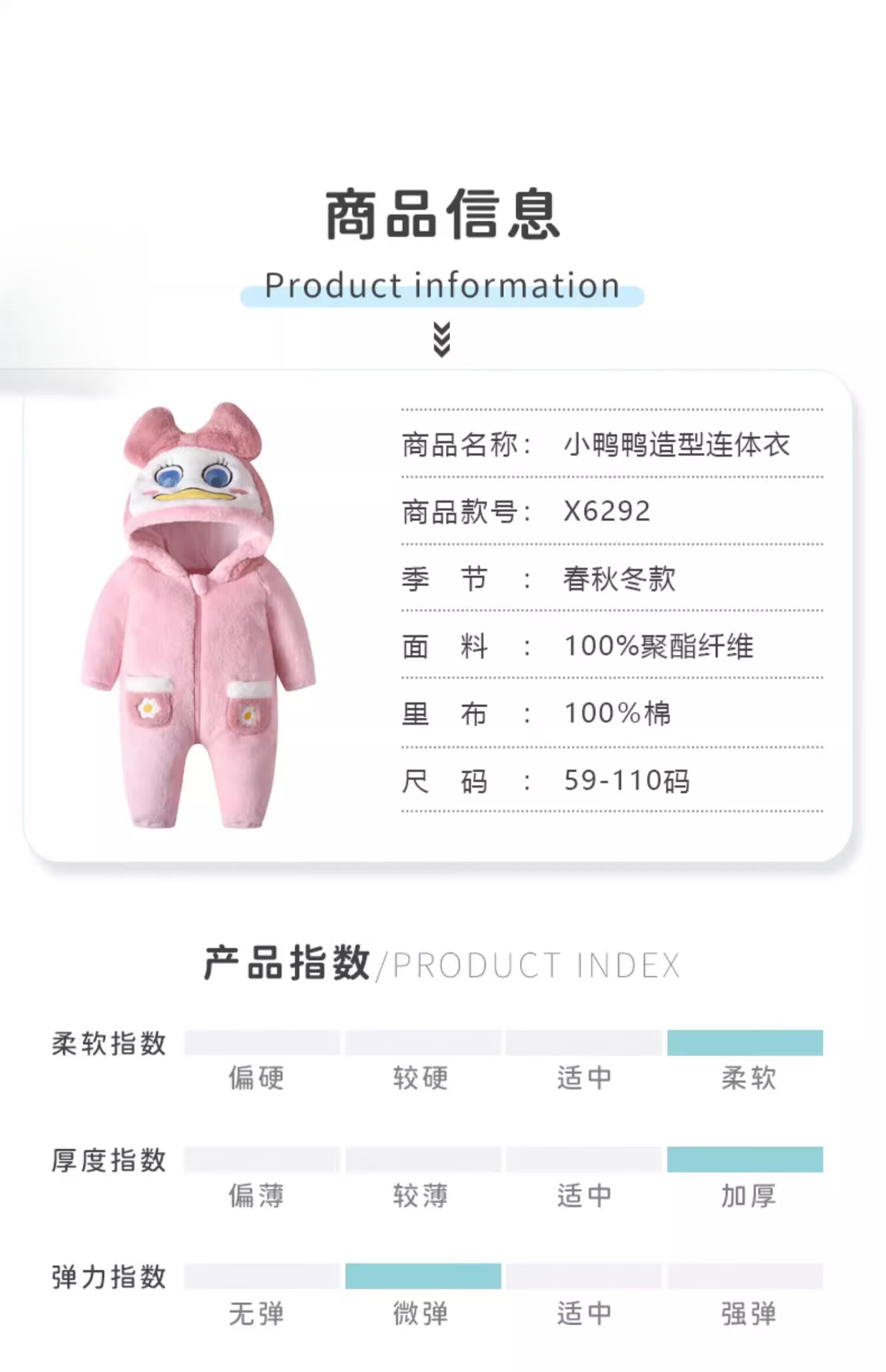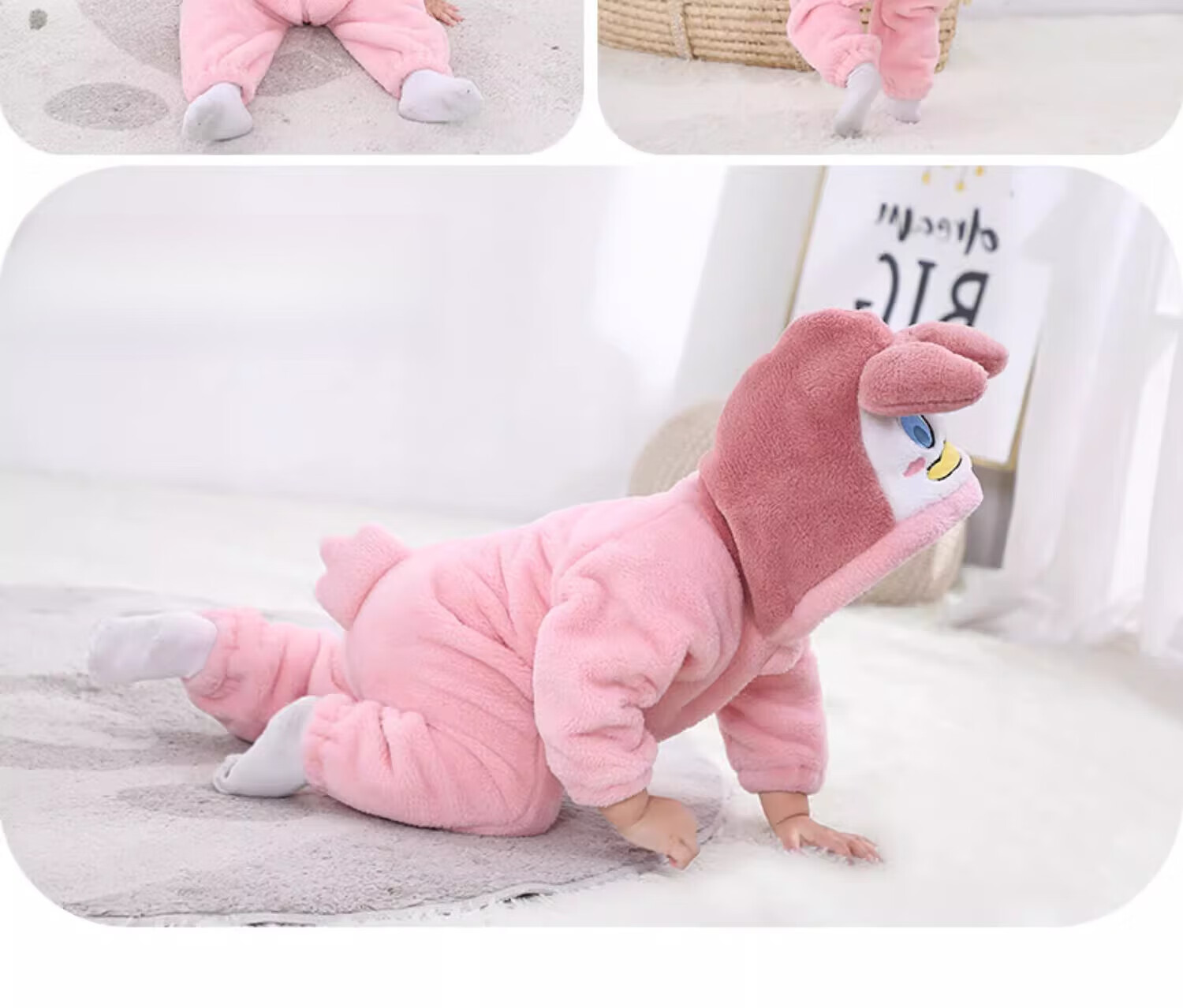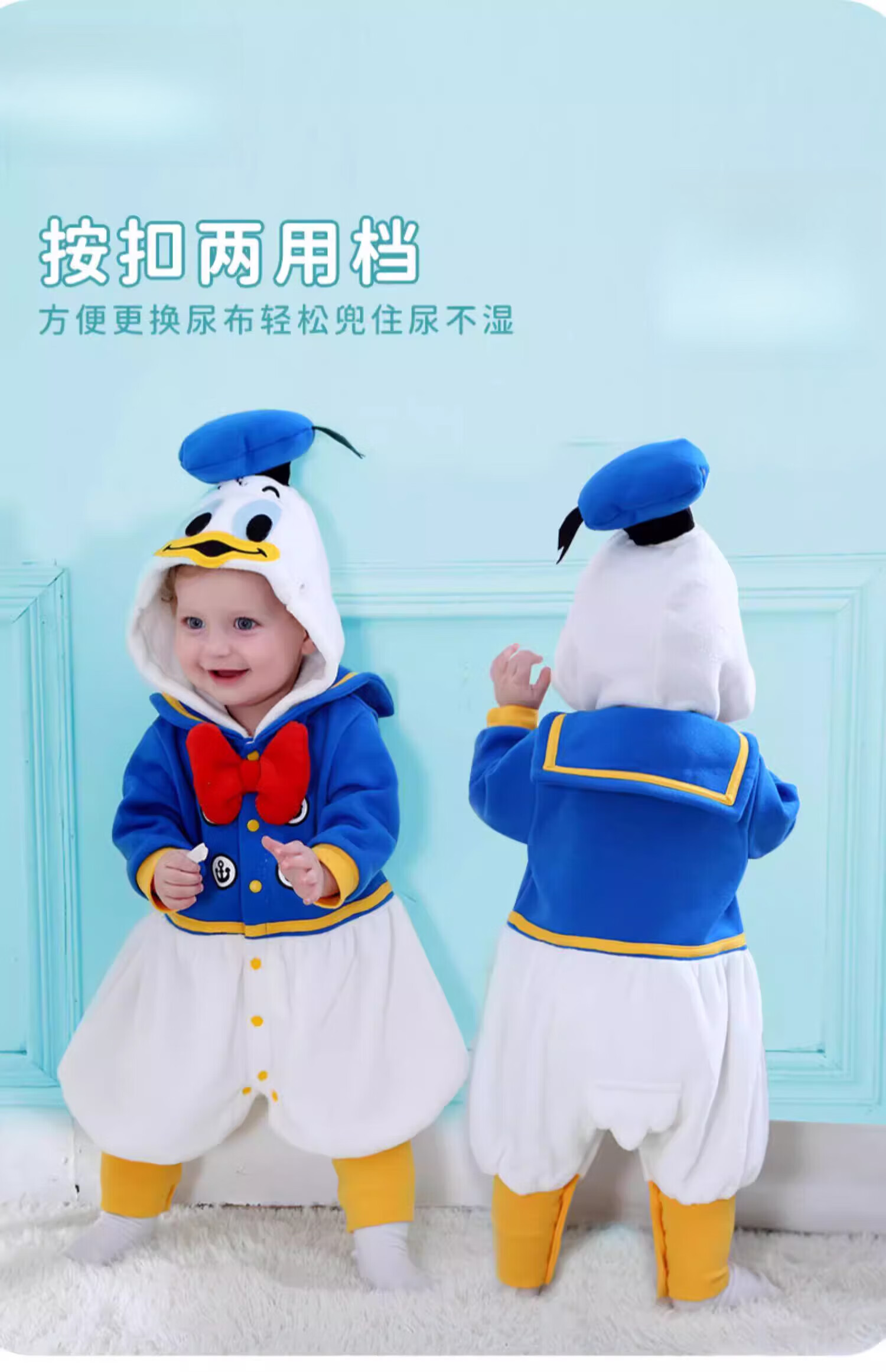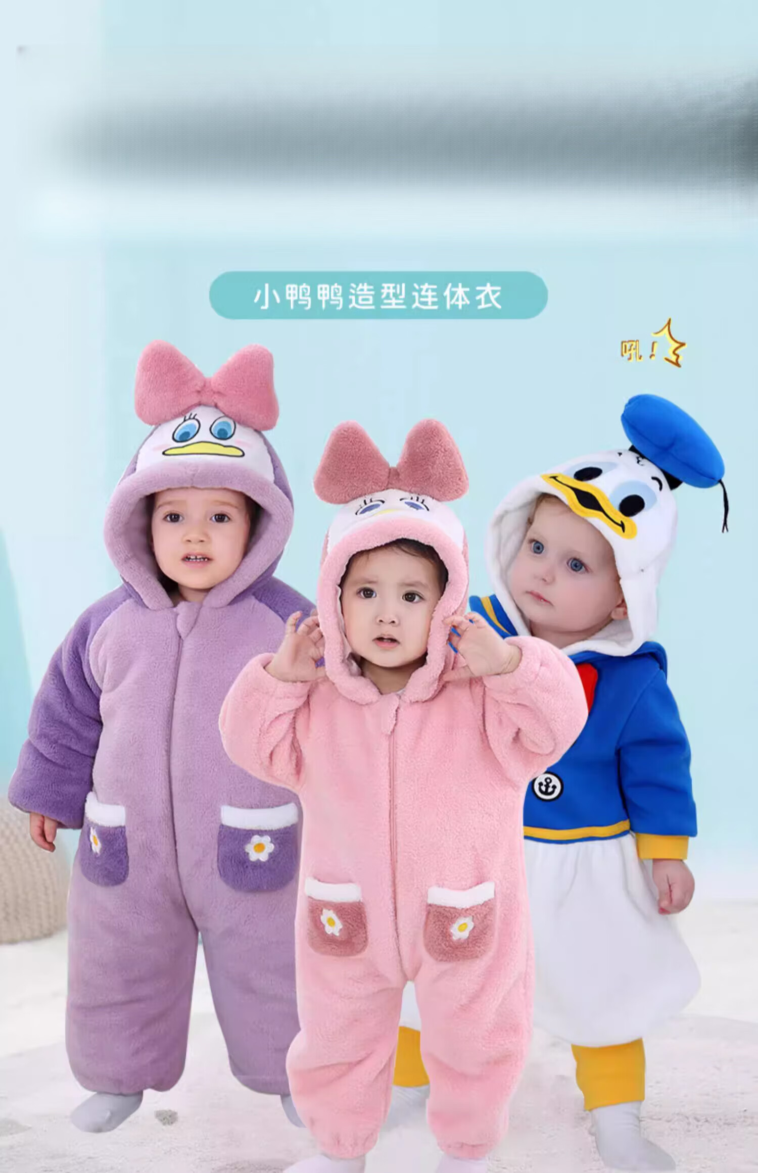 G.duck autumn and winter baby jumpsuit thickened cotton clothes cute baby crawling clothes cute animal home clothes pajamas outing clothes double layer late autumn purple duck 59cm height 52-59cm