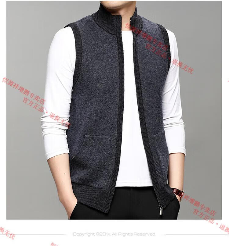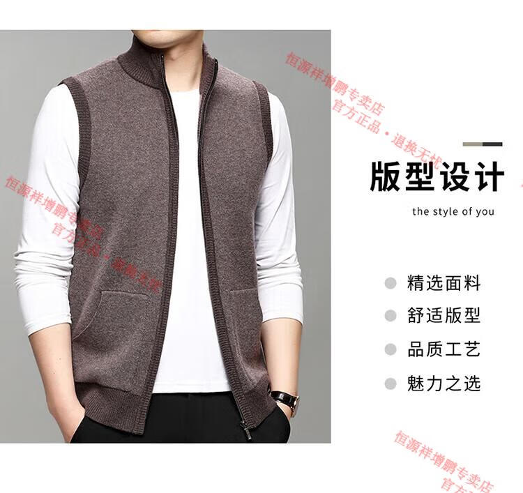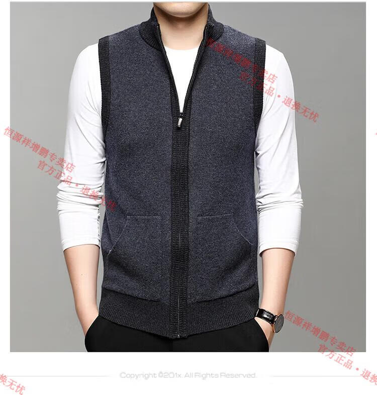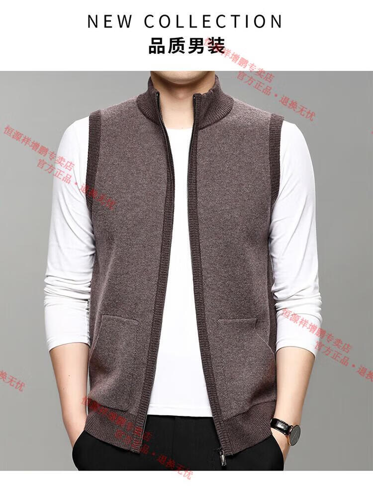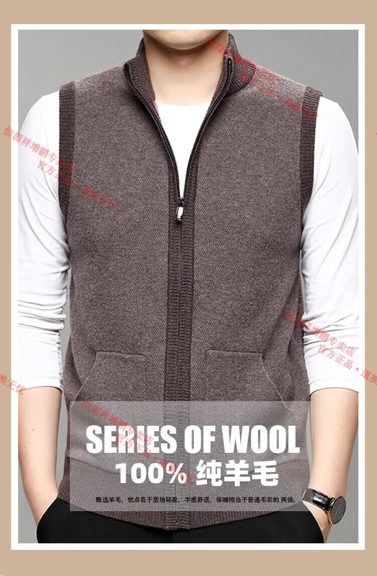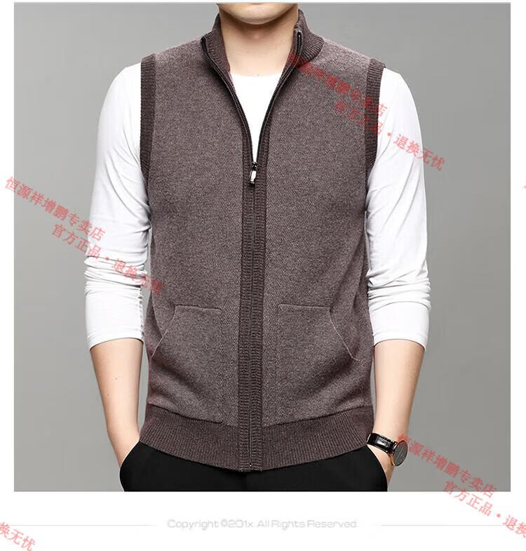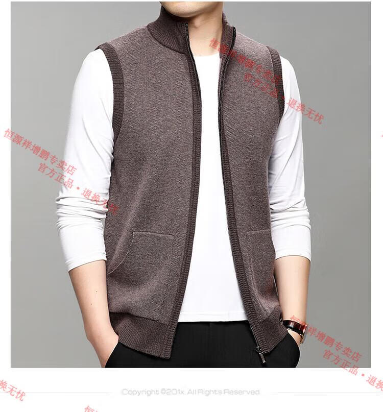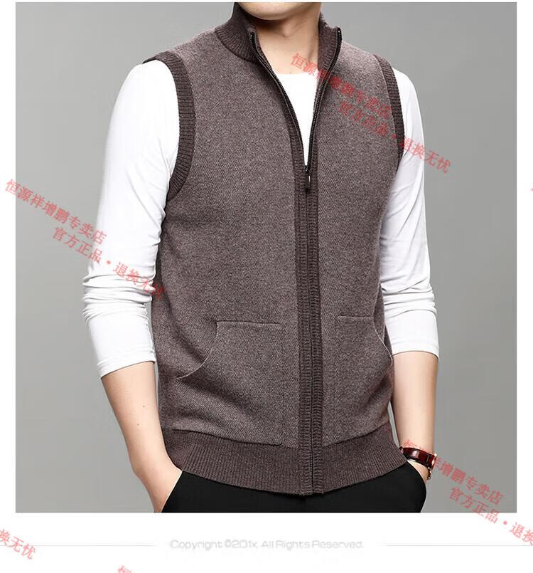 Hengyuanxiang 100% pure wool cardigan vest men's thickened 2025 autumn and winter casual sleeveless zipper outer sweater medium coffee L 175 suitable for 120-140 Jin Jin equals 0.5 kg
