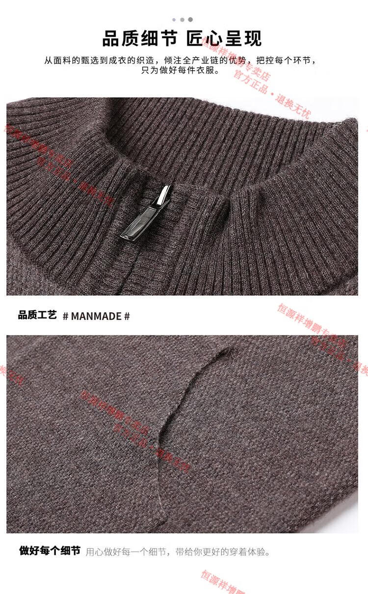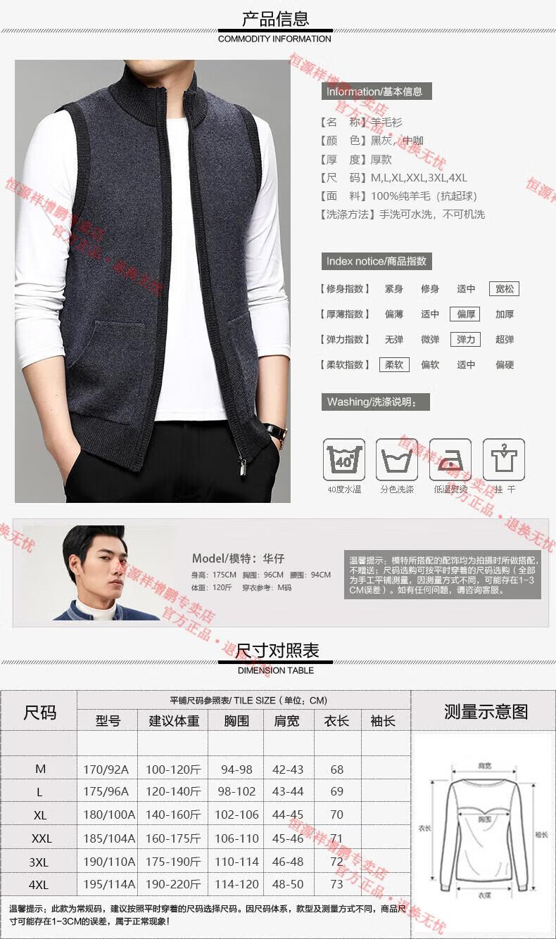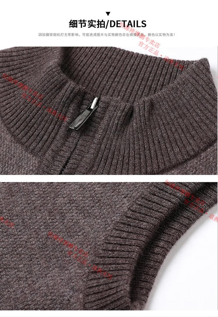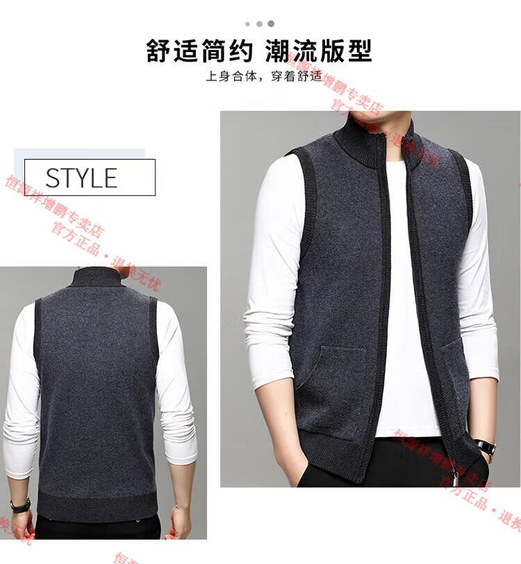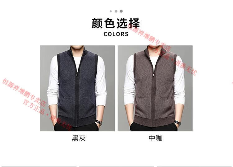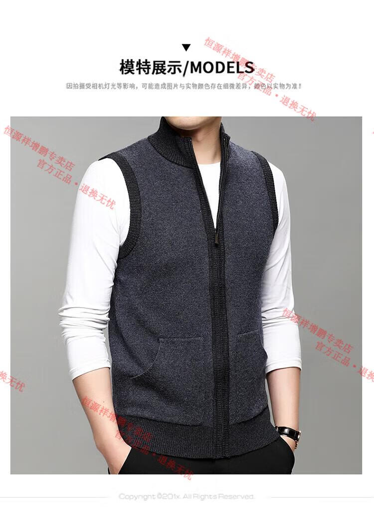 Hengyuanxiang 100% pure wool cardigan vest men's thickened 2025 autumn and winter casual sleeveless zipper outer sweater medium coffee L 175 suitable for 120-140 Jin Jin equals 0.5 kg