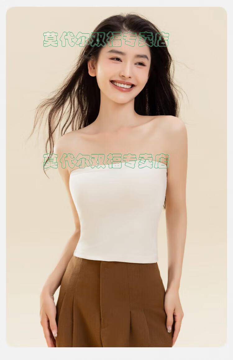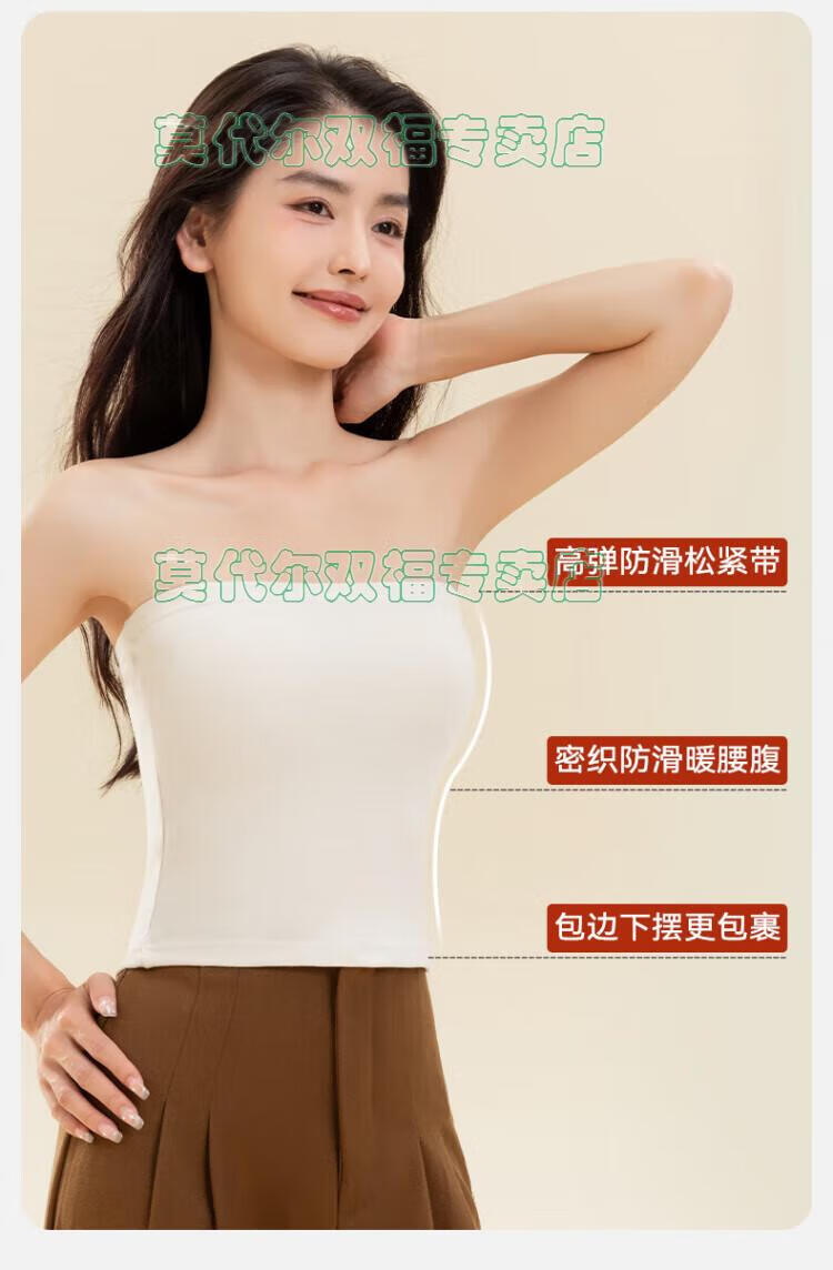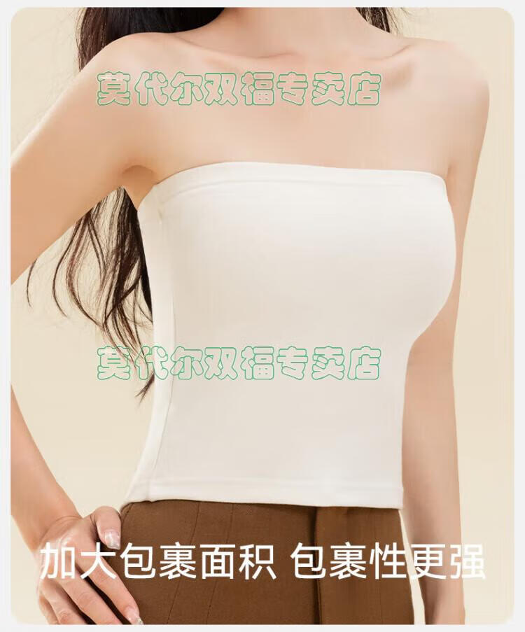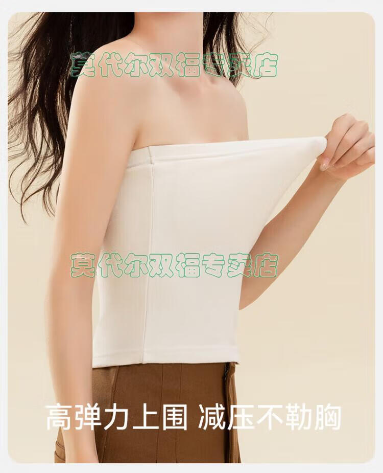 Modal tube top bra for women, strapless off-shoulder wedding dress, vest, warm and velvet thickened, seamless chest-wrapped top, chest pad, cloud white, windproof cashmere + German velvet silk XL 170 (110-135Jin Jin is equal to 0.5kg)