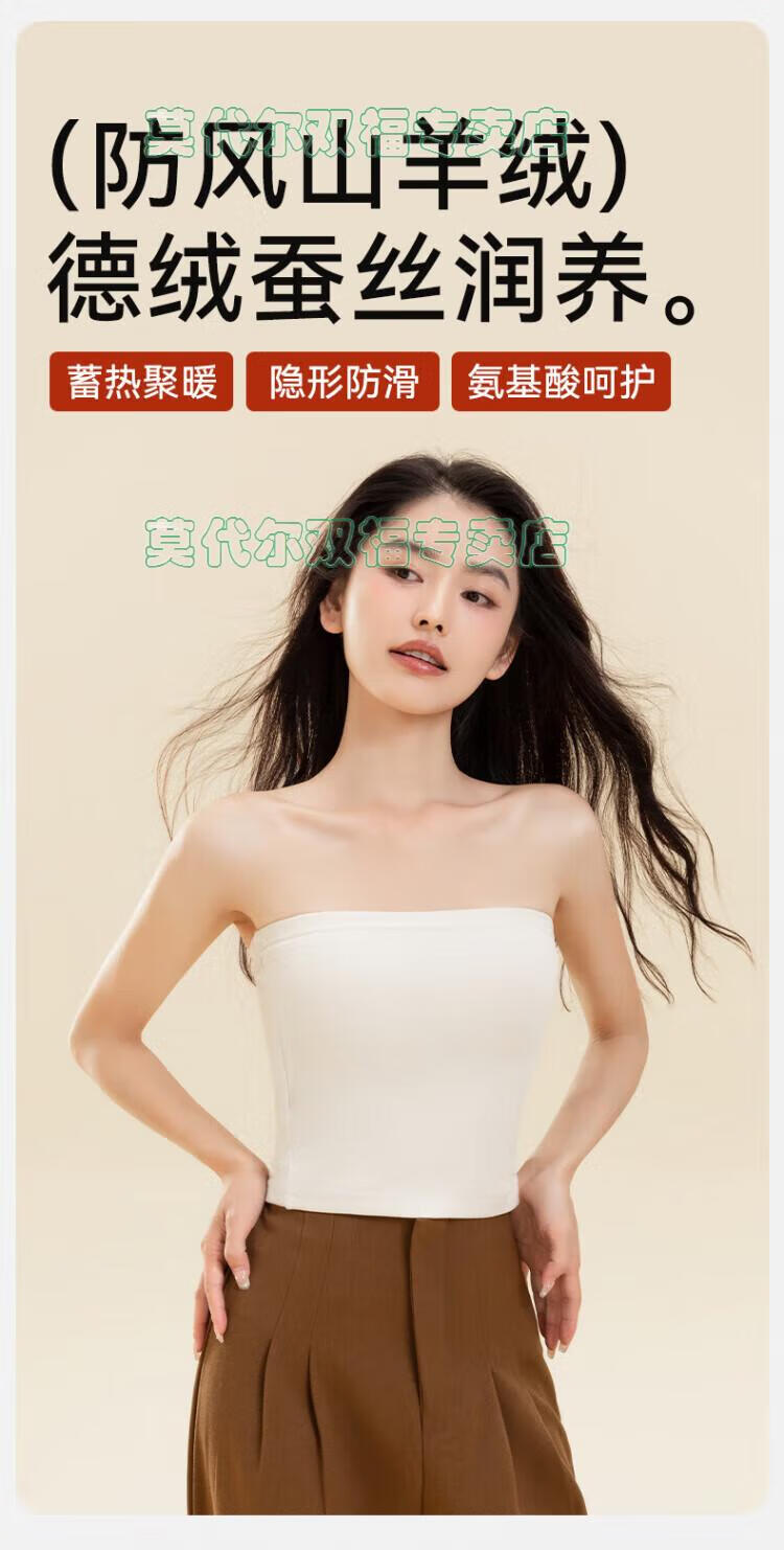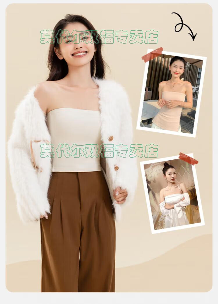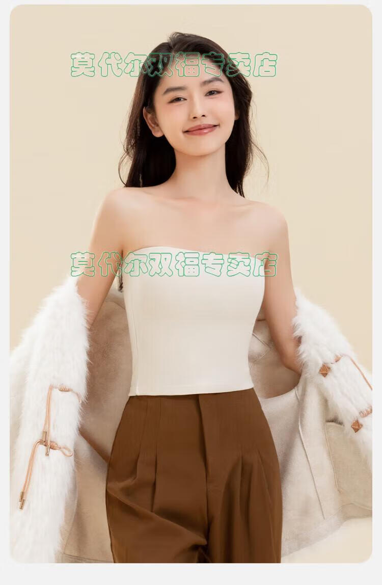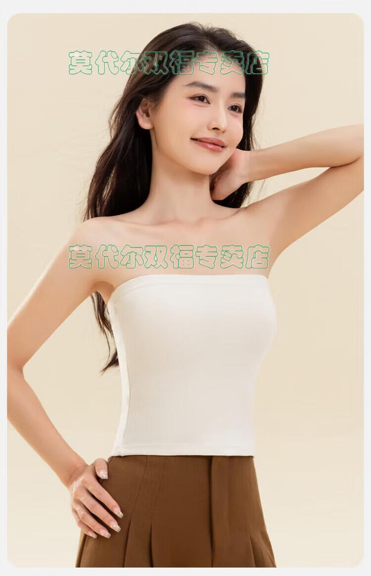 Modal tube top bra for women, strapless off-shoulder wedding dress, vest, warm and velvet thickened, seamless chest-wrapped top, chest pad, cloud white, windproof cashmere + German velvet silk XL 170 (110-135Jin Jin is equal to 0.5kg)