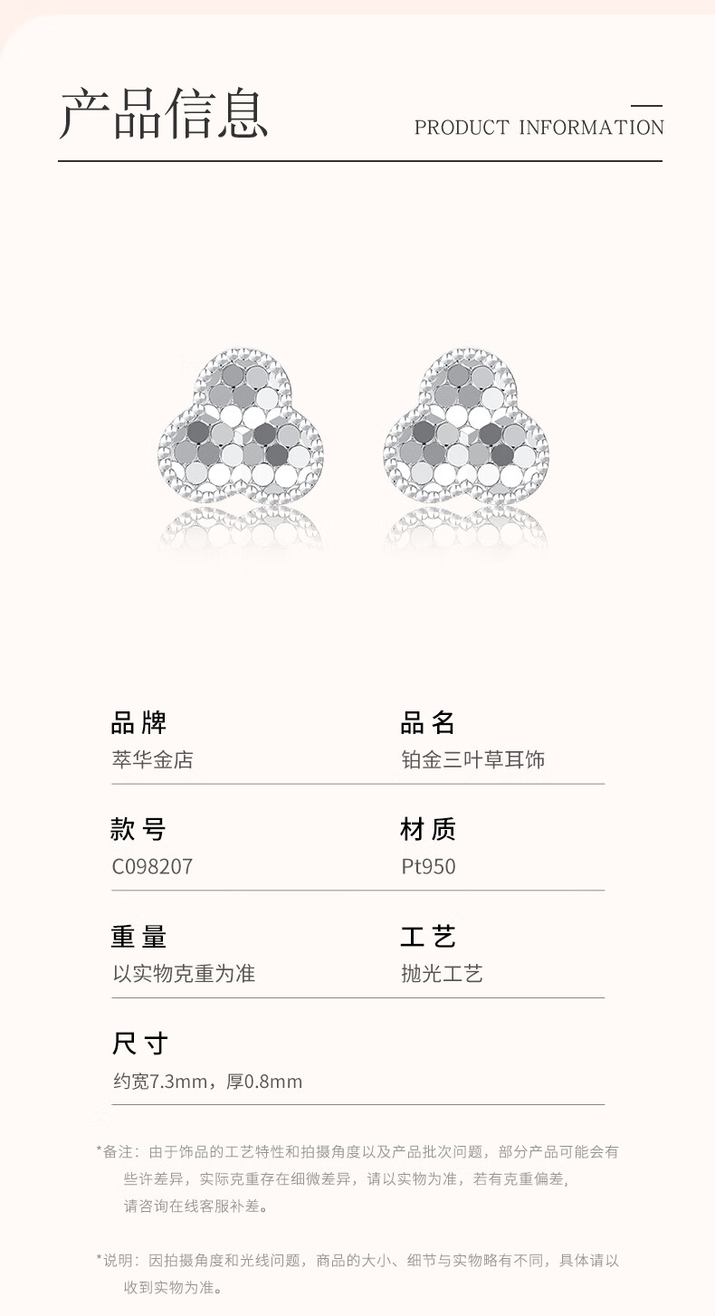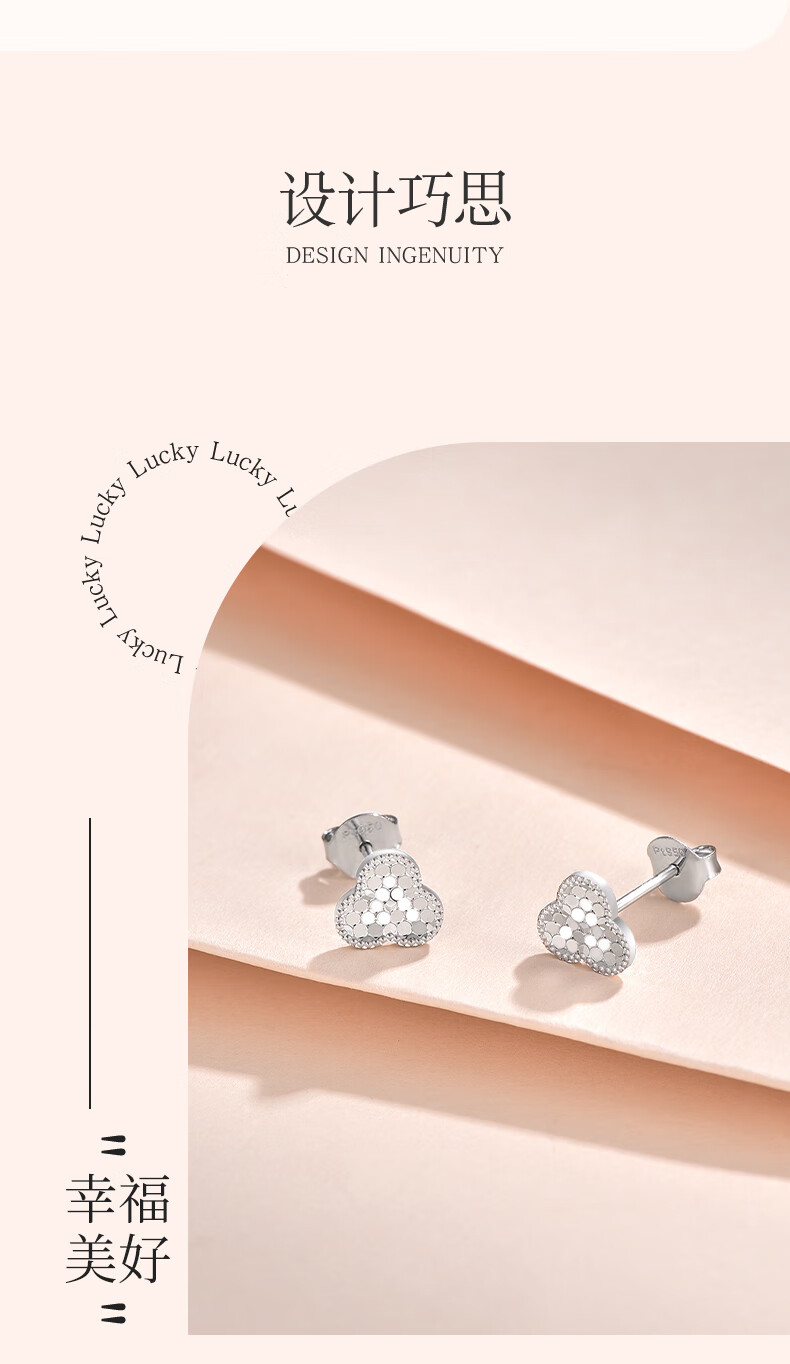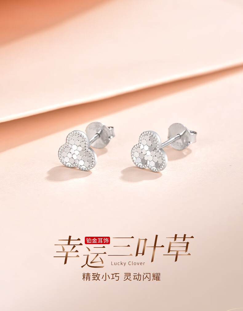 Cuihua pt950 platinum clover earrings simple and fashionable gift for girlfriend and wife birthday anniversary gift women's earrings about 1.7g