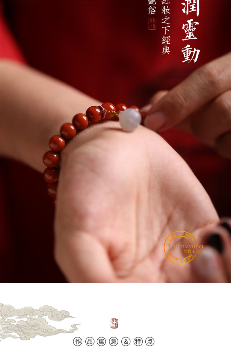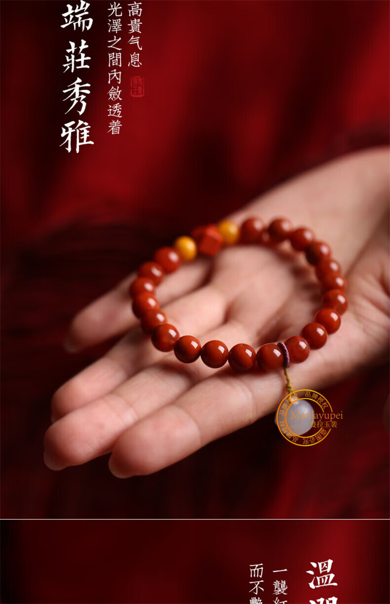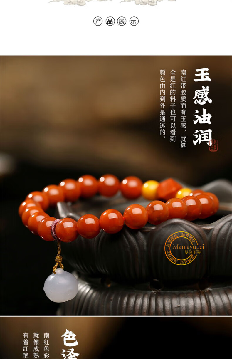 Manla Jade Pei Natural South Red Bracelet Women's Beeswax DIY Smoked Purple Bell Duck Egg Qadeite Single Circle Bracelet Jewelry Huiling Rumeng 8mm