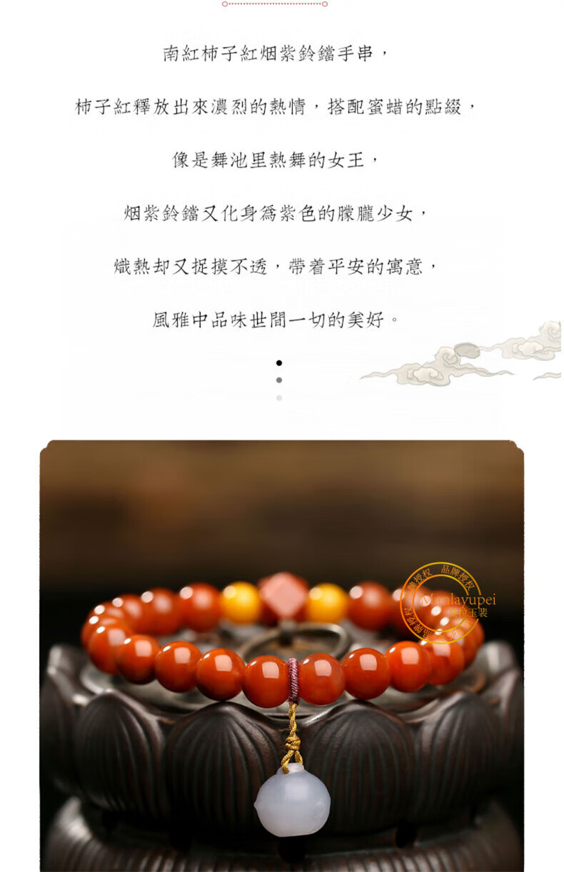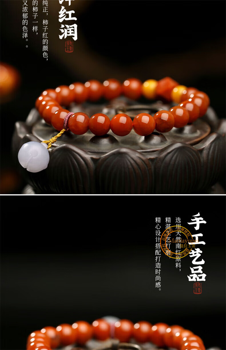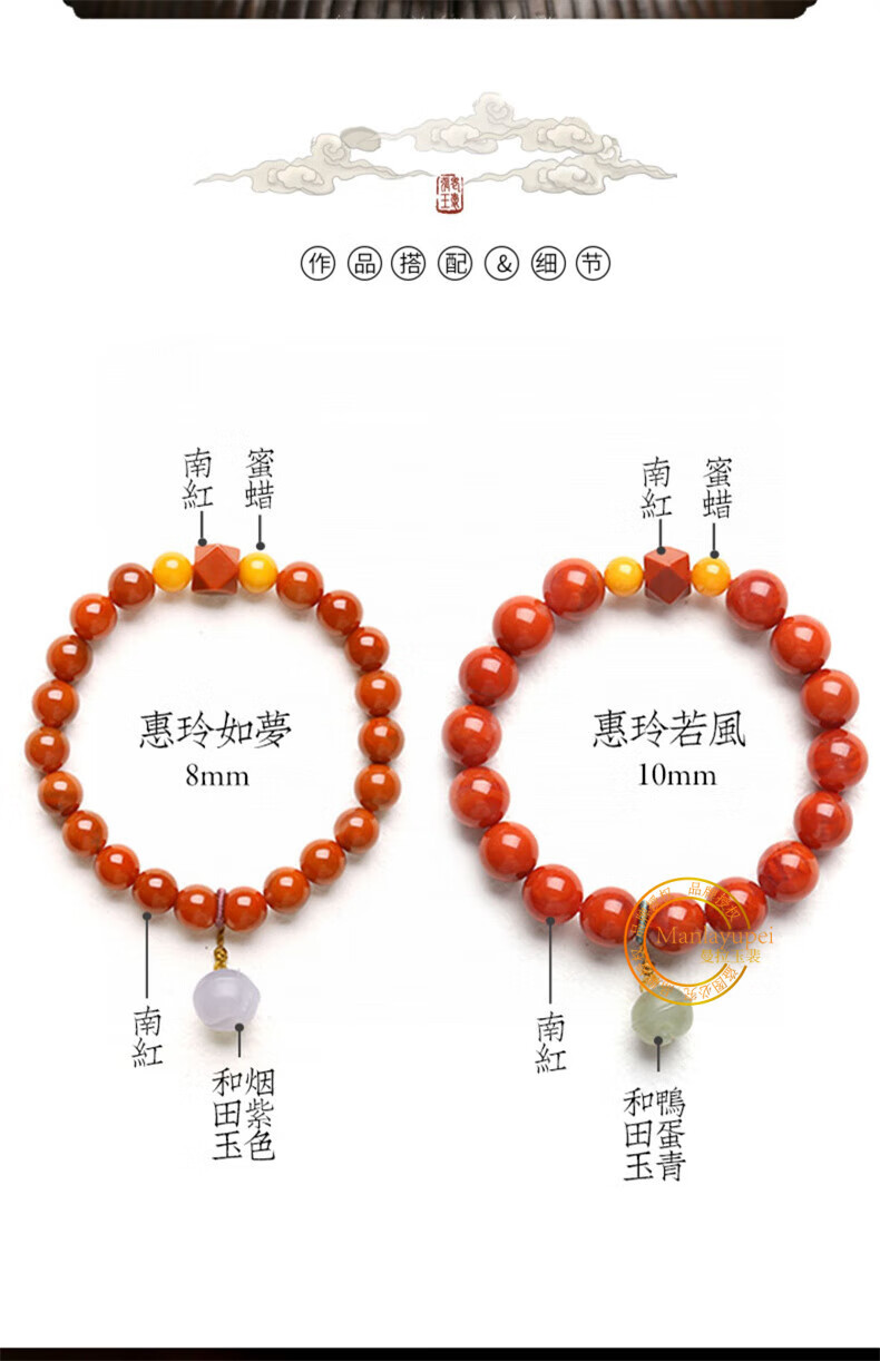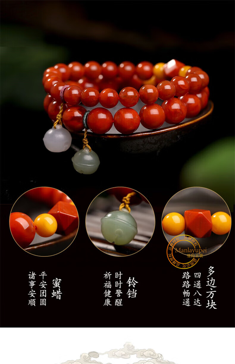 Manla Jade Pei Natural South Red Bracelet Women's Beeswax DIY Smoked Purple Bell Duck Egg Qadeite Single Circle Bracelet Jewelry Huiling Rumeng 8mm