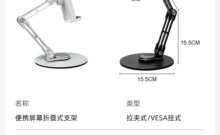 Portable screen stand desktop monitor can lift and rotate horizontal and vertical screen 16-inch 18 secondary screen dual screen base double-arm black rotating base pull-clip type mobile phone
