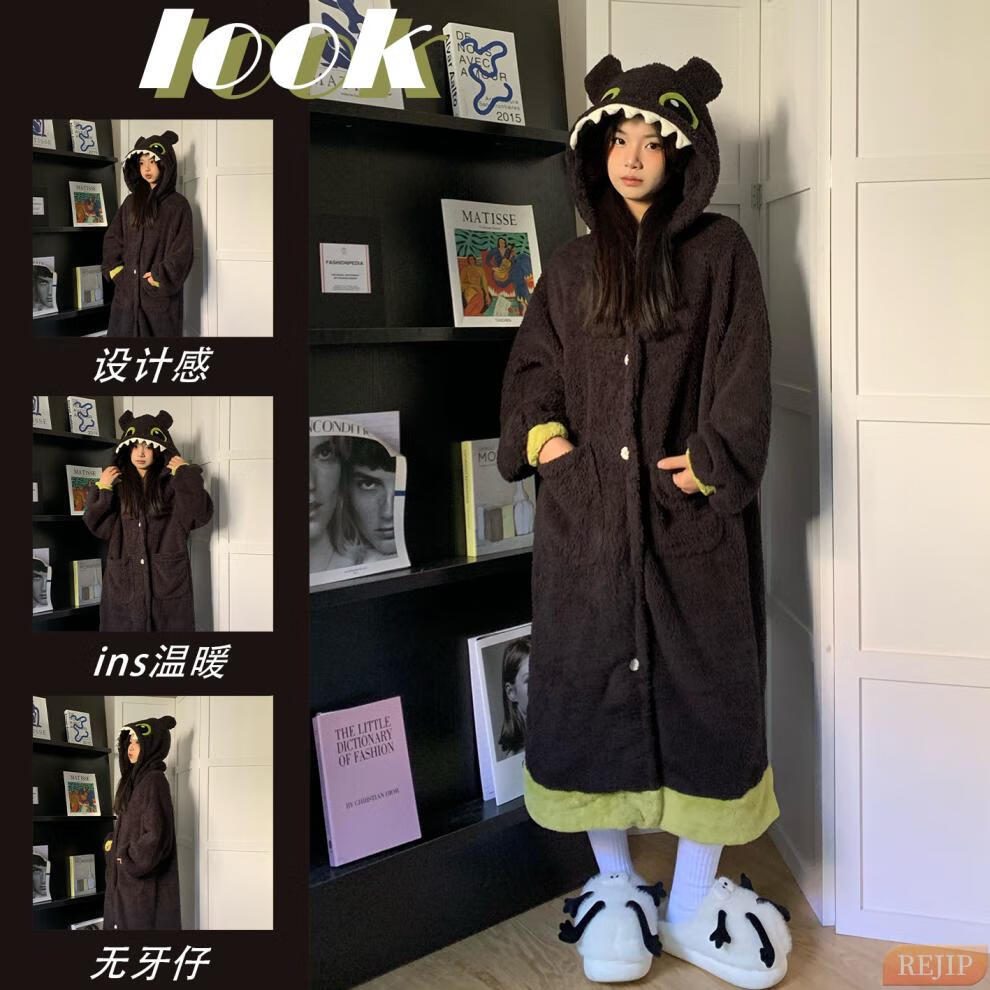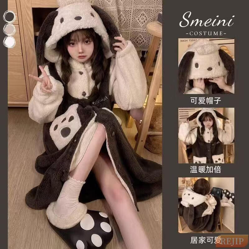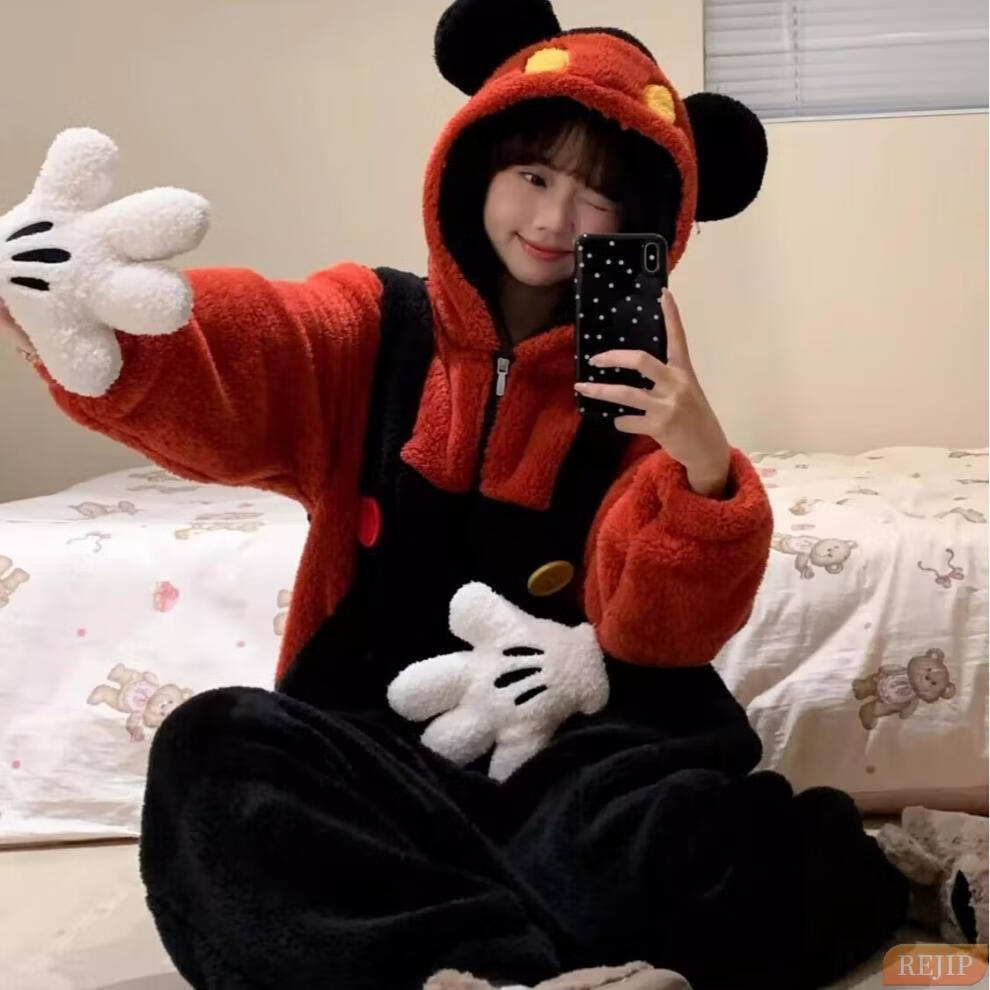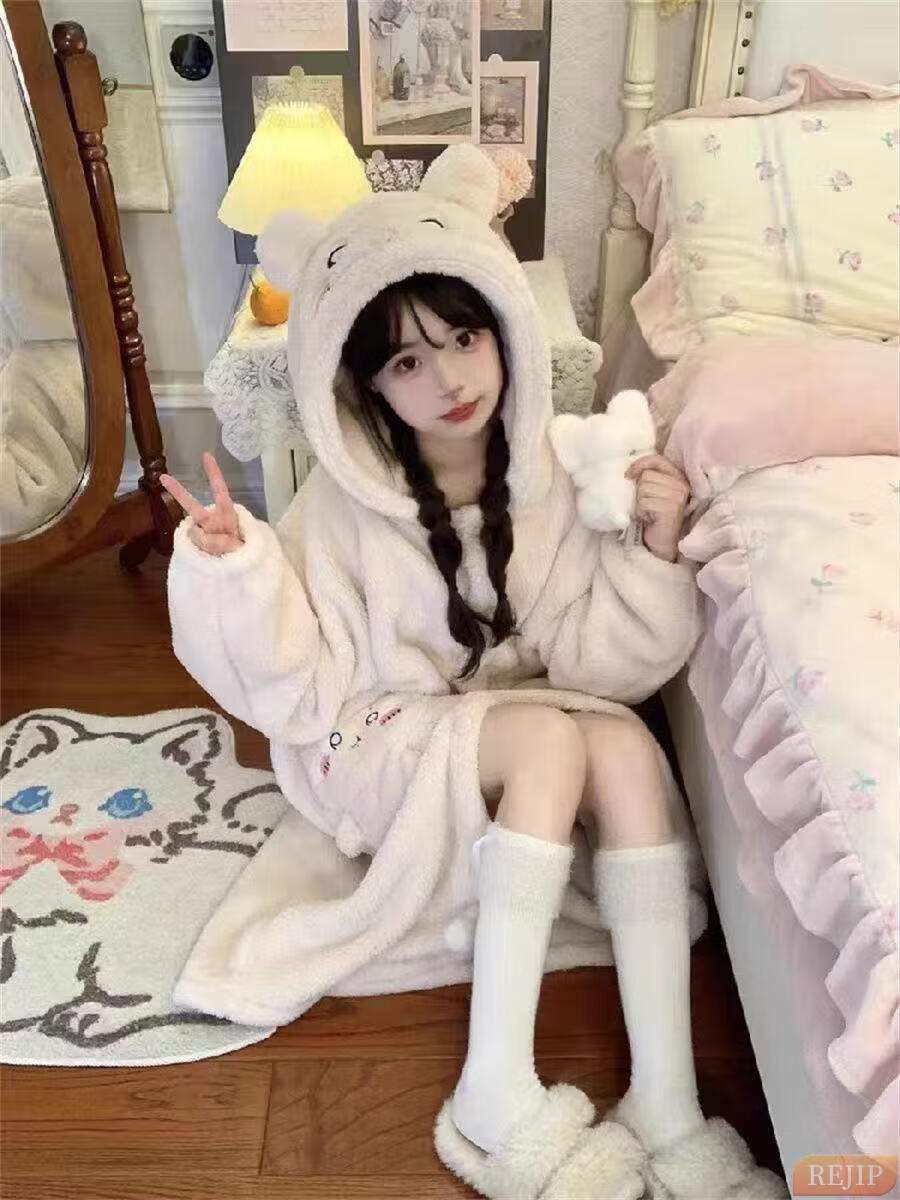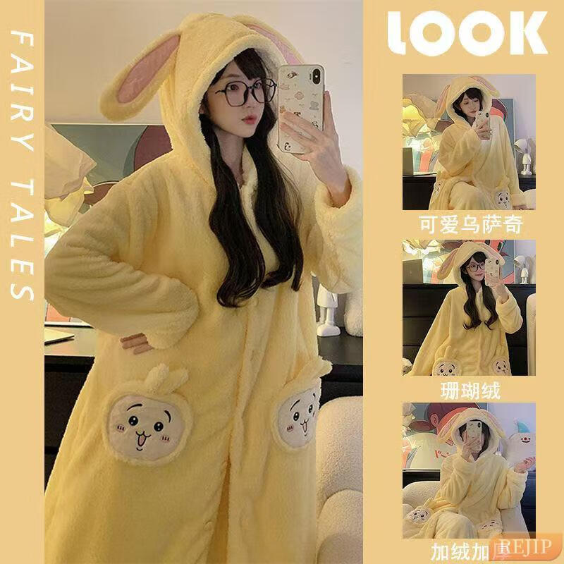 REJIP Pajamas for Women in Autumn and Winter Cute Cartoon Coral Velvet New Thickened Plush Nightgown Dress One-piece Home Clothes Outerwear Men's Clown Fish White One-piece Suit S (Recommended weight 80-100 Jin Jin equals 0.5 kg)