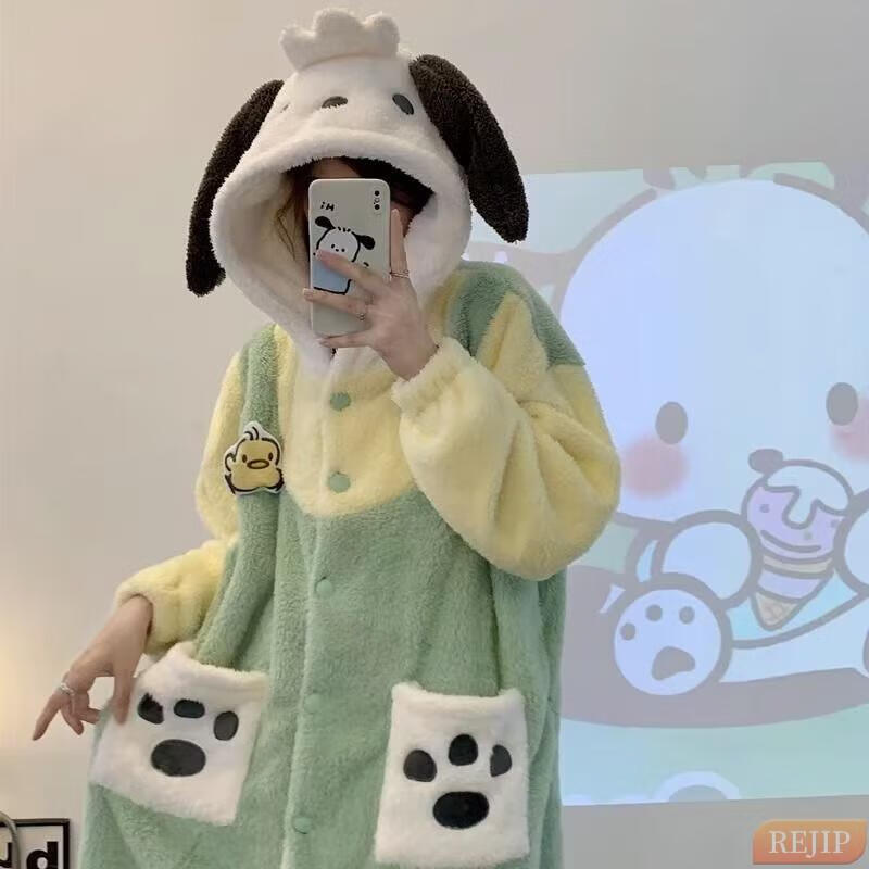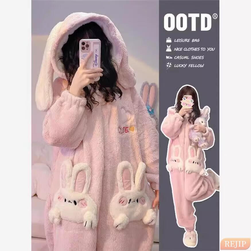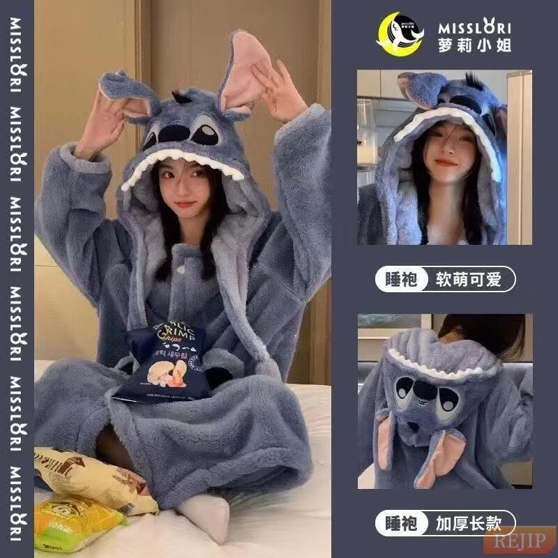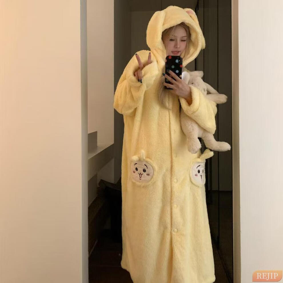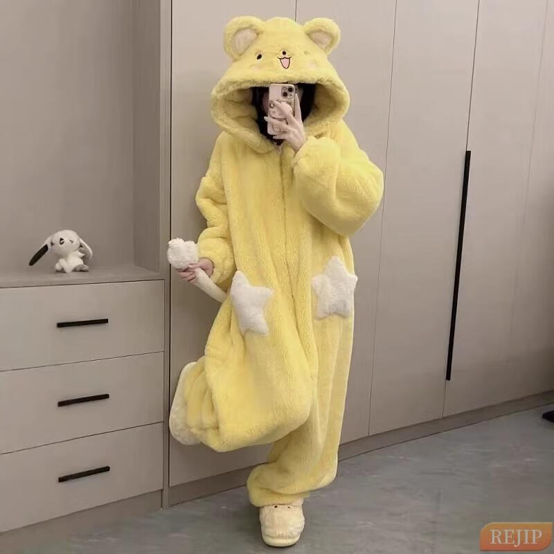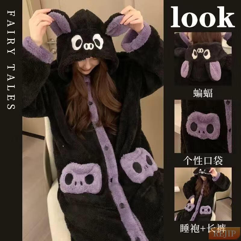 REJIP Pajamas for Women in Autumn and Winter Cute Cartoon Coral Velvet New Thickened Plush Nightgown Dress One-piece Home Clothes Outerwear Men's Clown Fish White One-piece Suit S (Recommended weight 80-100 Jin Jin equals 0.5 kg)