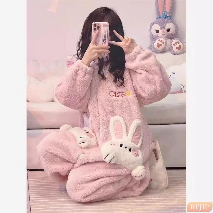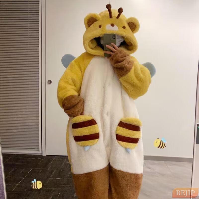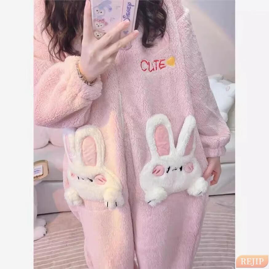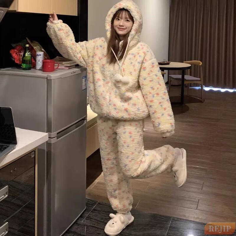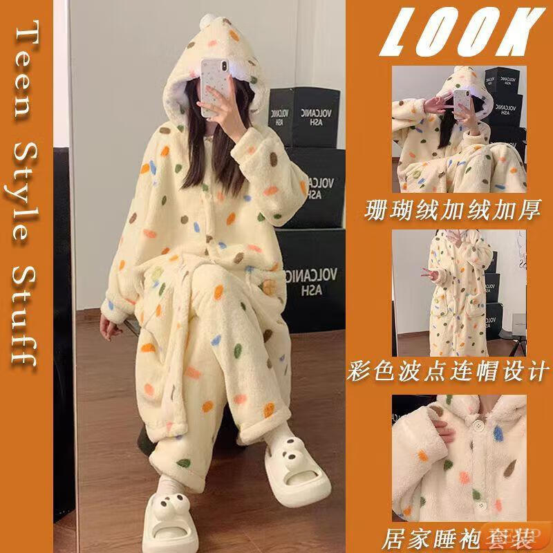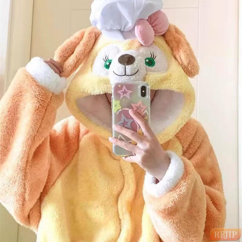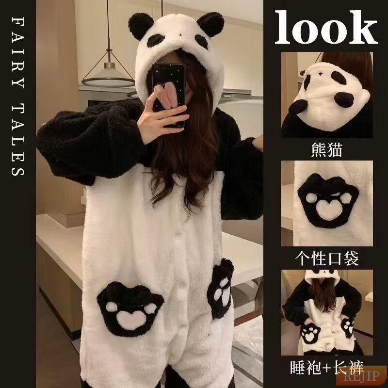 REJIP Pajamas for Women in Autumn and Winter Cute Cartoon Coral Velvet New Thickened Plush Nightgown Dress One-piece Home Clothes Outerwear Men's Clown Fish White One-piece Suit S (Recommended weight 80-100 Jin Jin equals 0.5 kg)
