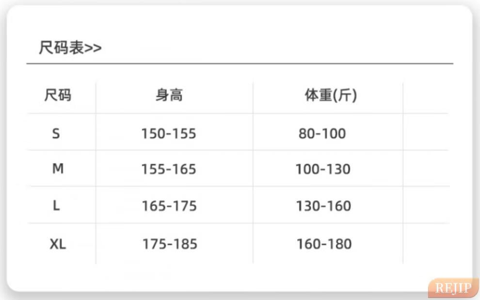 China (cm) 165 / 88-90 170 / 96-98 175 / 108-110 180 / 118-122 185 / 126-130