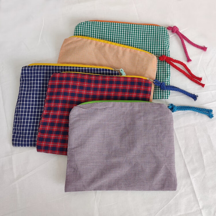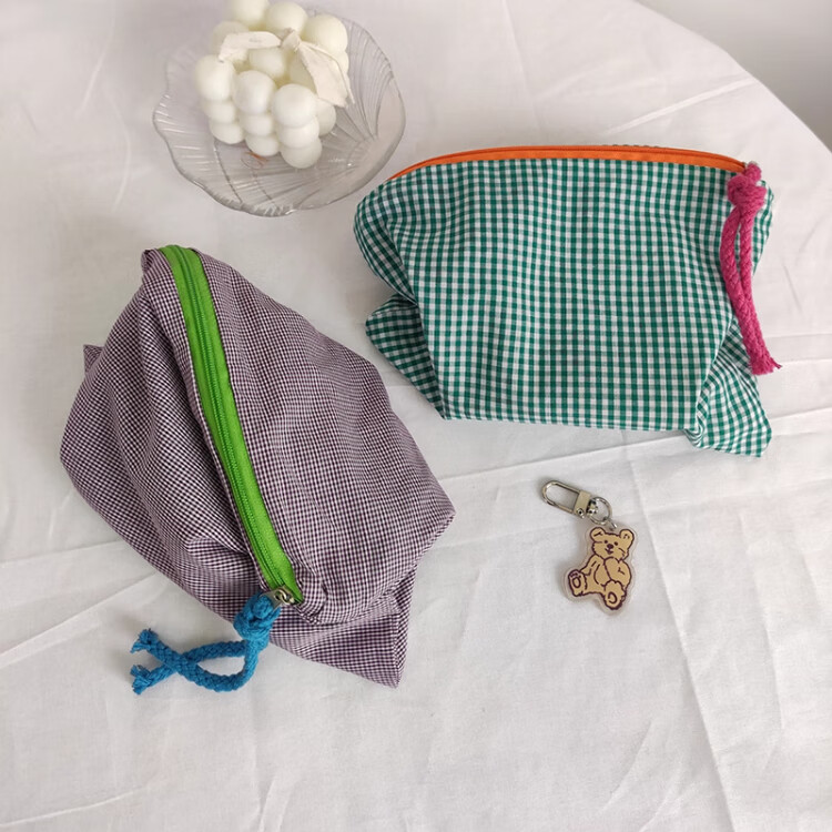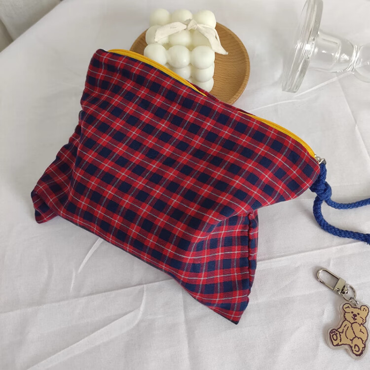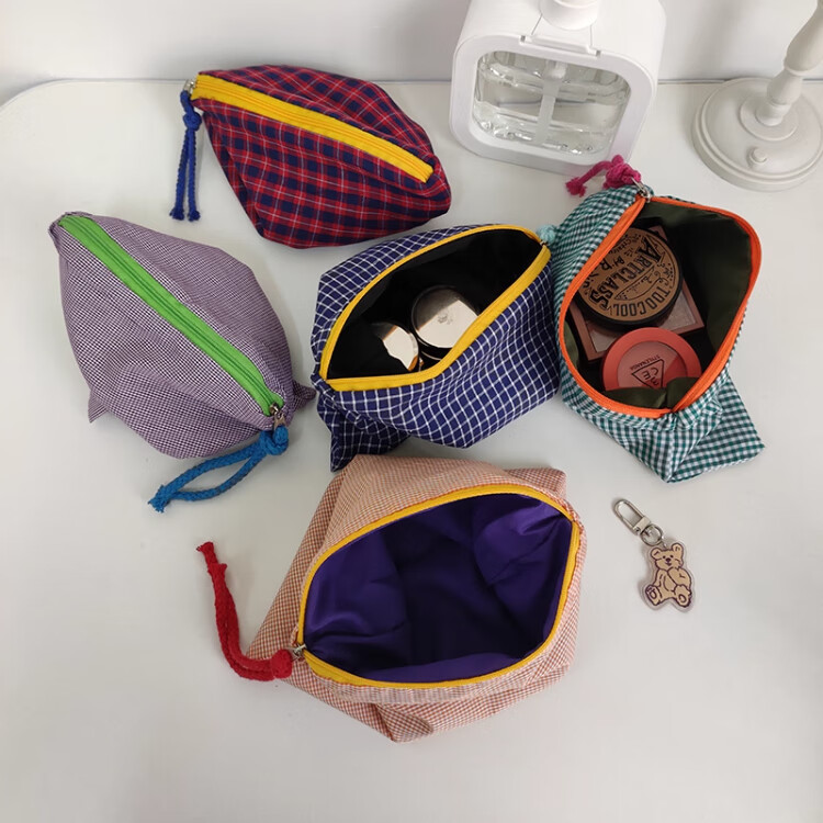 Ins Style Cosmetic Bag Women's Portable Large Capacity 2025 New Travel Cosmetics Sundries Cosmetic Bag Small Toilet Bag Plaid Cosmetic Bag - Pink Plaid - 1