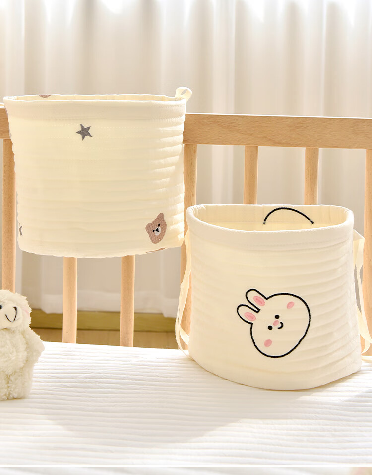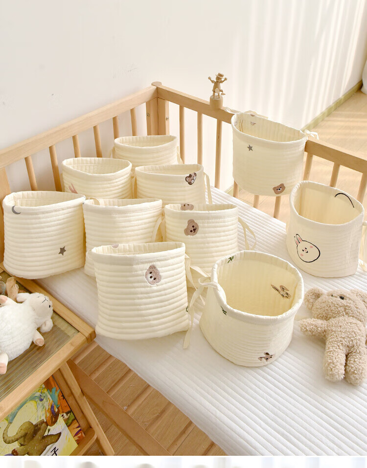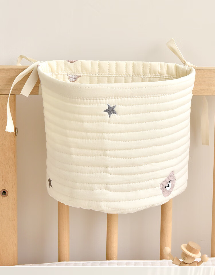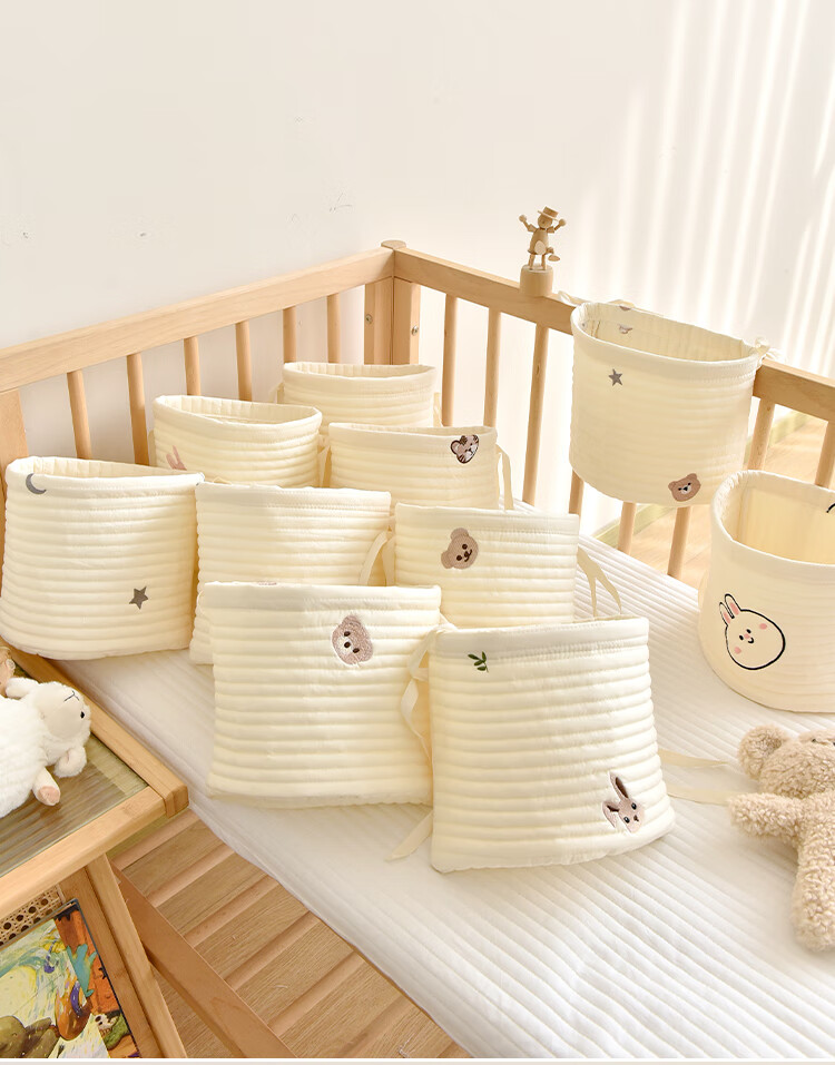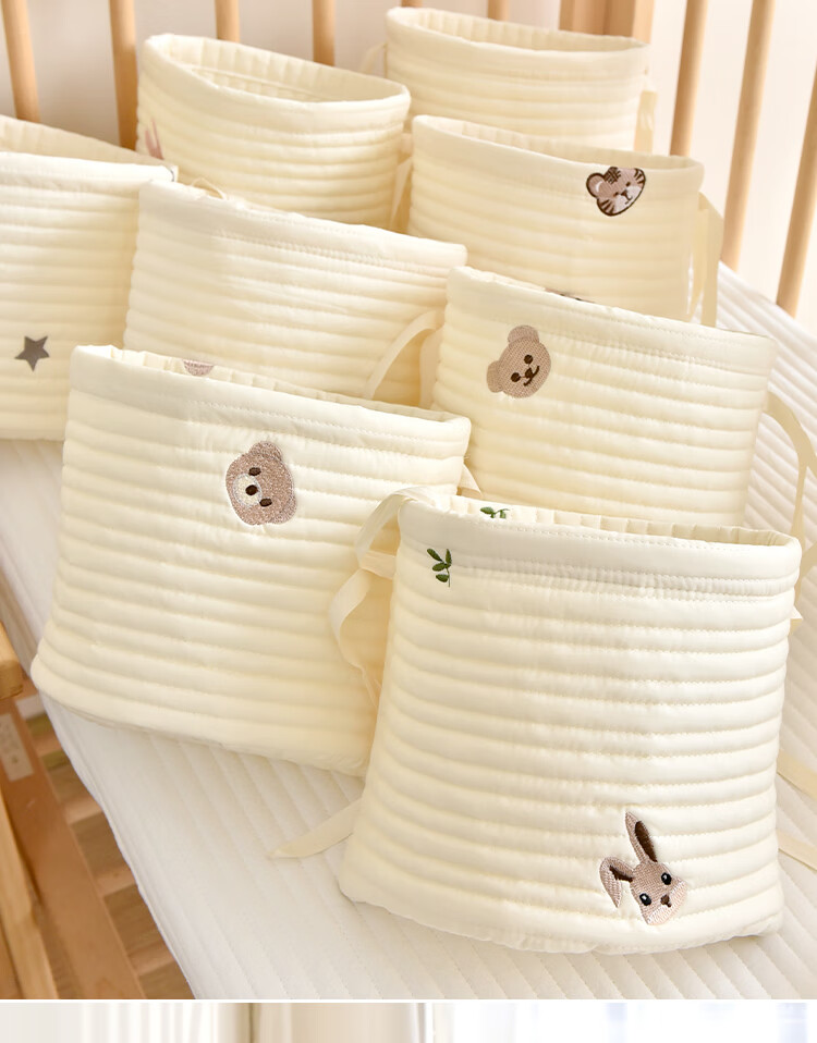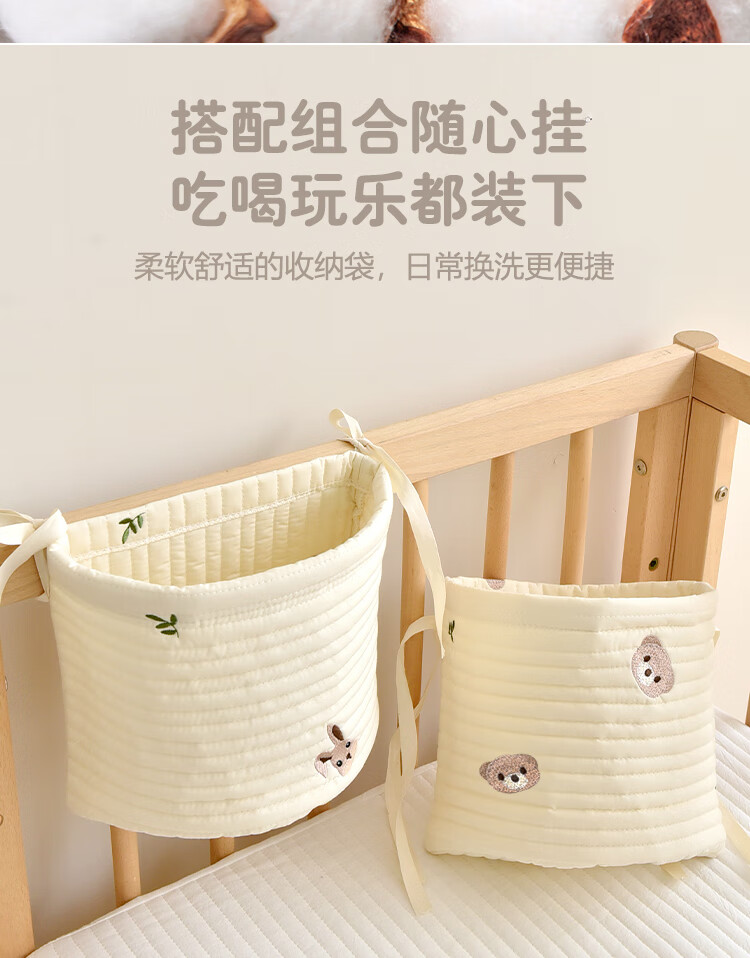 Baby bedside hanging bag, pure cotton baby bed storage bag, diaper storage bag, children's bedside storage bag, mid-base-Xinxiong