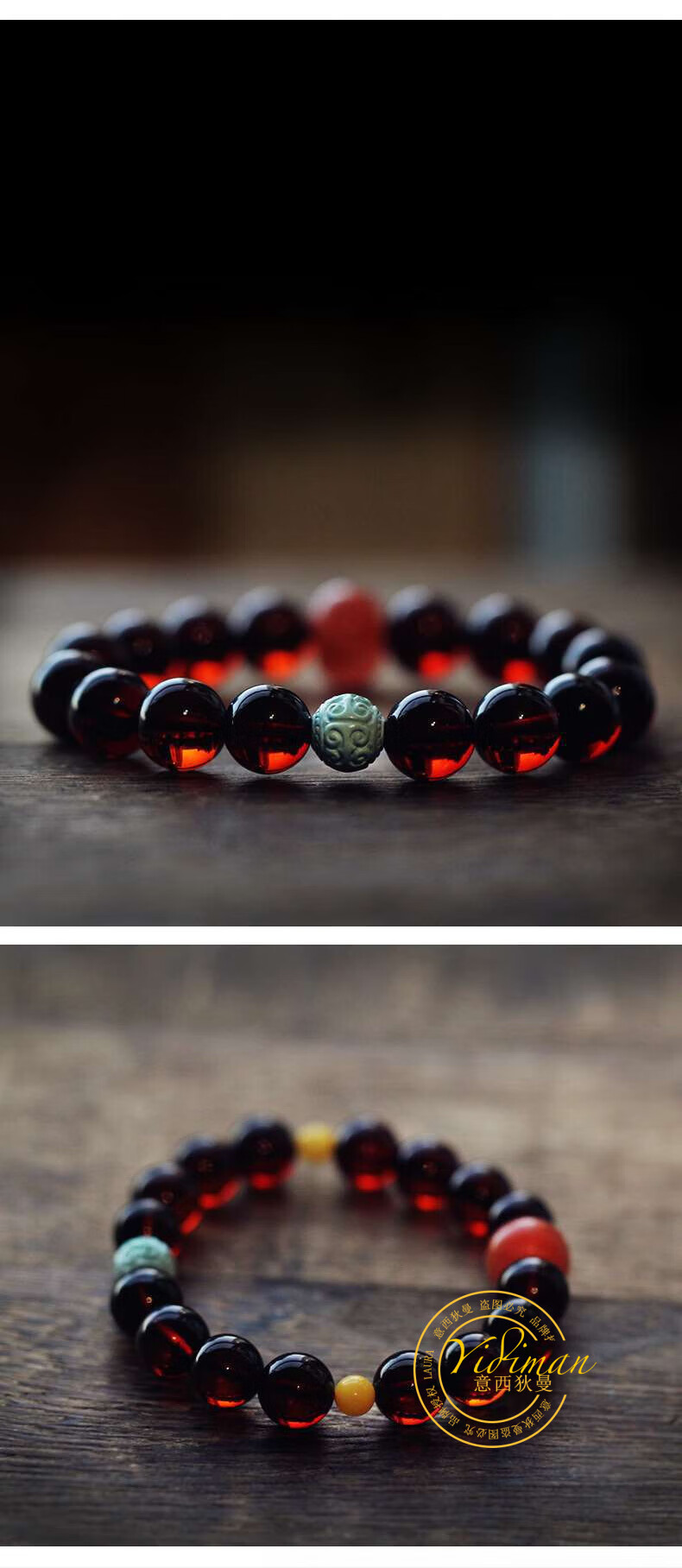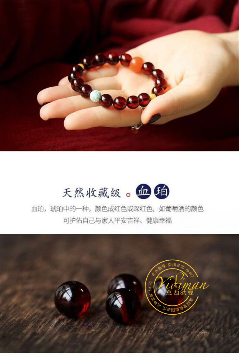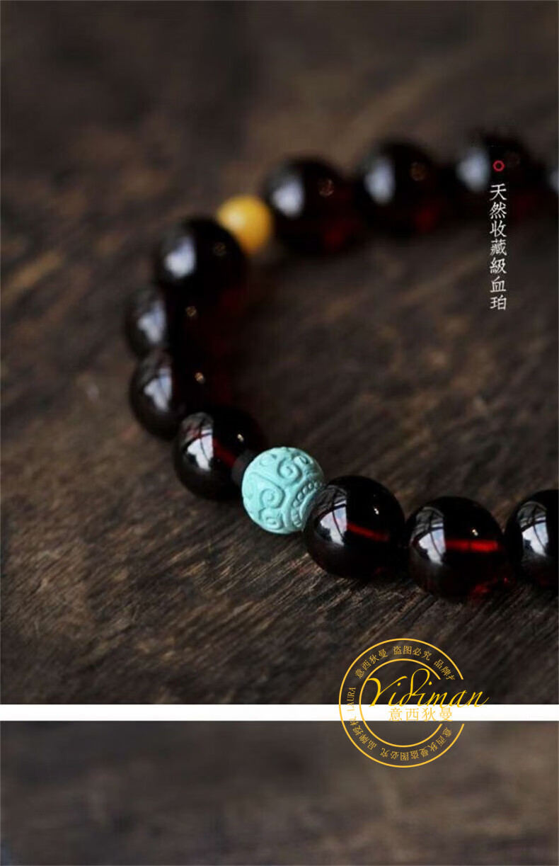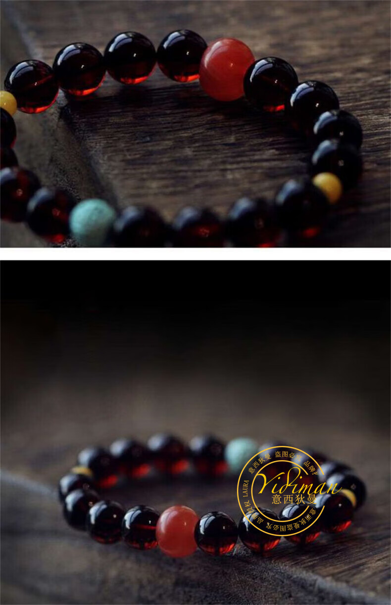 Italy Xidiman Collection Blood Amber Bracelet for Women with Original Mineral Turquoise Pattern Beads Southern Red Spacer Beads Single Circle 10mm