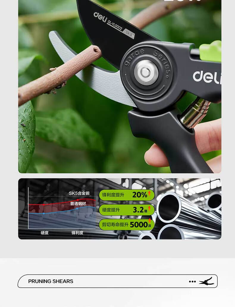 Садовые ножницы Deli, секаторы, ножницы для ветвей, модернизированные ножницы для фруктовых деревьев из стали SK5, артефакт для садовой обрезки, садовые секаторы, модернизированные, заточенные на 20 8 дюймов