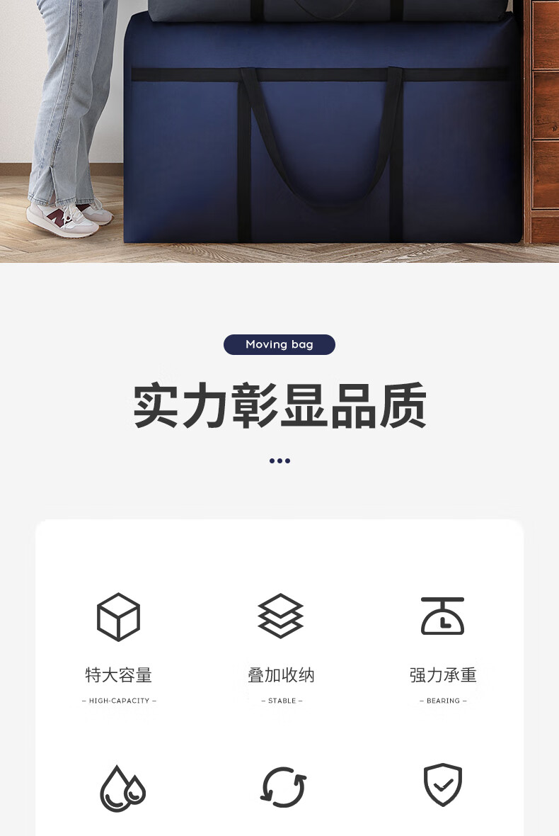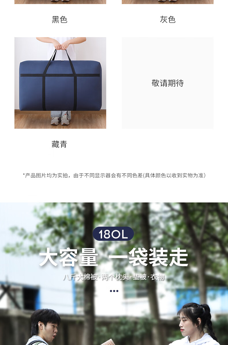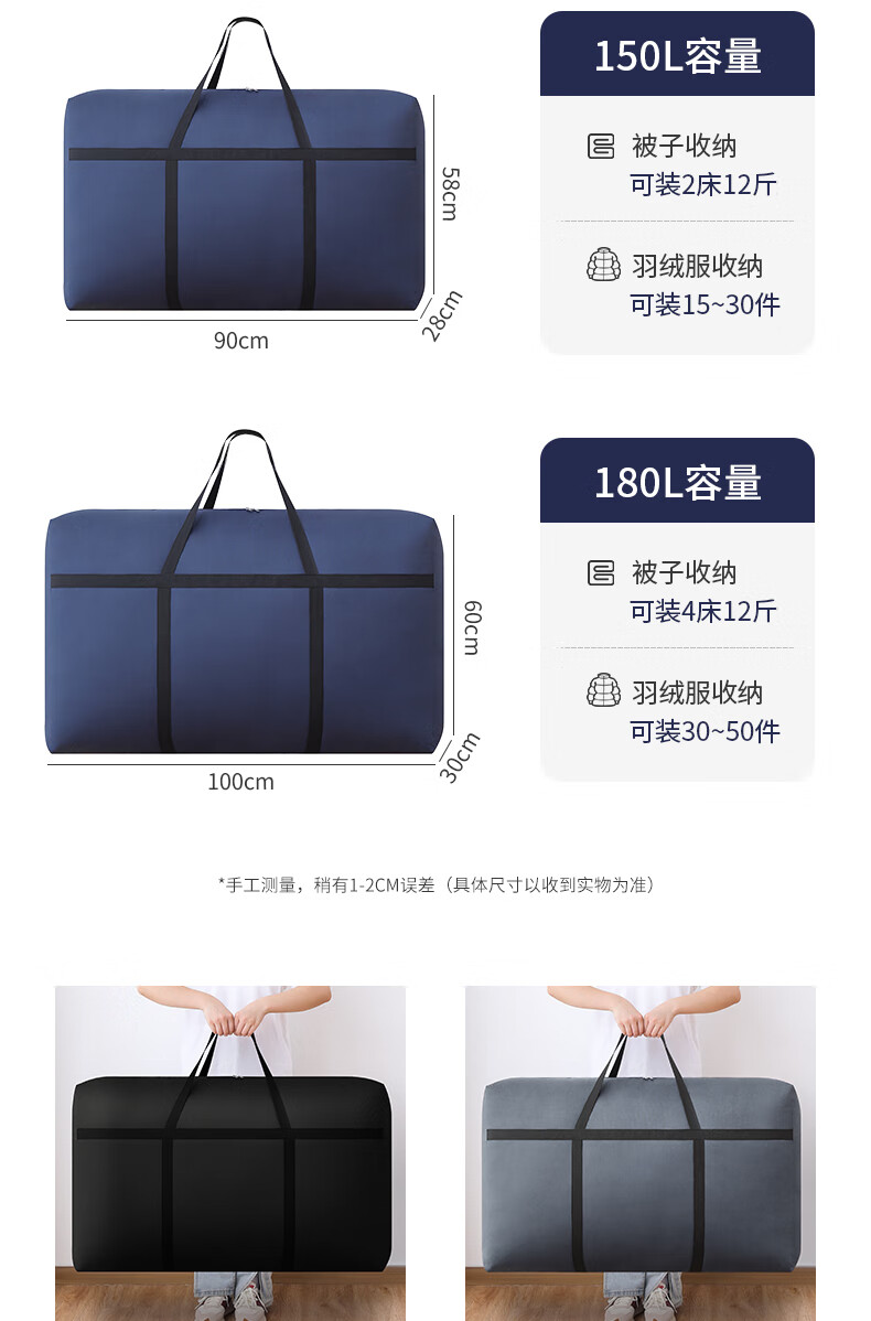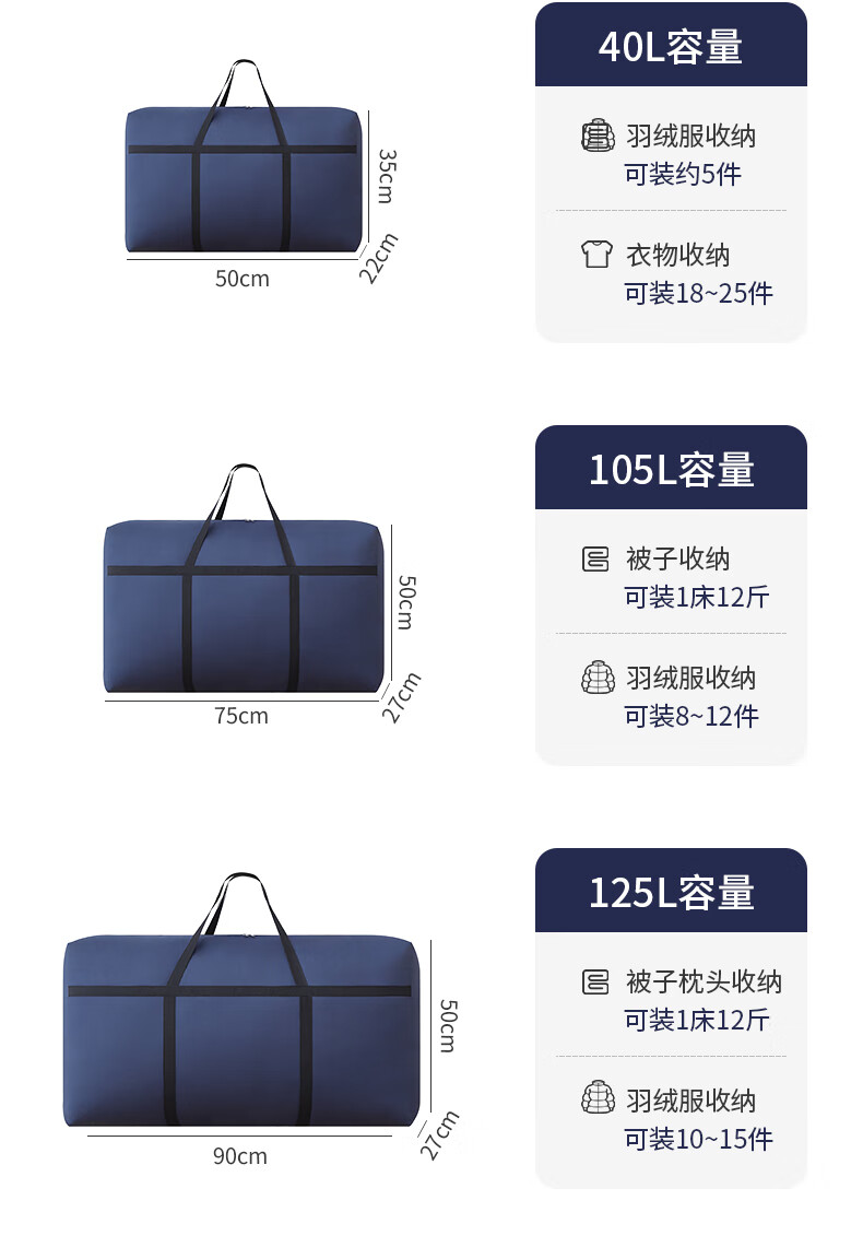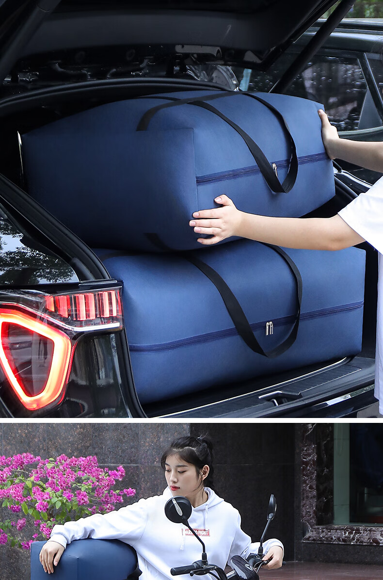 Quilt storage bag Oxford cloth extra large capacity waterproof student luggage bag moving extra large reinforced navy blue-230110*60*35c
