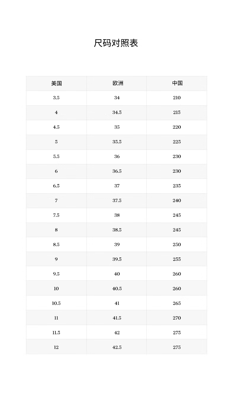 China (cm) 36 - 37 38 - 39 40 - 42 43 - 44 45 - 47