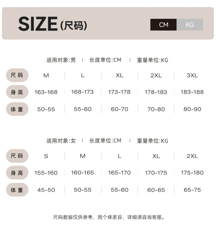 China (cm) 160-165/84-86 165-170 / 88-90 167-172 / 92-96 168-173 / 98-102 170-176 / 106-110