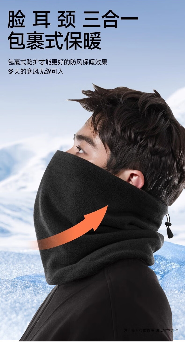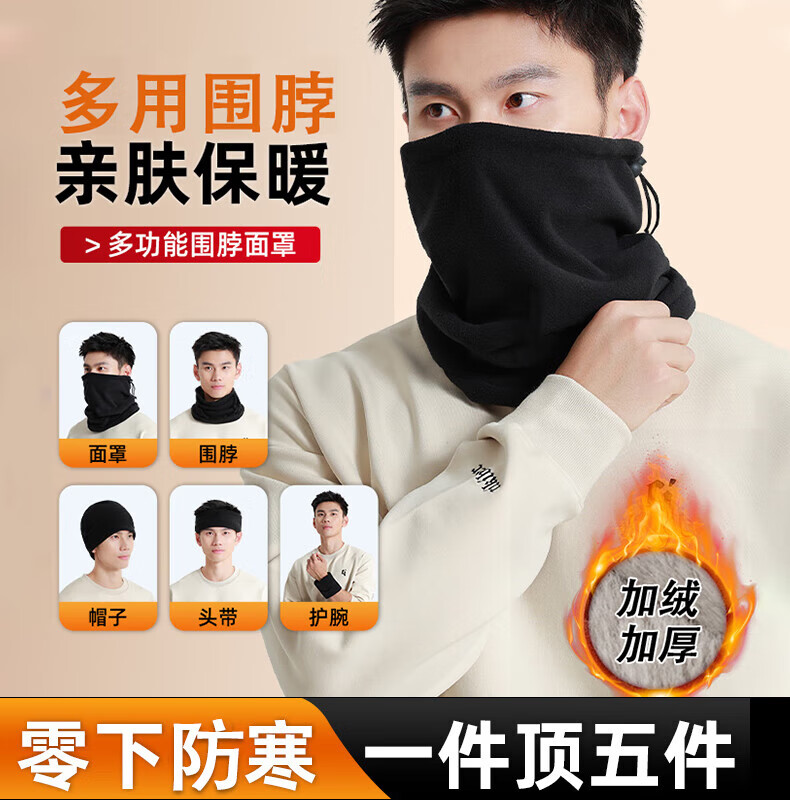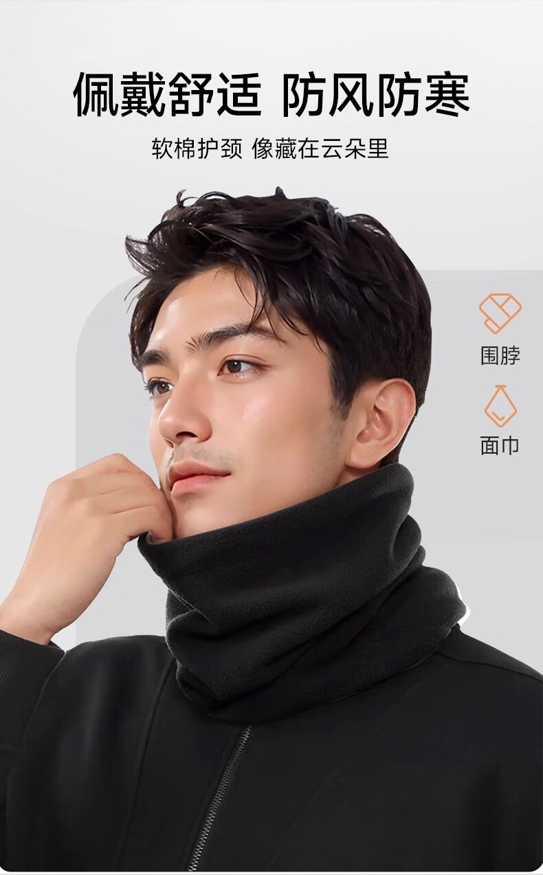 Fikawei special take-out scarf for men in winter plus velvet and thickening for cycling, windproof neck protector, cycling cold protection face mask, black drawstring, adjustable, single scarf
