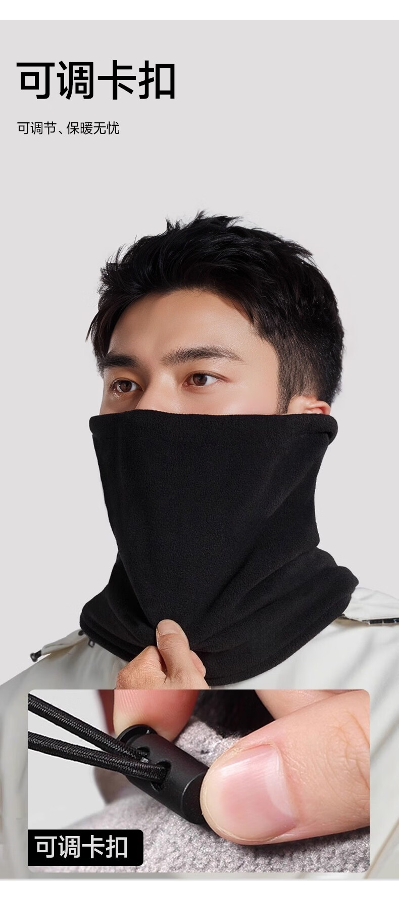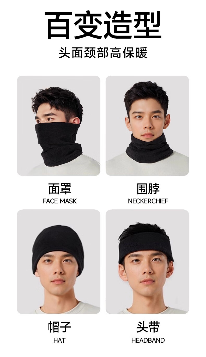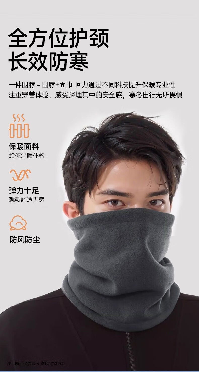 Fikawei special take-out scarf for men in winter plus velvet and thickening for cycling, windproof neck protector, cycling cold protection face mask, black drawstring, adjustable, single scarf