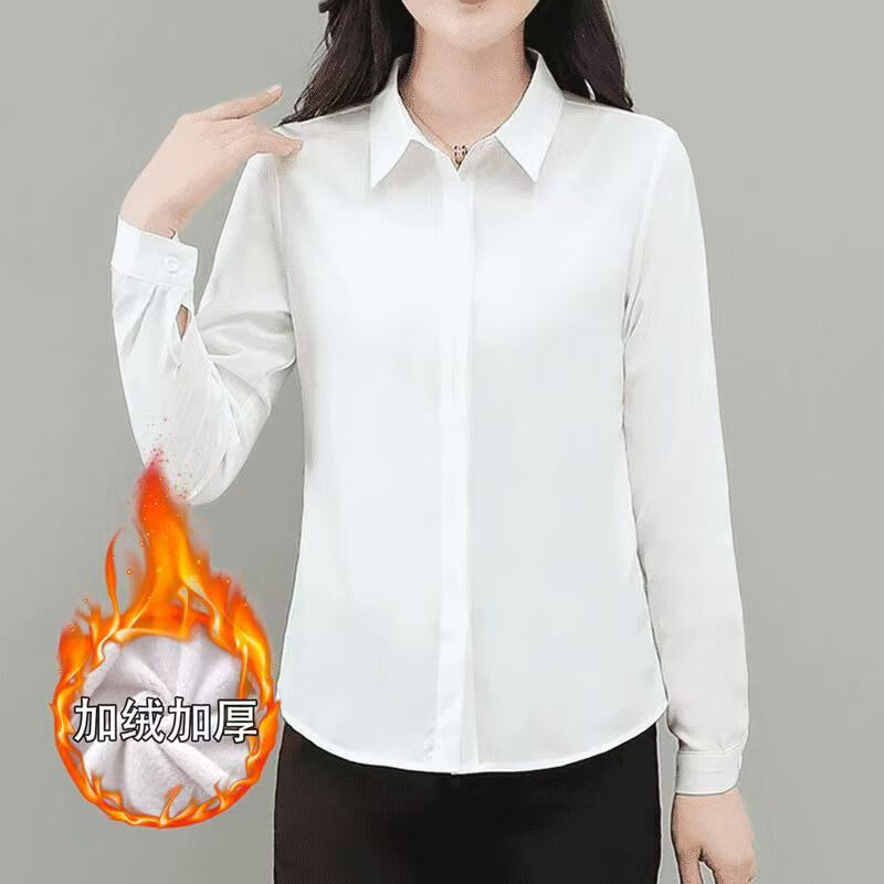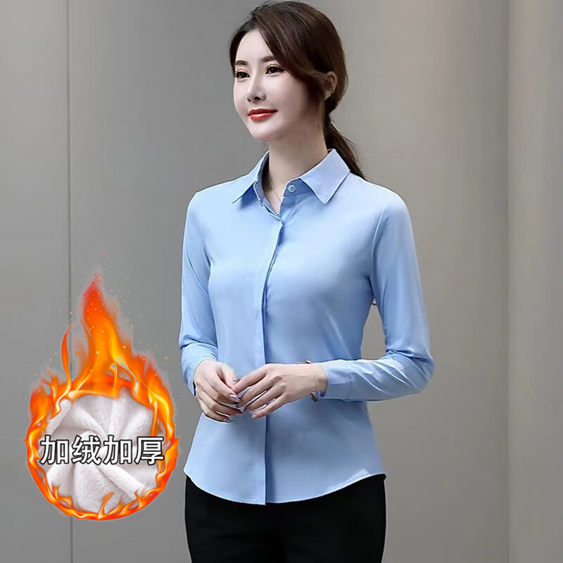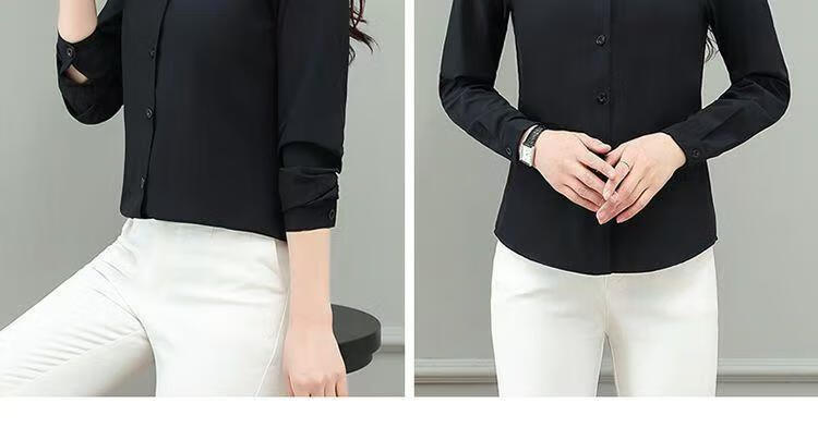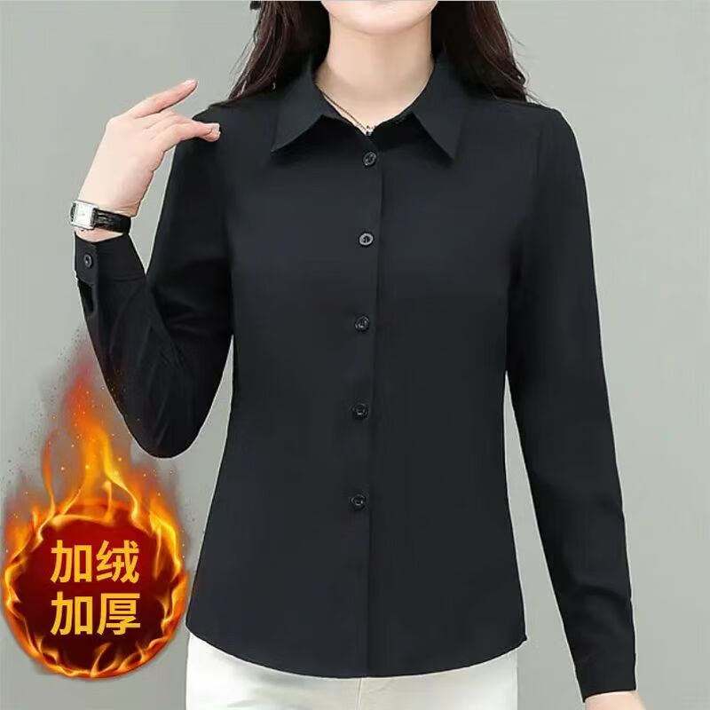Woodpecker Autumn and Winter Plus Velvet Thickened Black Shirt Women's Bottoming Long Sleeve Temperament Slim Fit Versatile Shirt Work Clothes Thin Black (Open Button + Velvet + Thick) Thin S Recommended 70-88 Jin Jin equals 0.5 kg