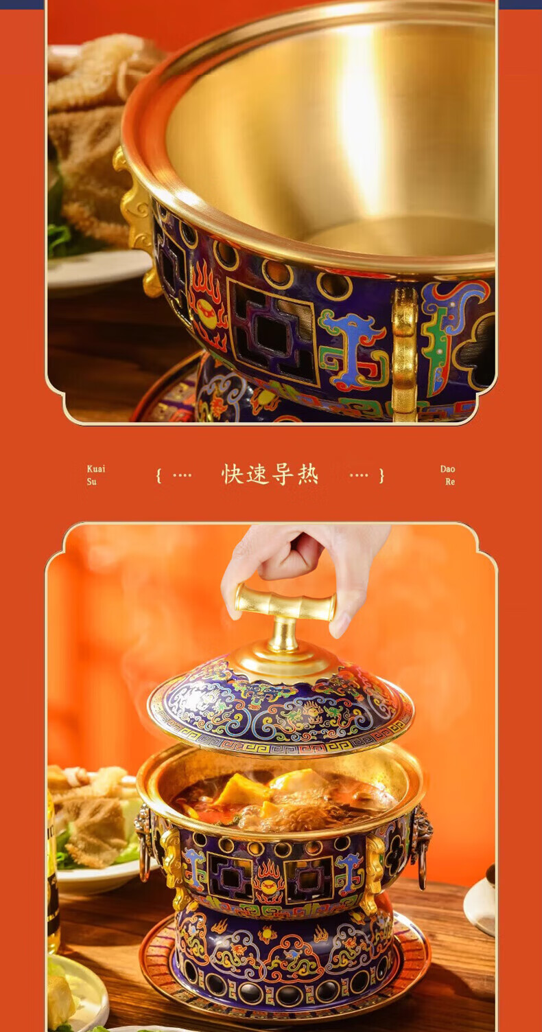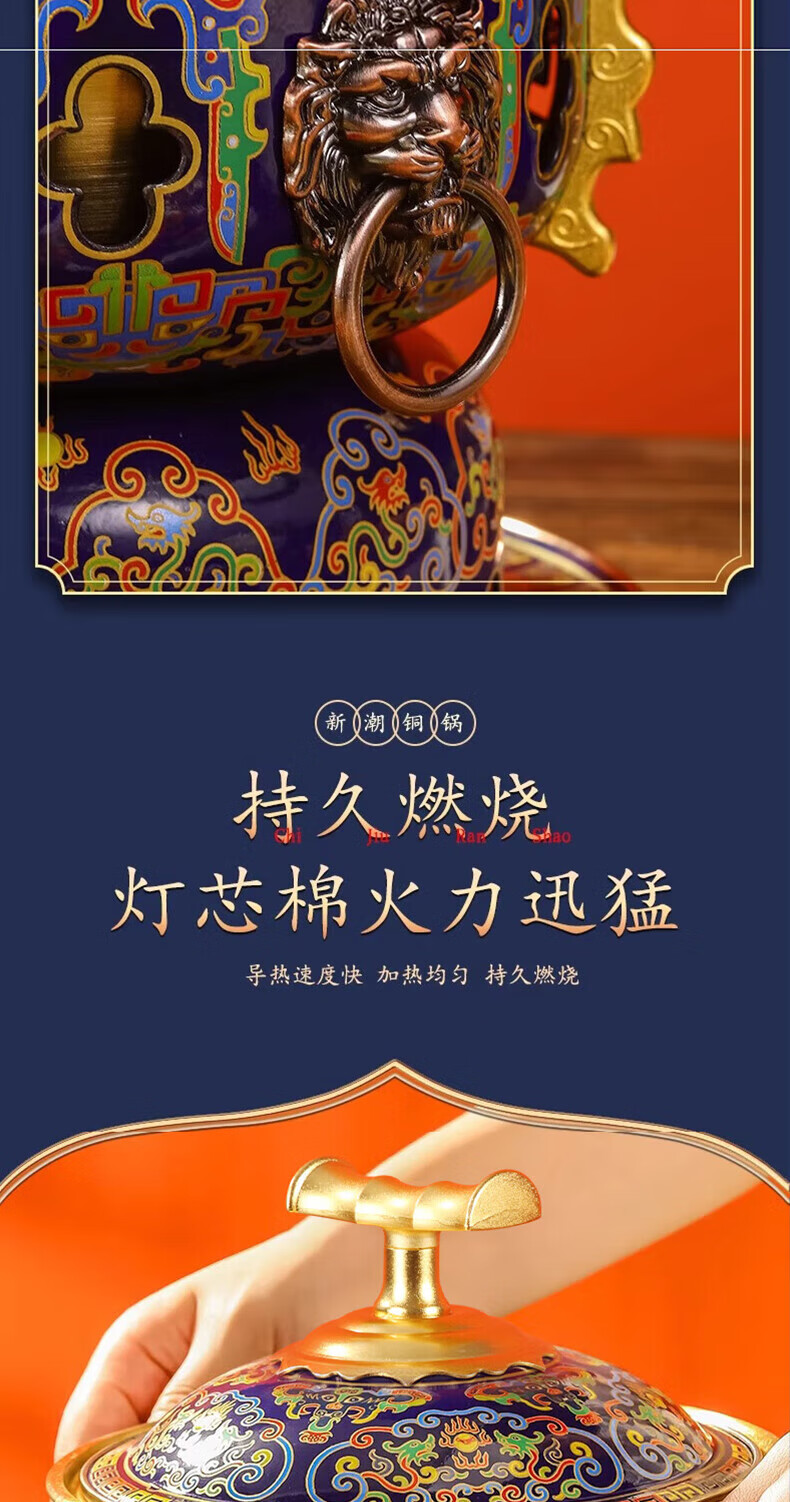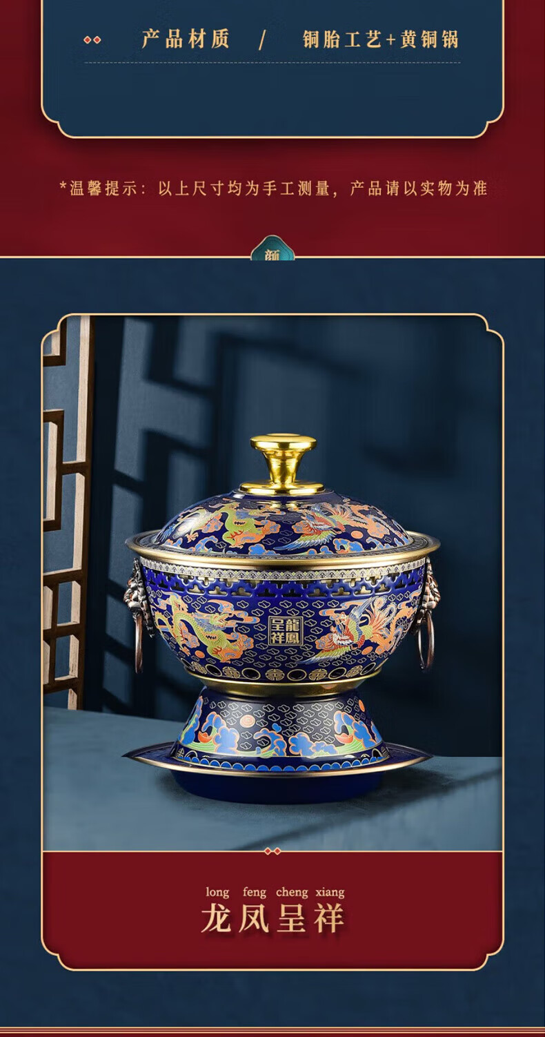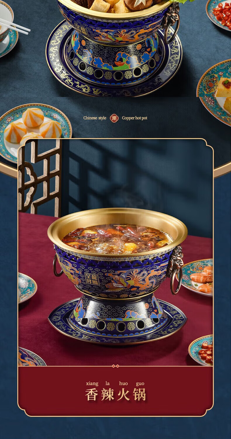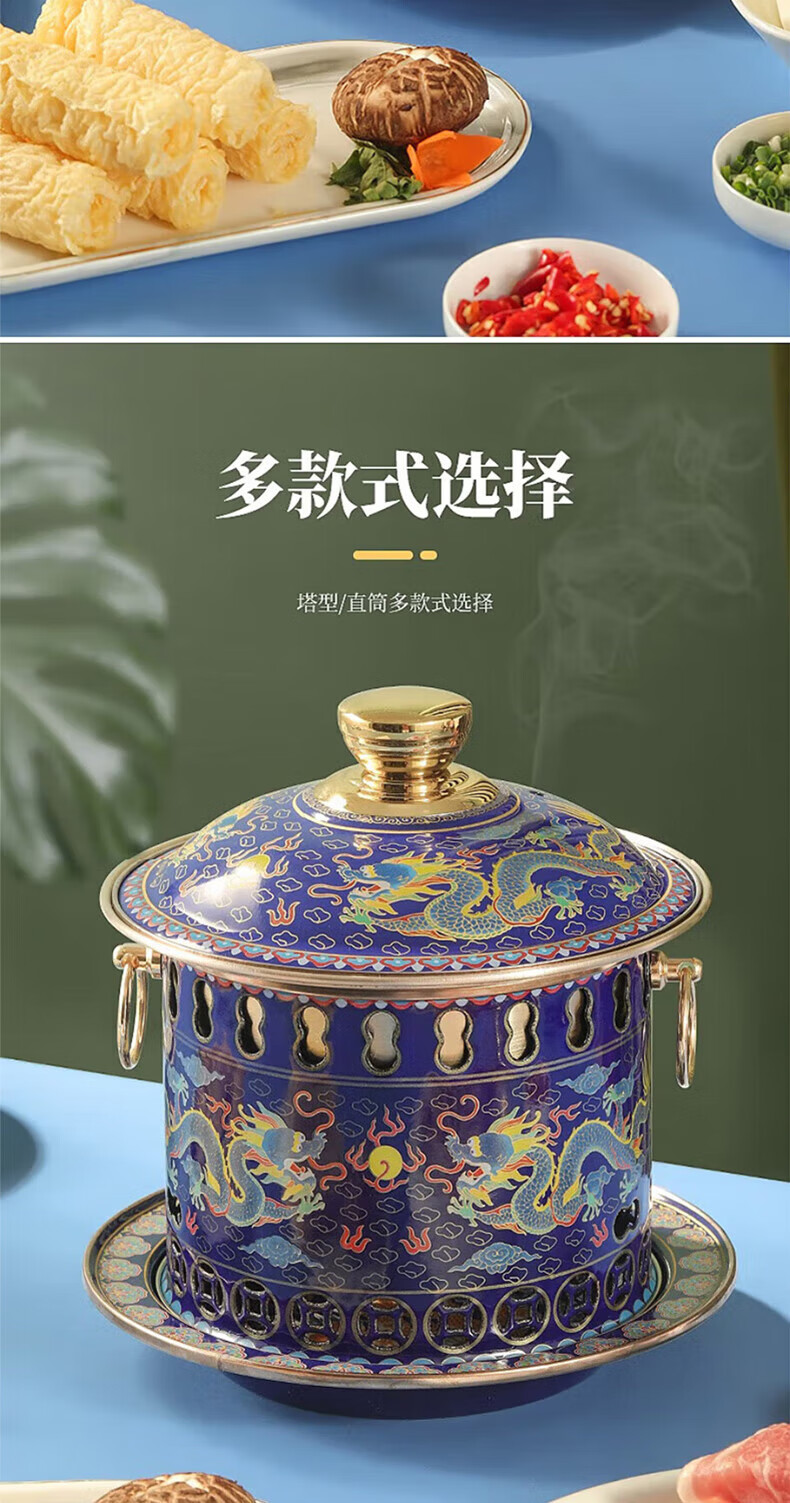 景泰蓝铜火锅酒精炉火锅专用锅铜锅单人火锅小火锅锅具一人一锅 大号塔型-龙凤款 24cm