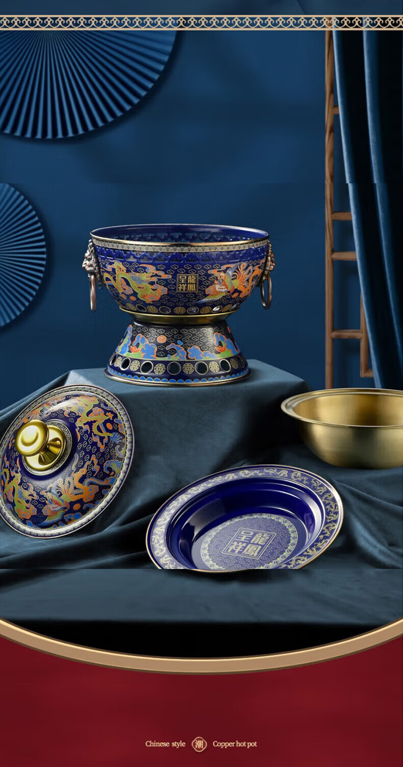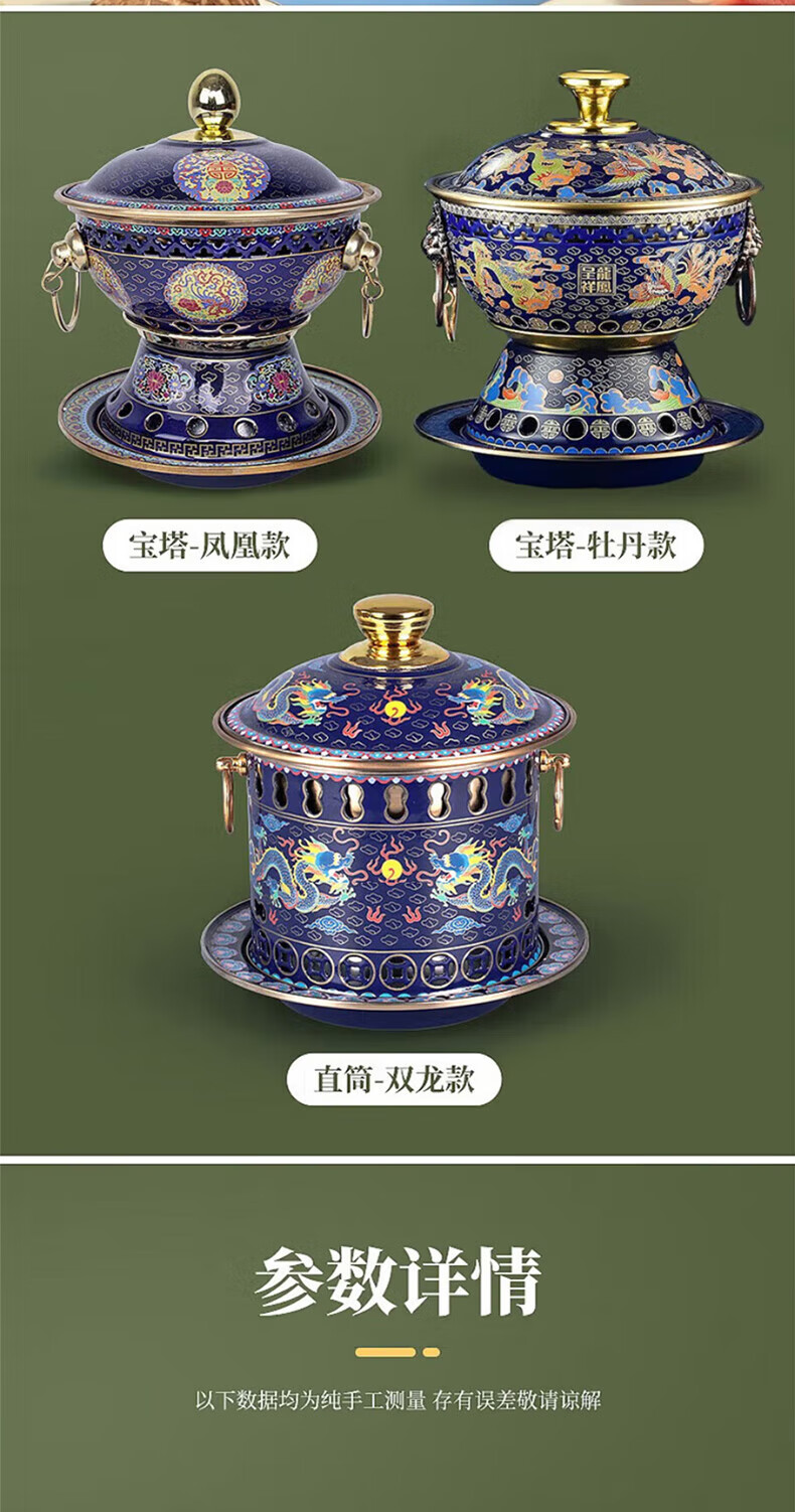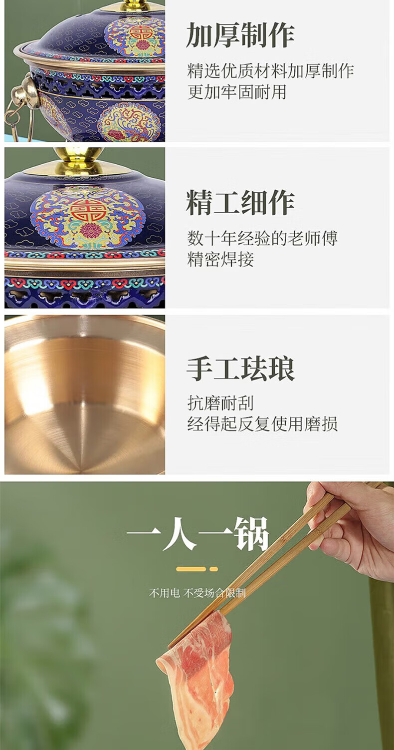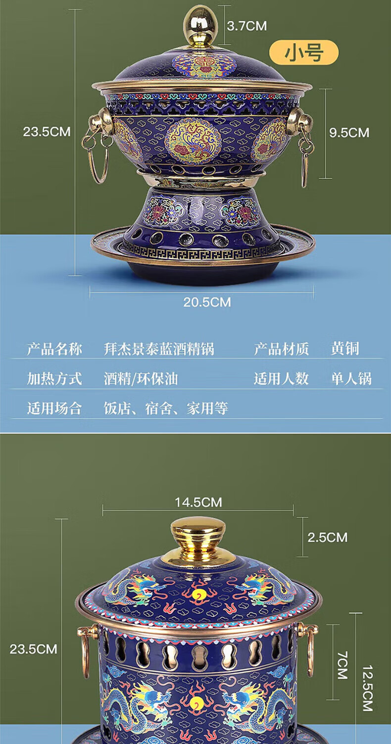 景泰蓝铜火锅酒精炉火锅专用锅铜锅单人火锅小火锅锅具一人一锅 大号塔型-龙凤款 24cm