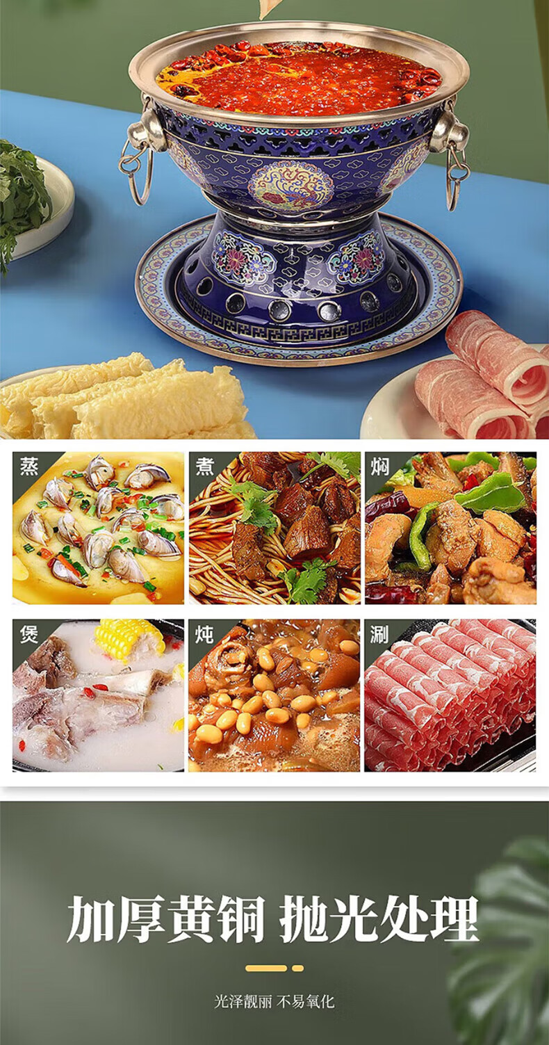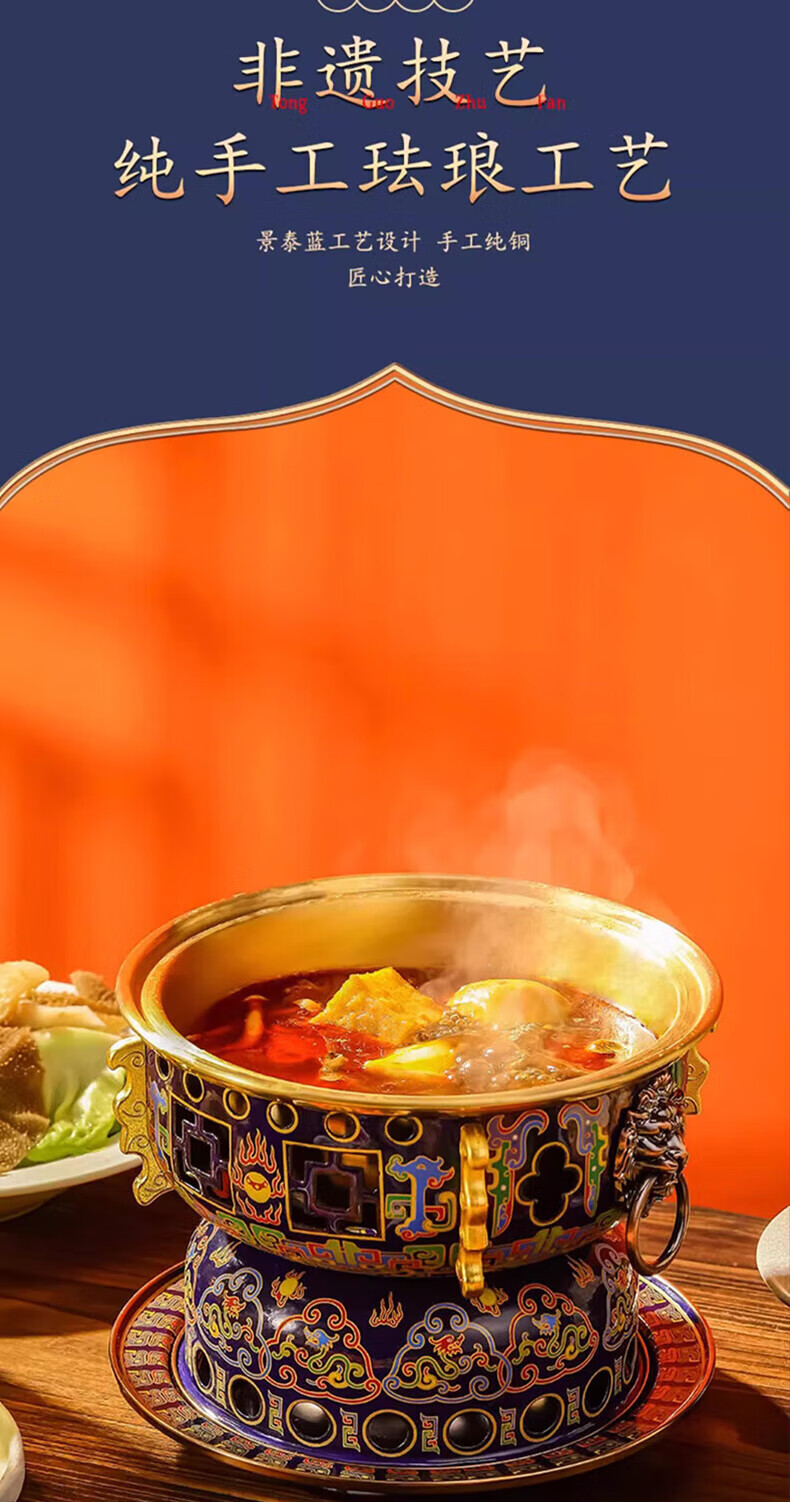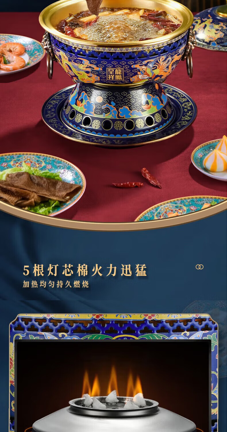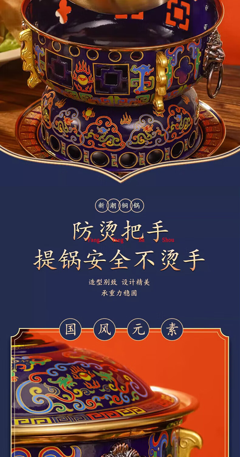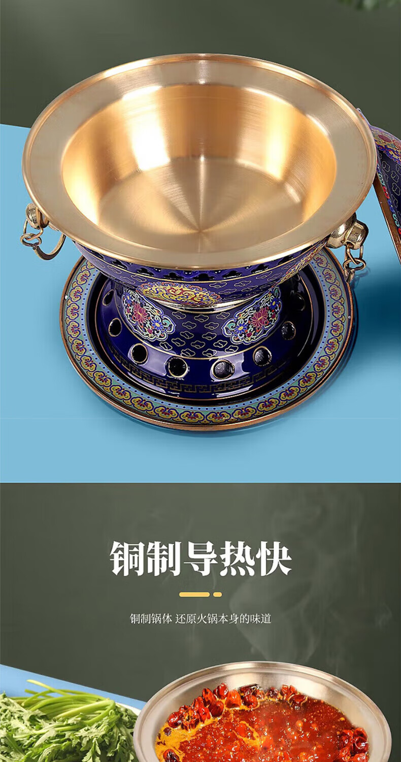 景泰蓝铜火锅酒精炉火锅专用锅铜锅单人火锅小火锅锅具一人一锅 大号塔型-龙凤款 24cm